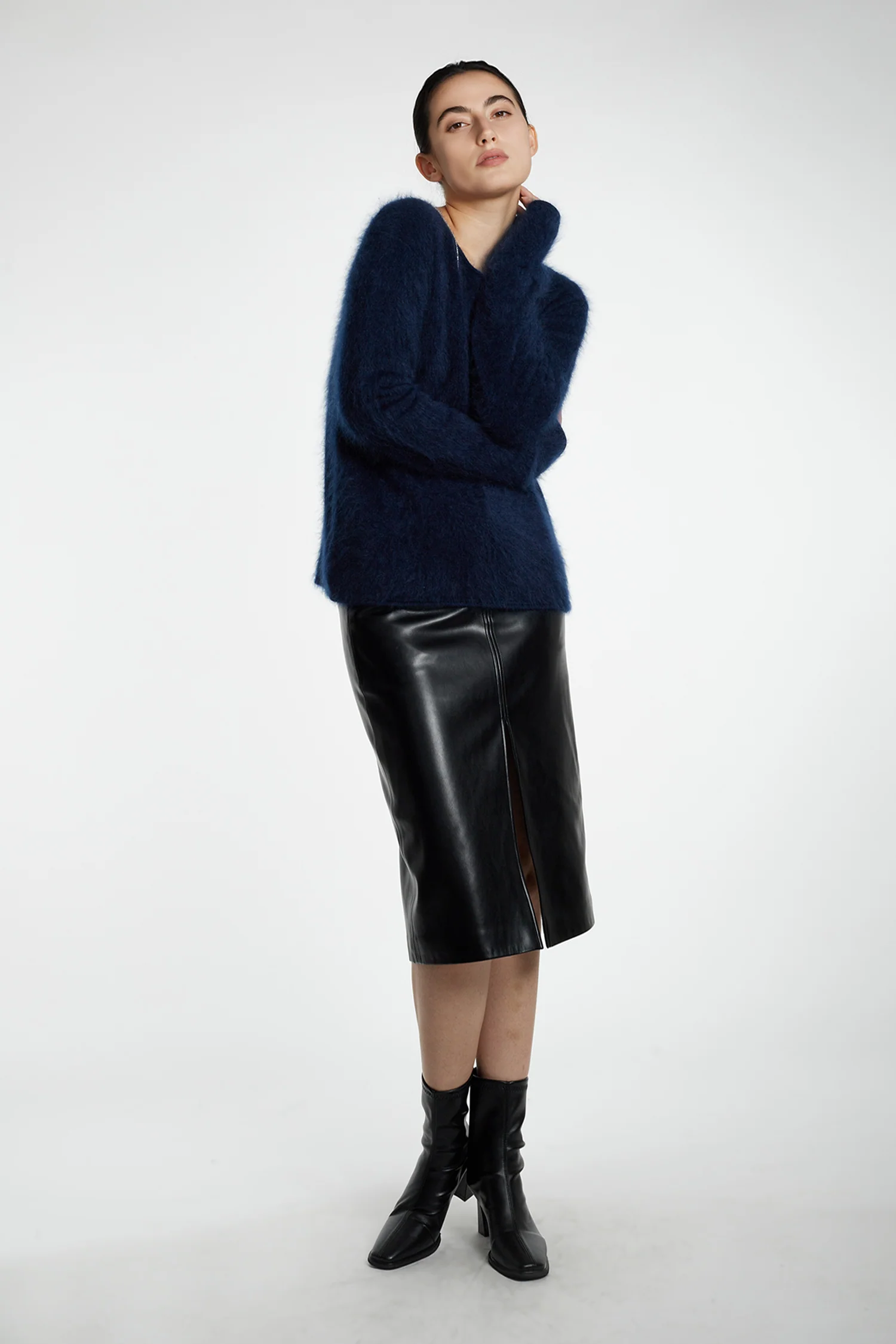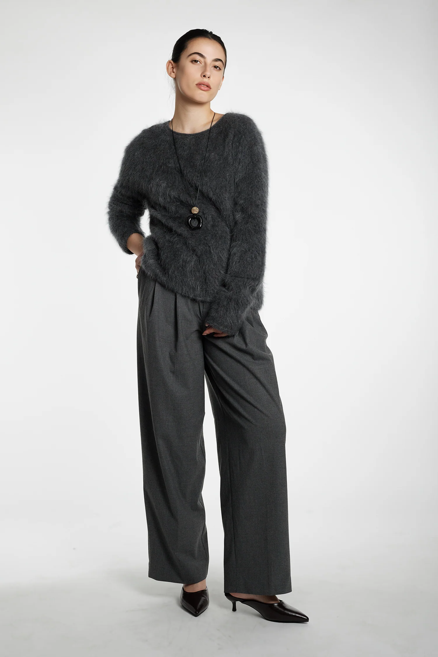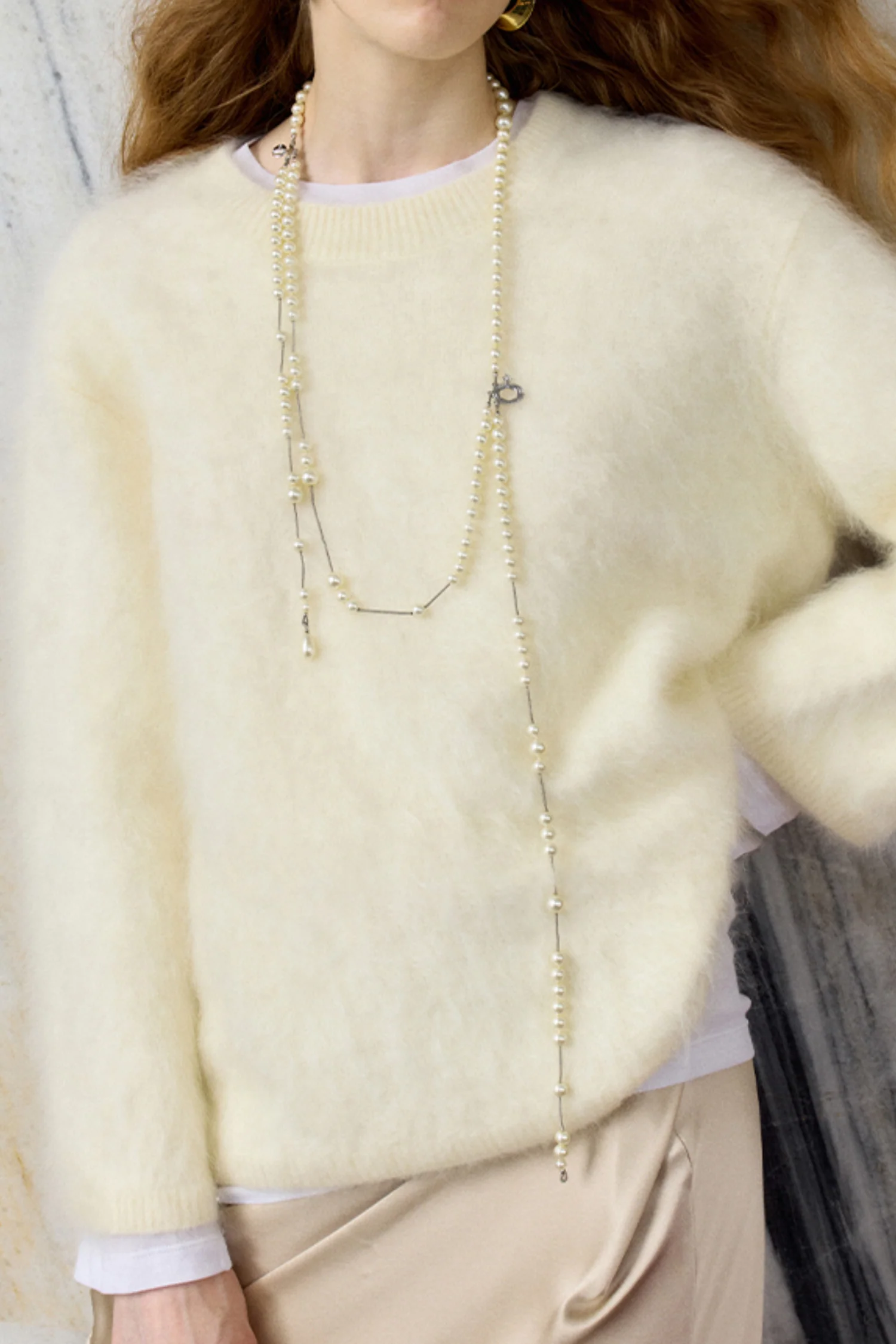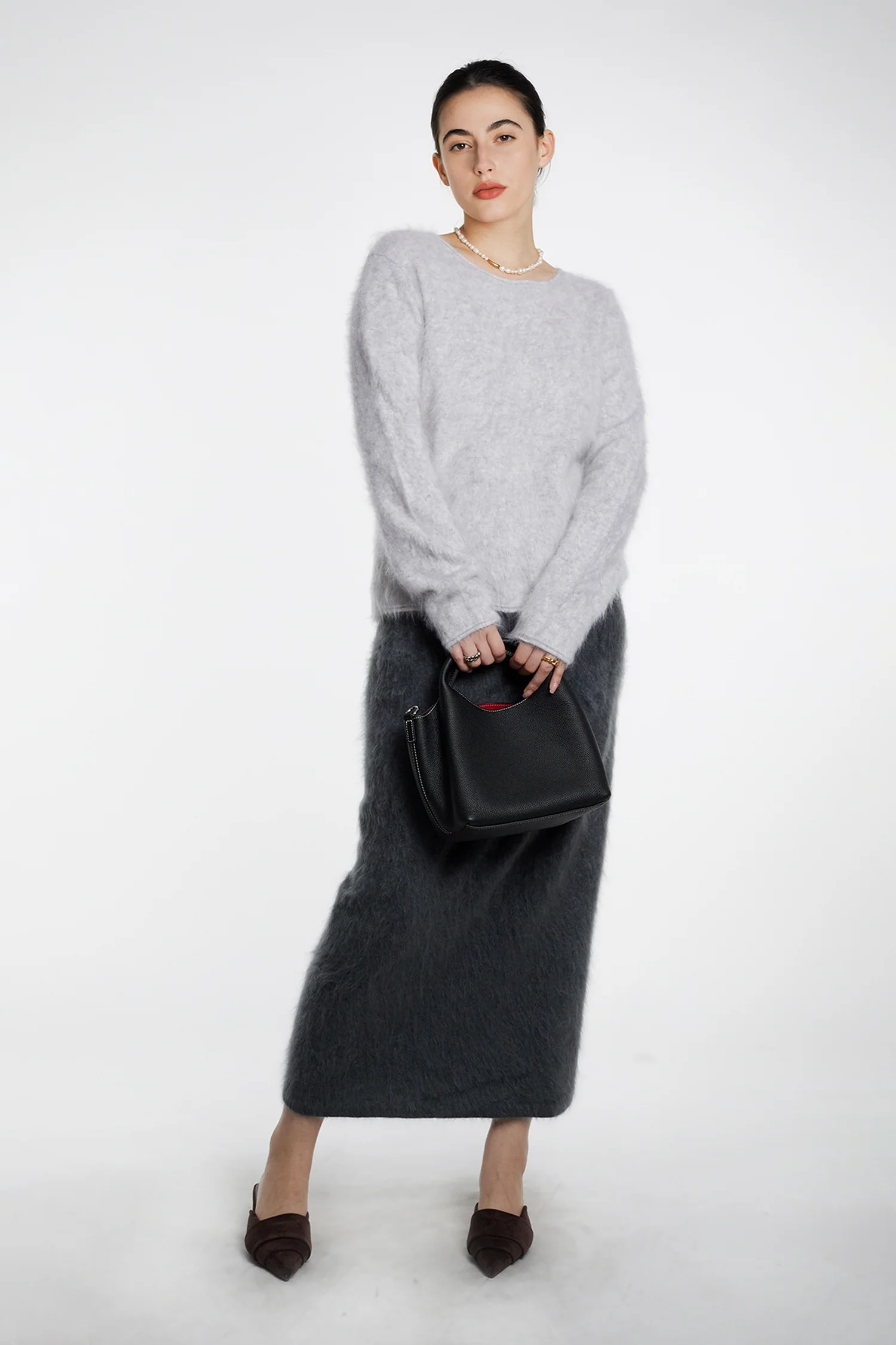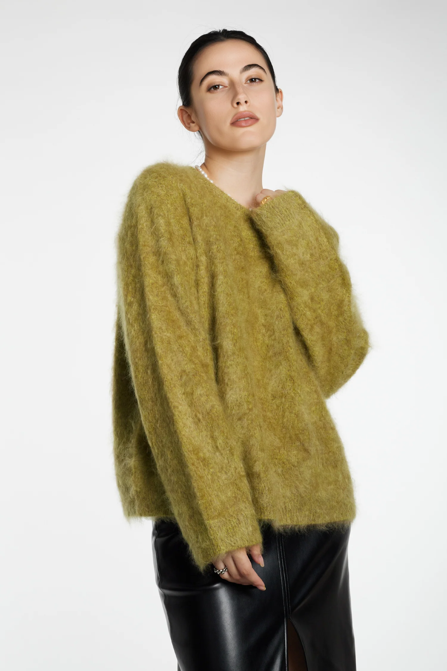 Fuzzy Oversized Brushed Cashmere Crewneck Sweater