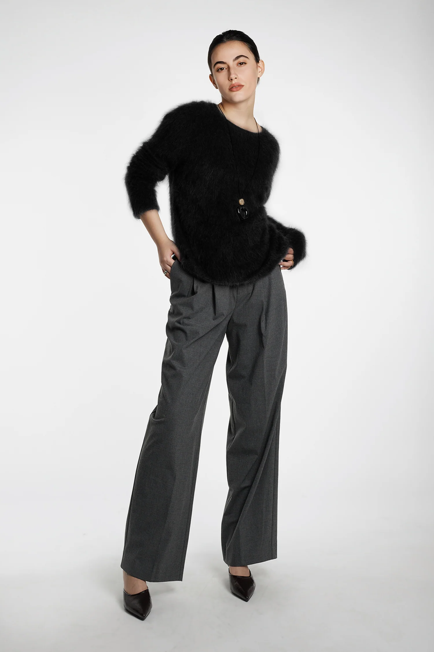 Fuzzy Brushed Cashmere Marled Crewneck Sweater