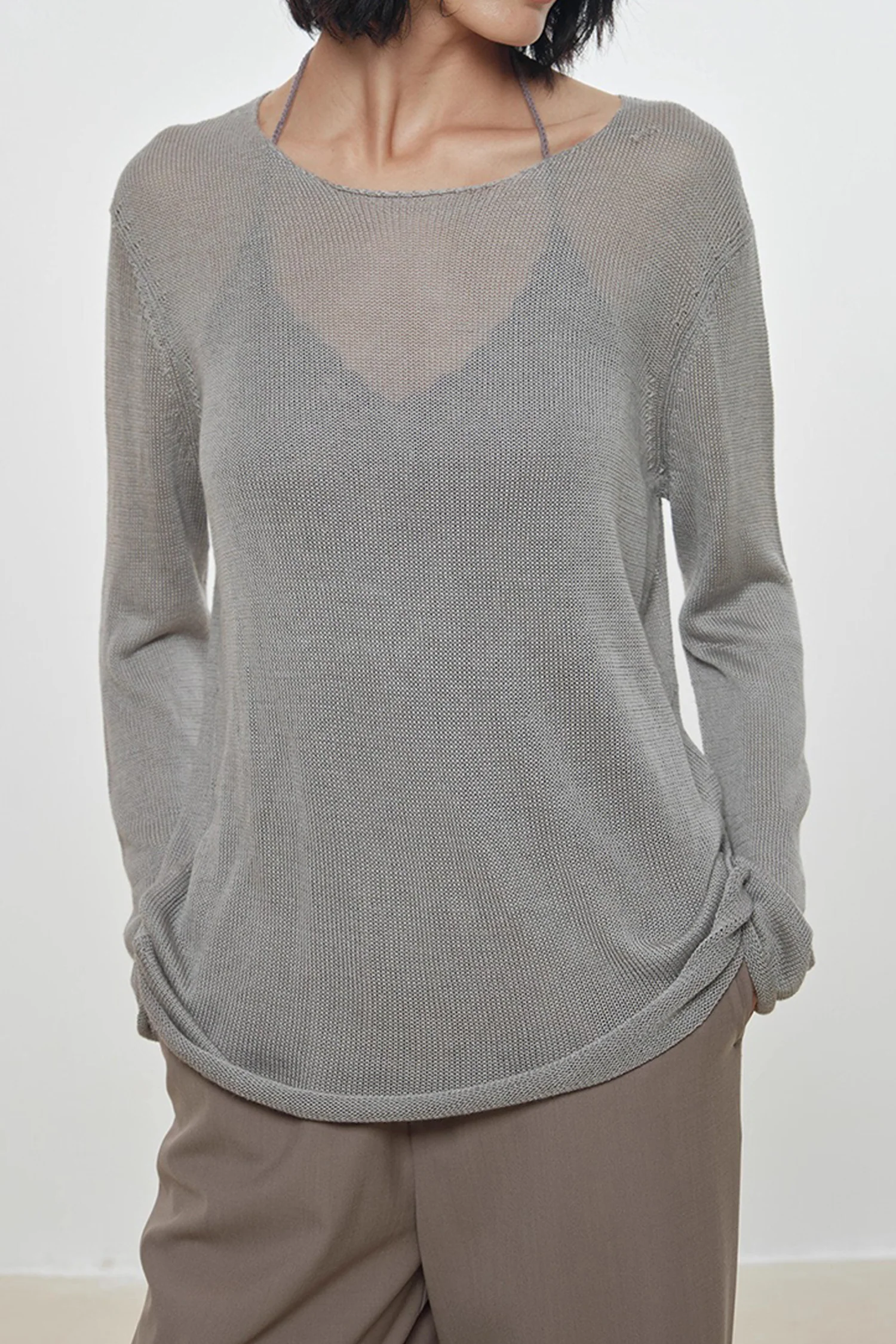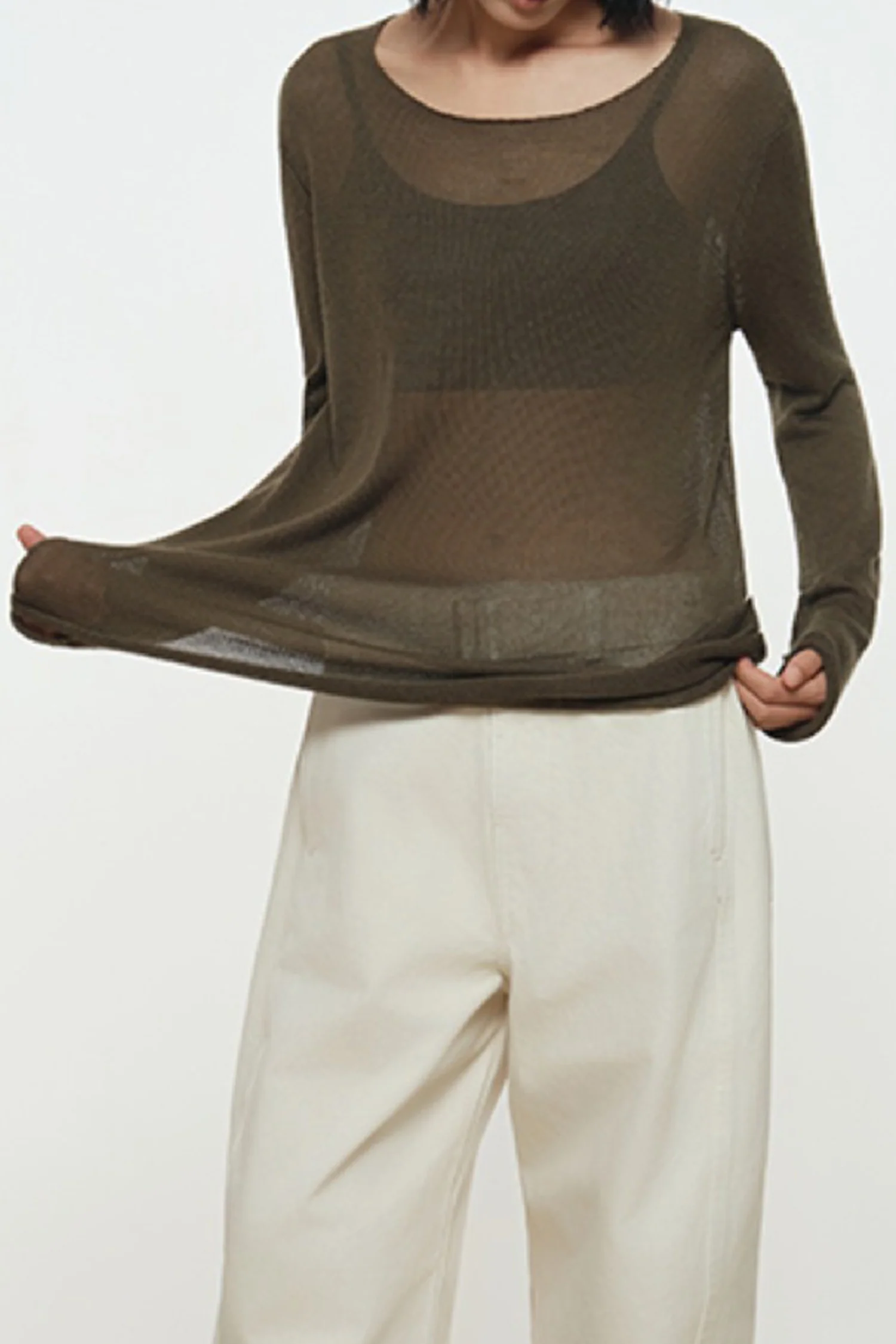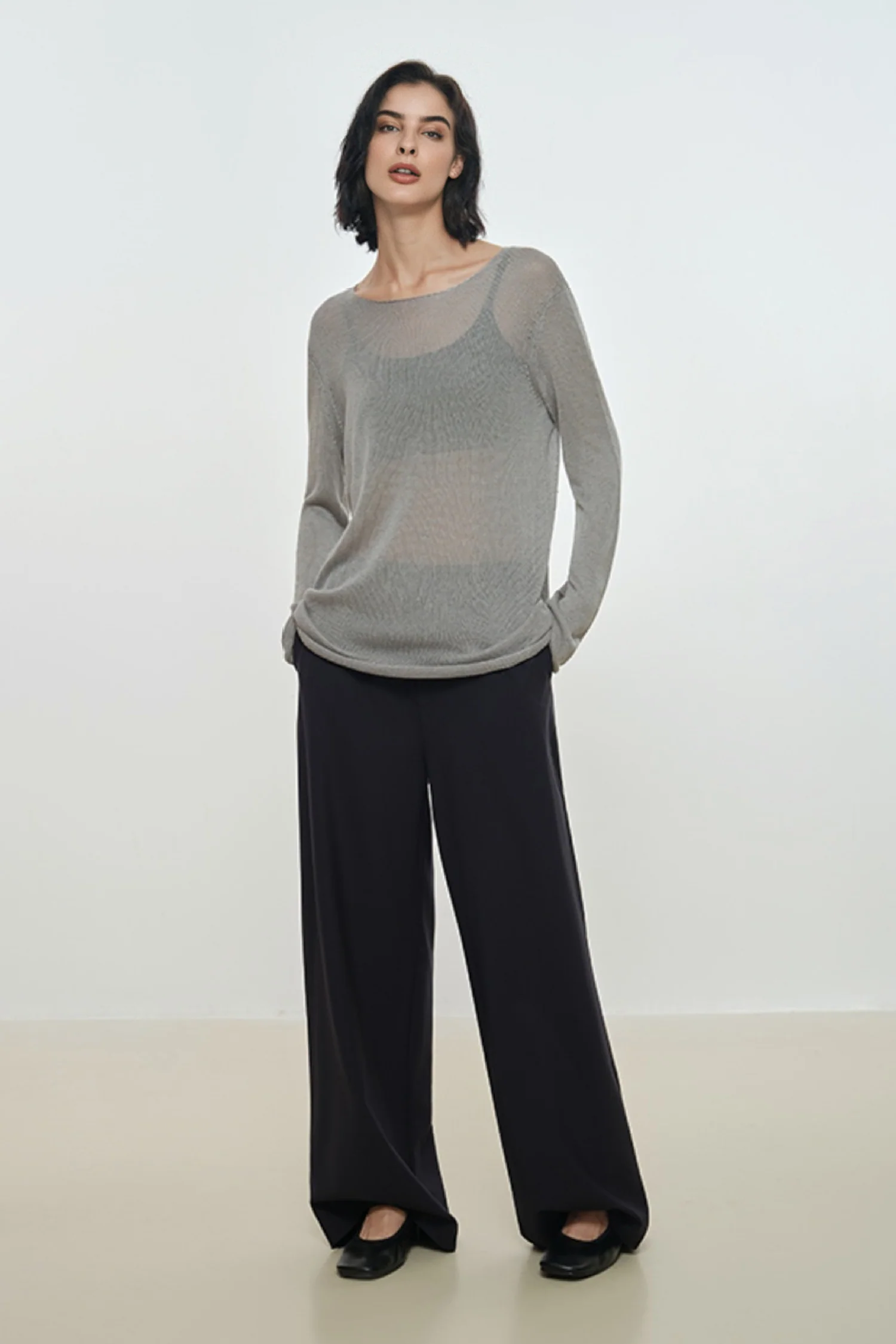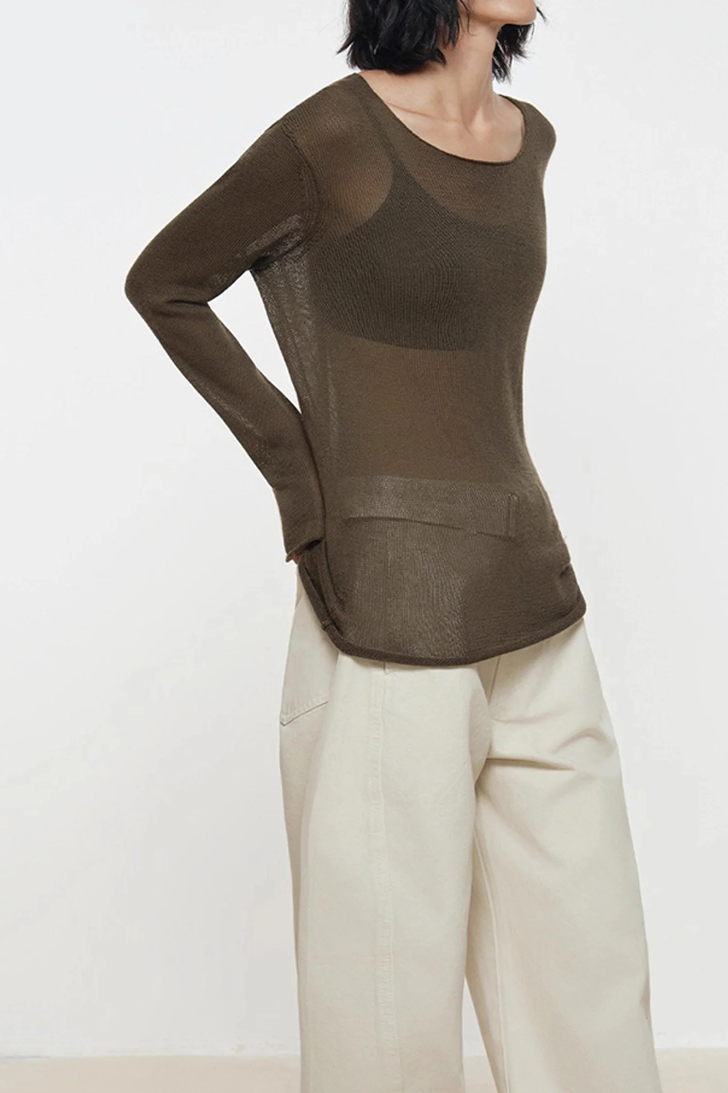 Ultralight Sheer Silk-Cashmere Long Sleeve Top