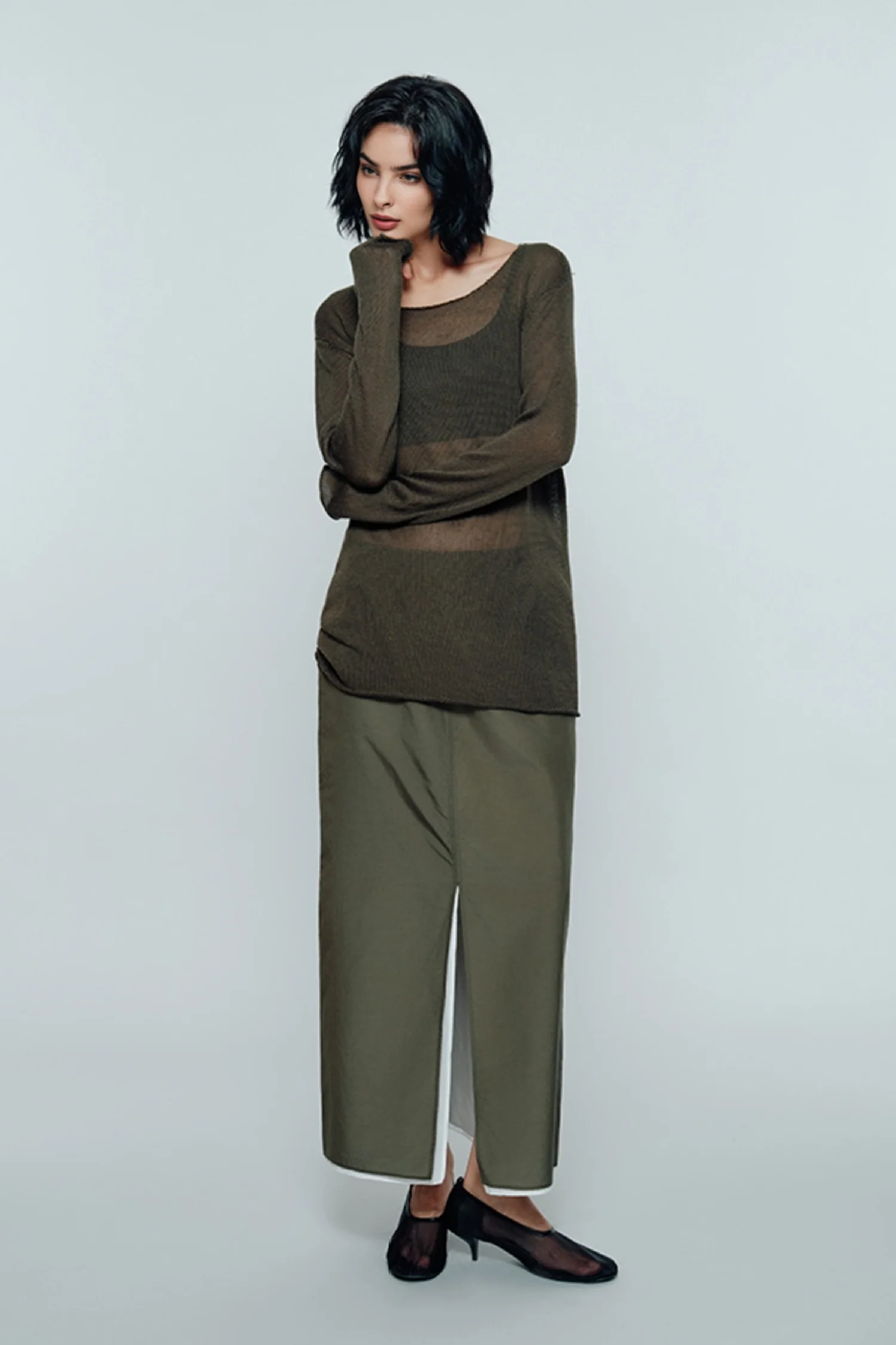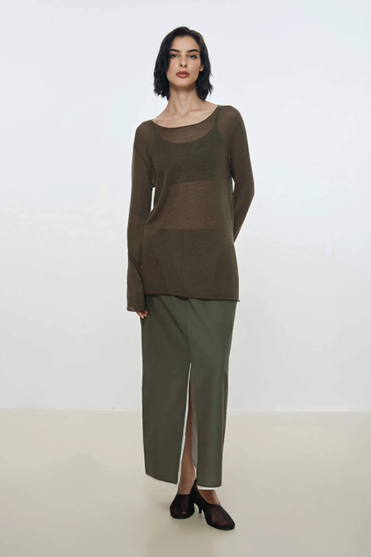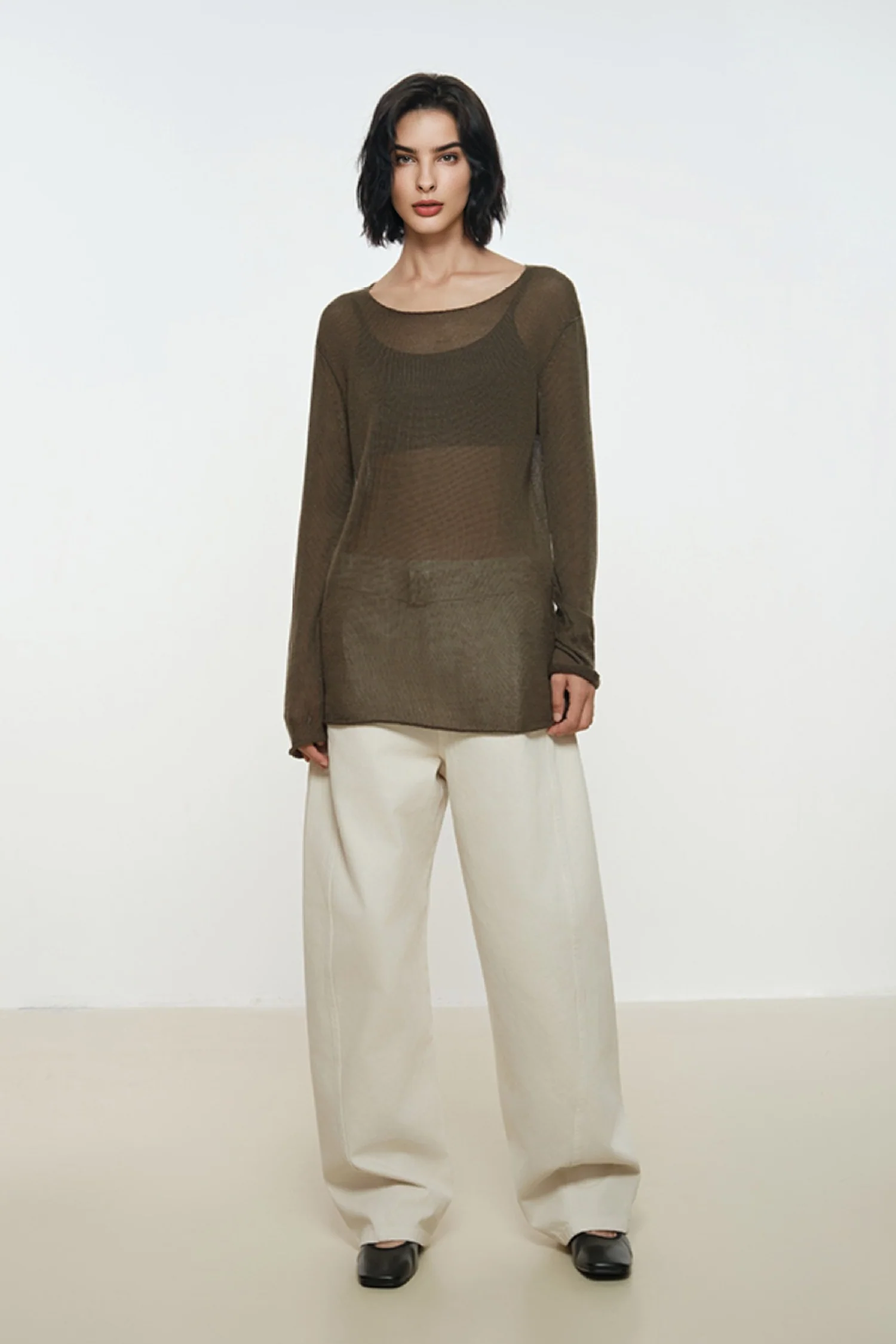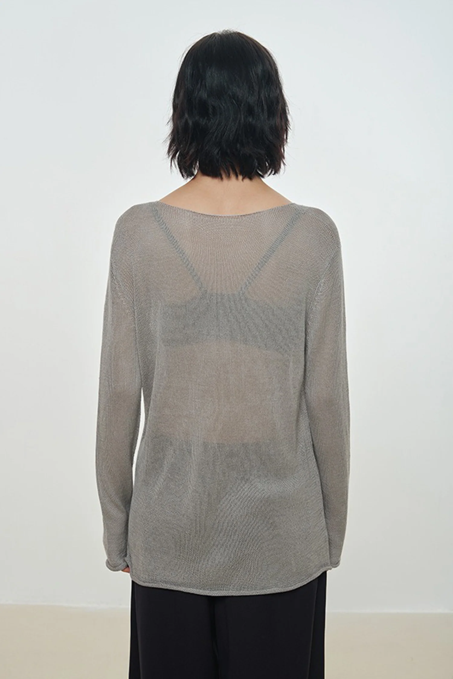 Ultralight Sheer Silk-Cashmere Long Sleeve Top