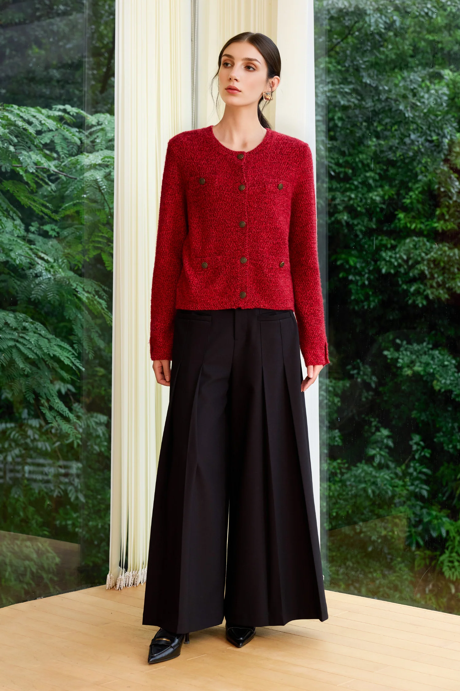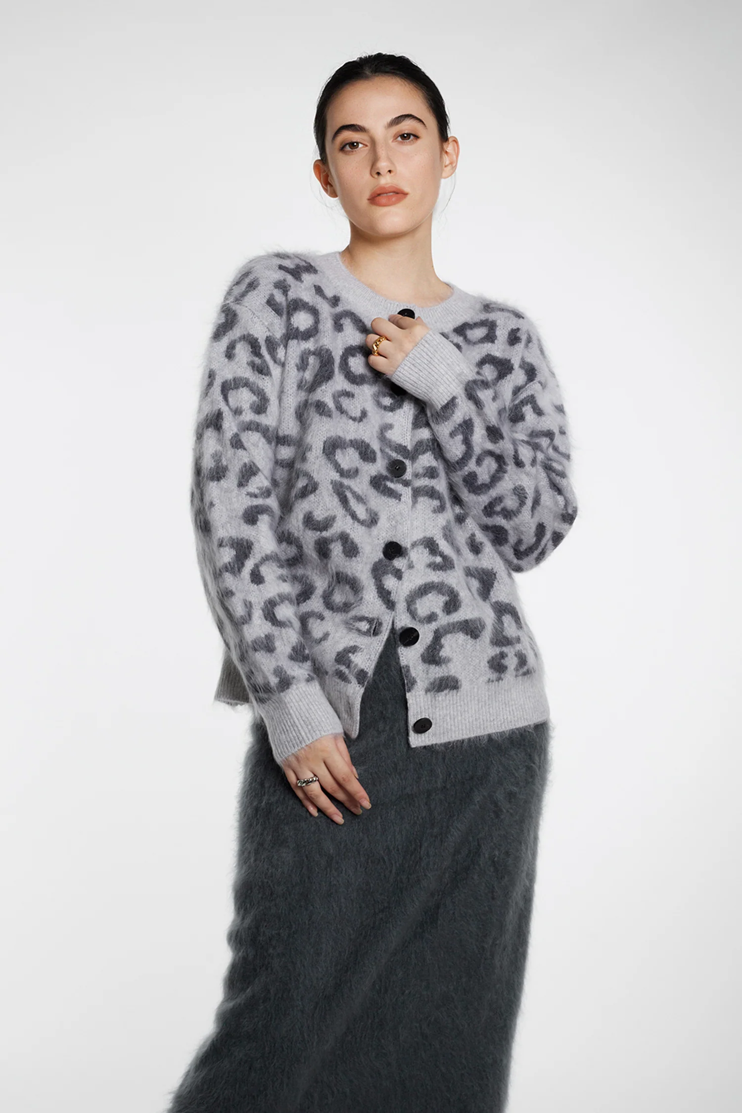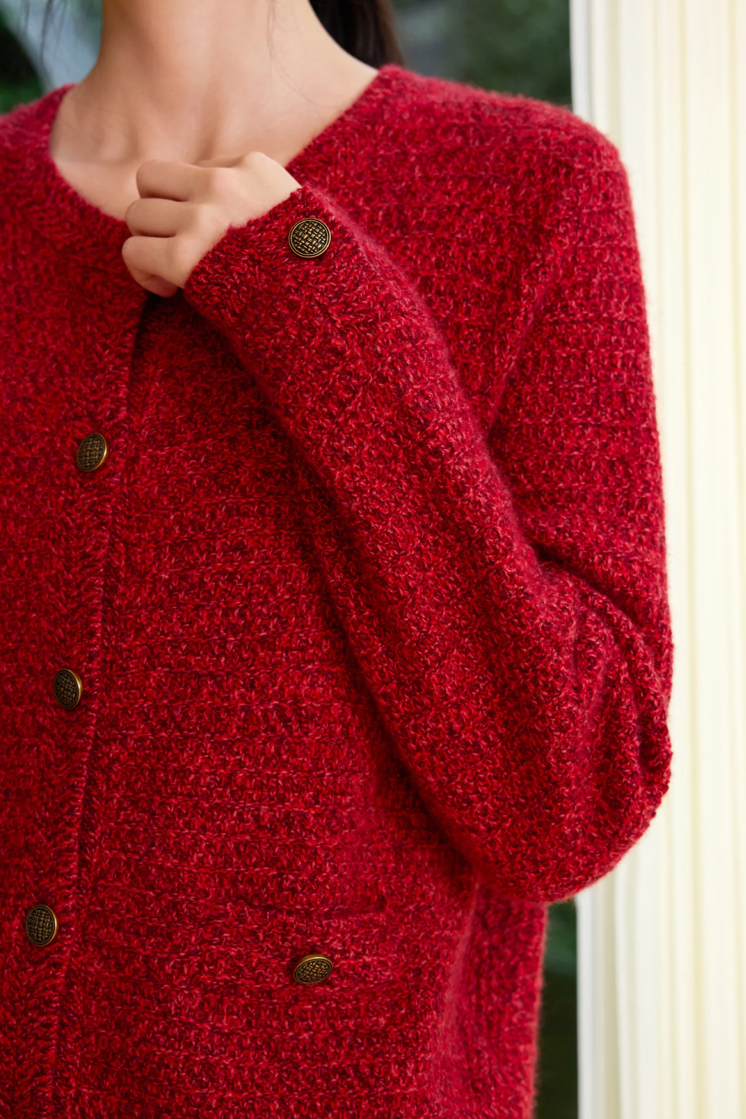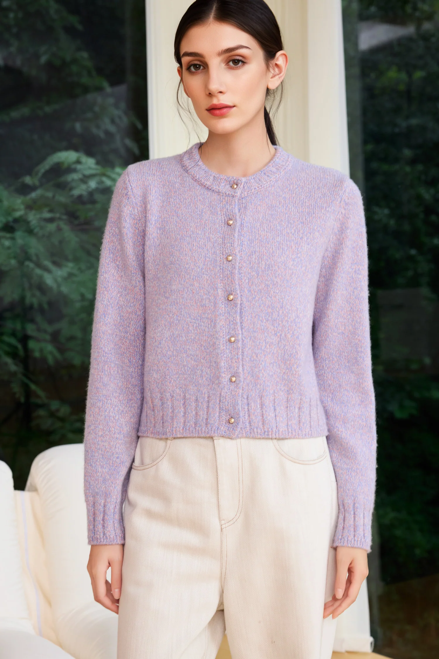 100% Cashmere Marled Button-Up Crewneck Cardigan