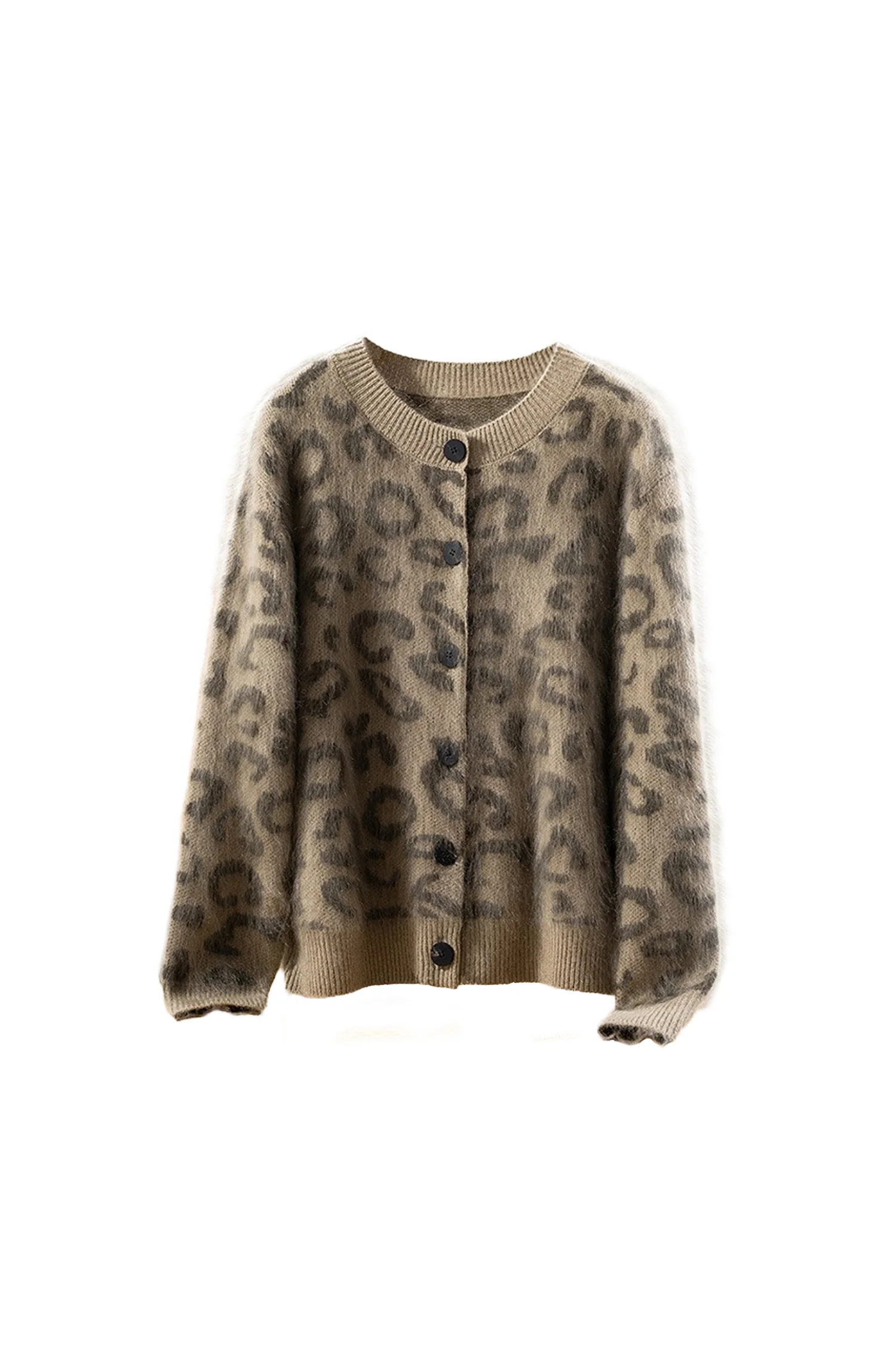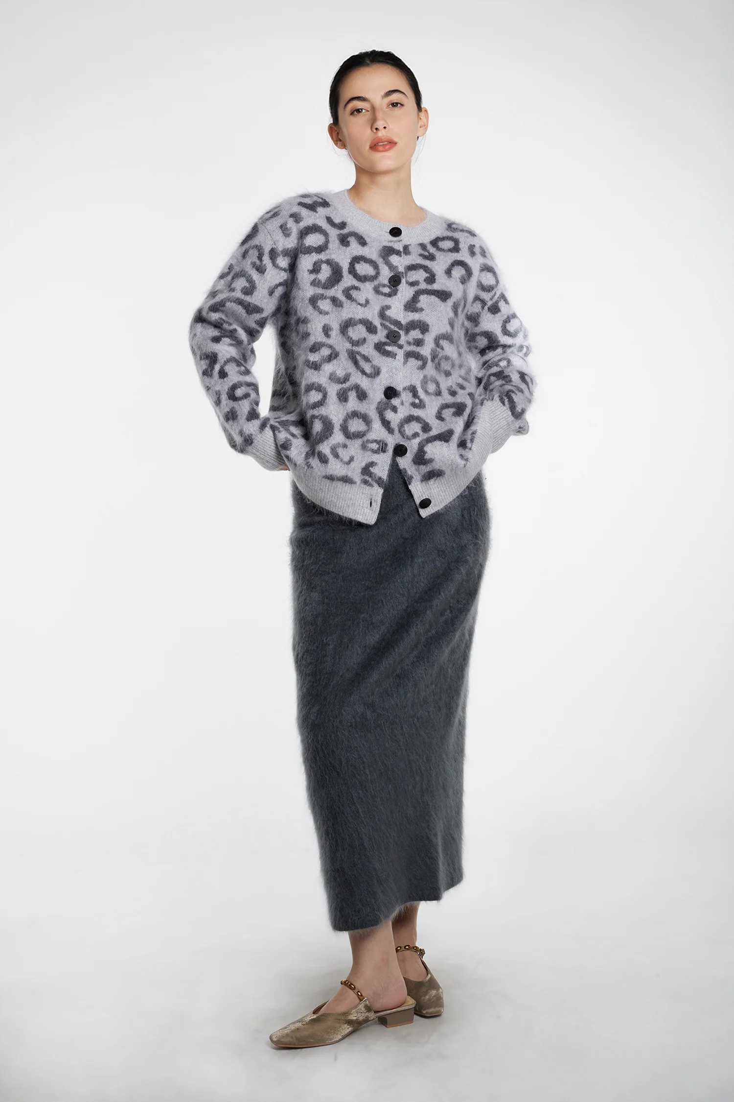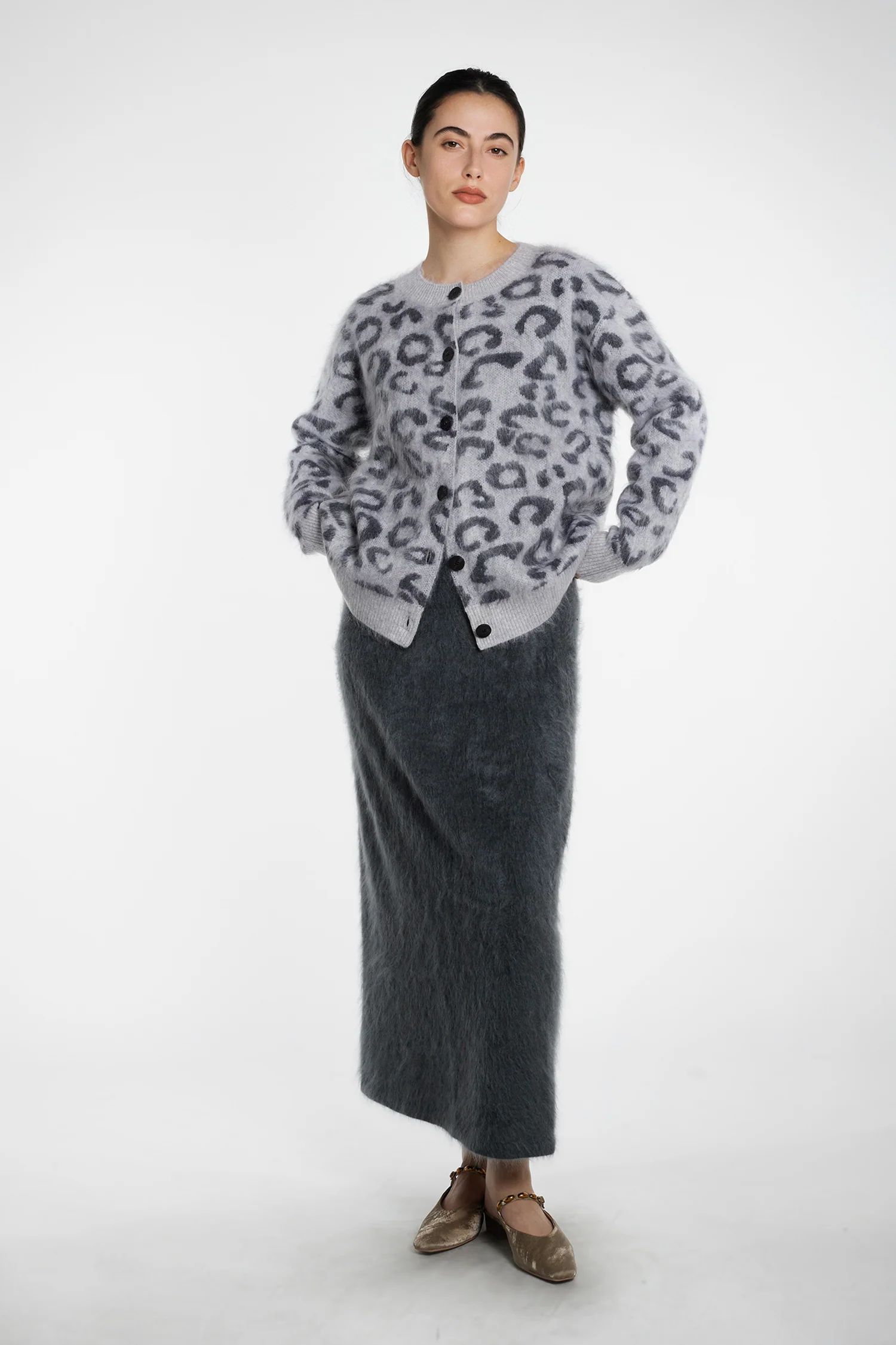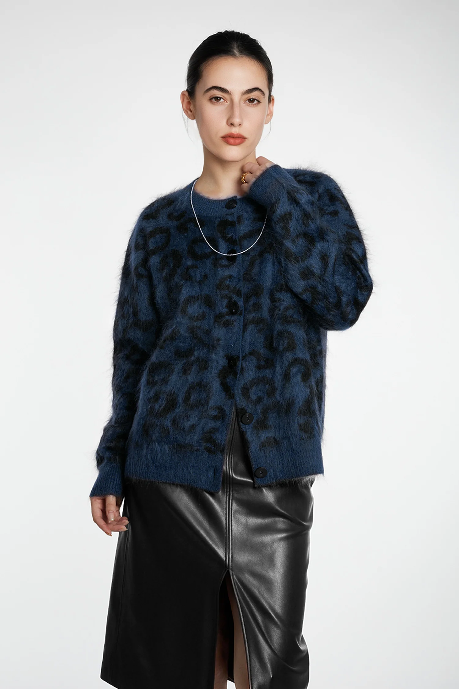 100% Cashmere Marled Button-Up Crewneck Cardigan