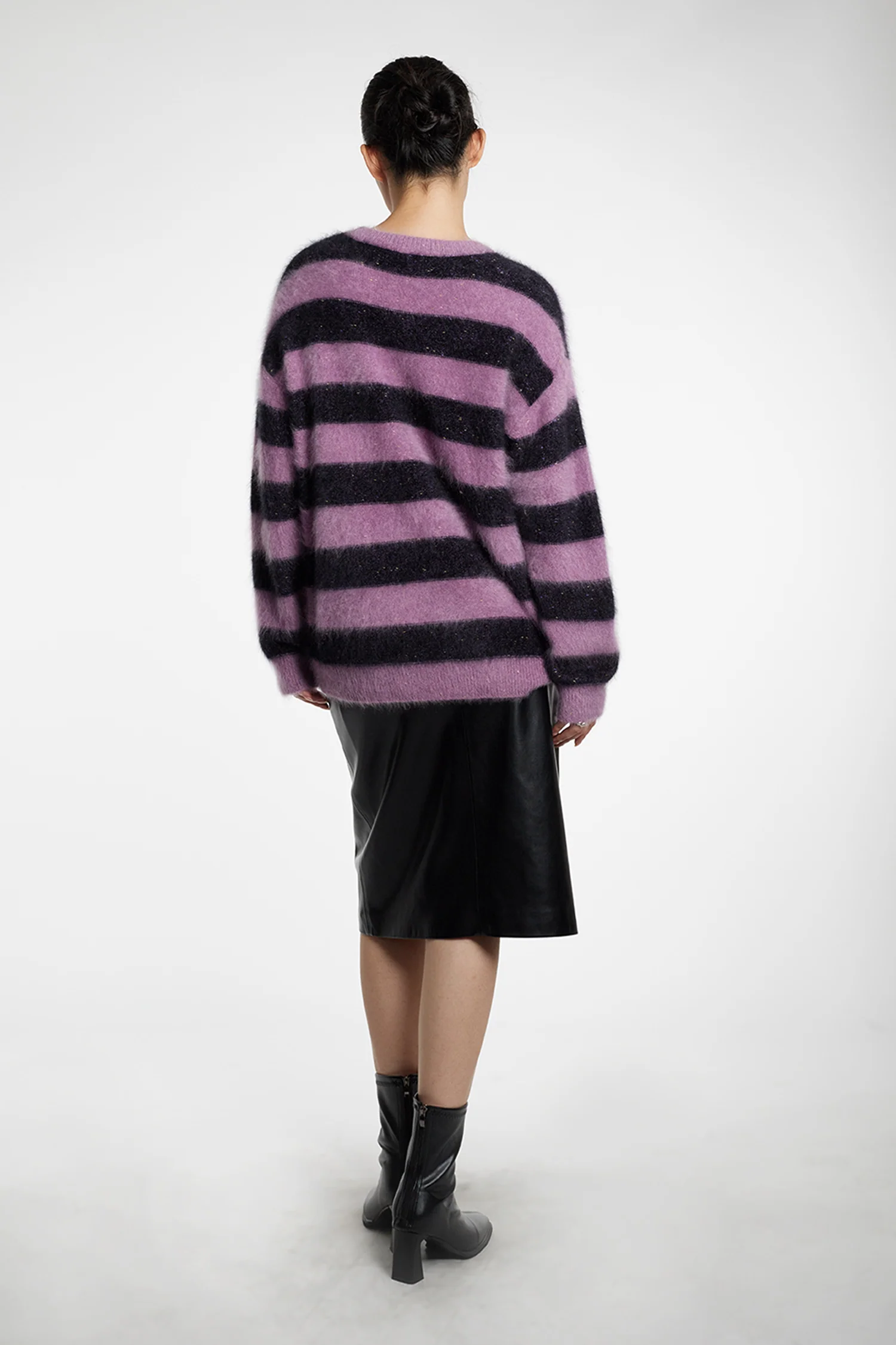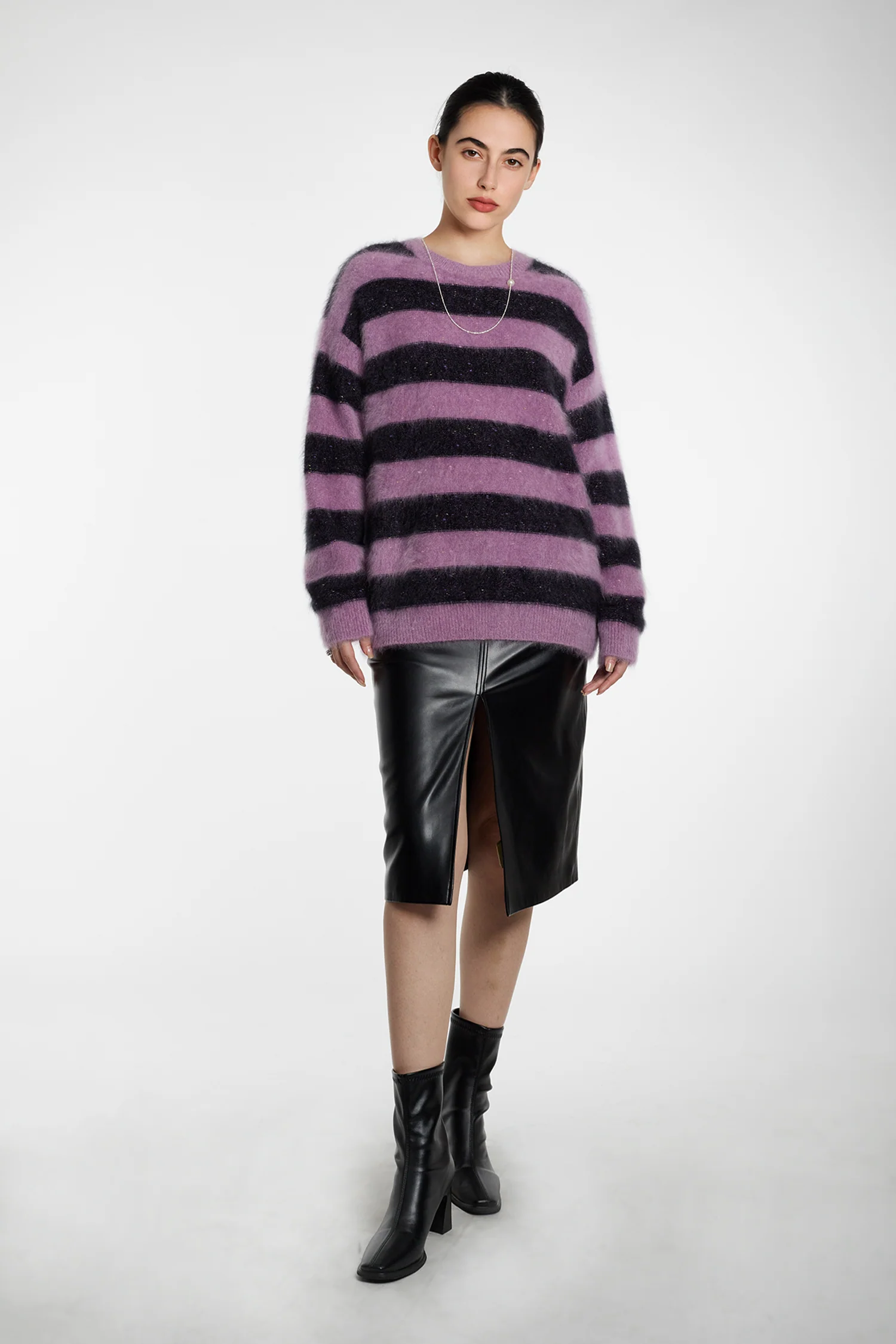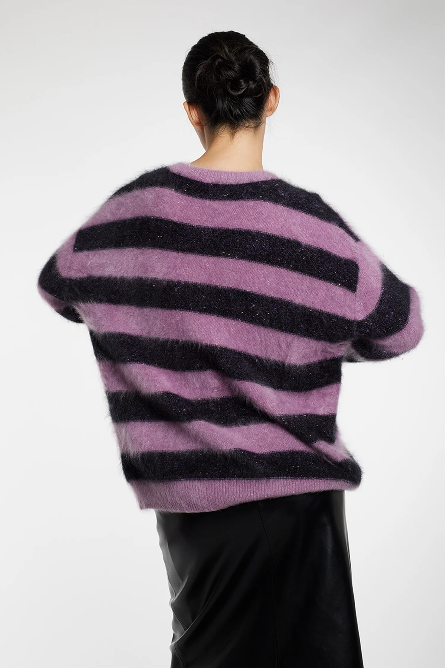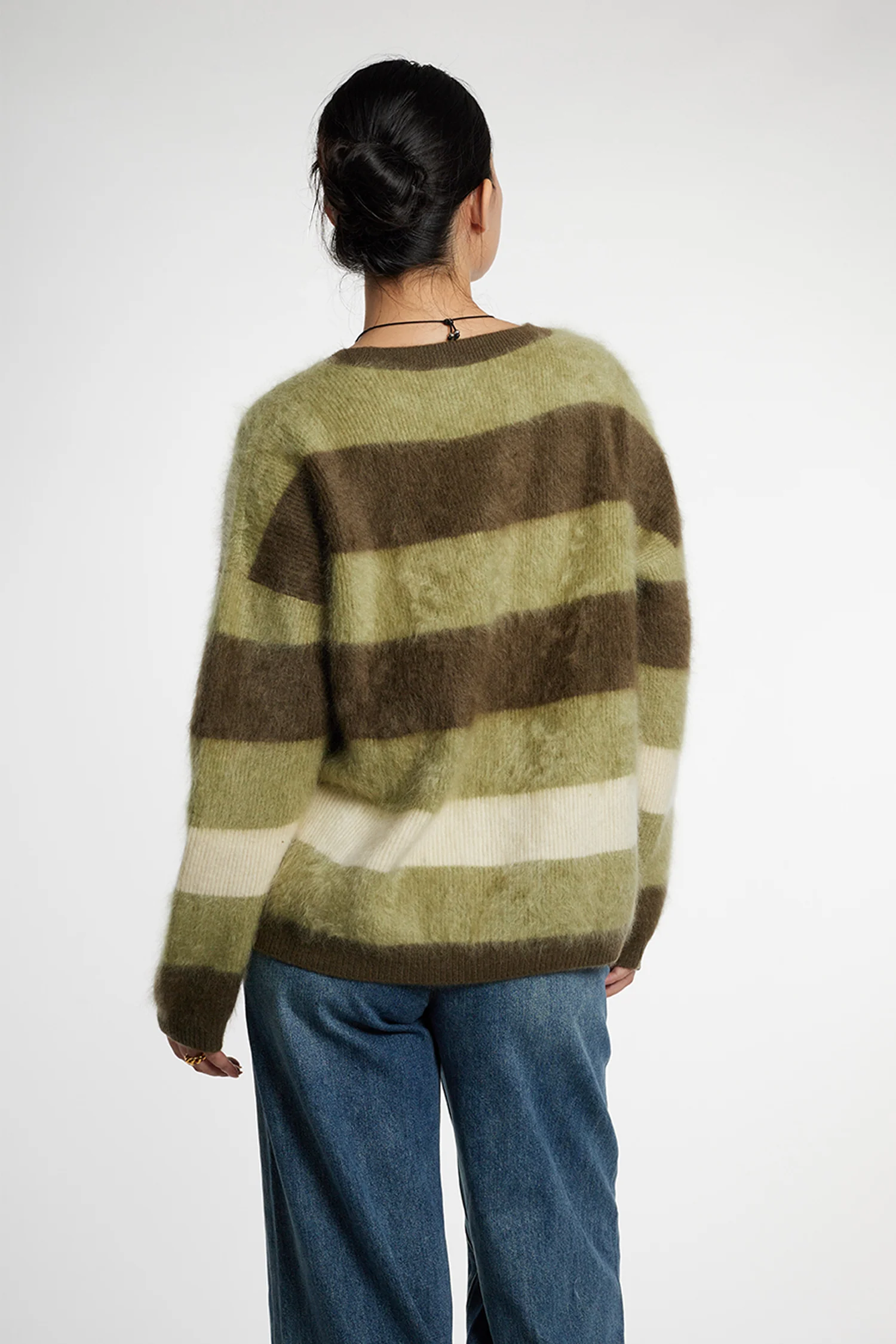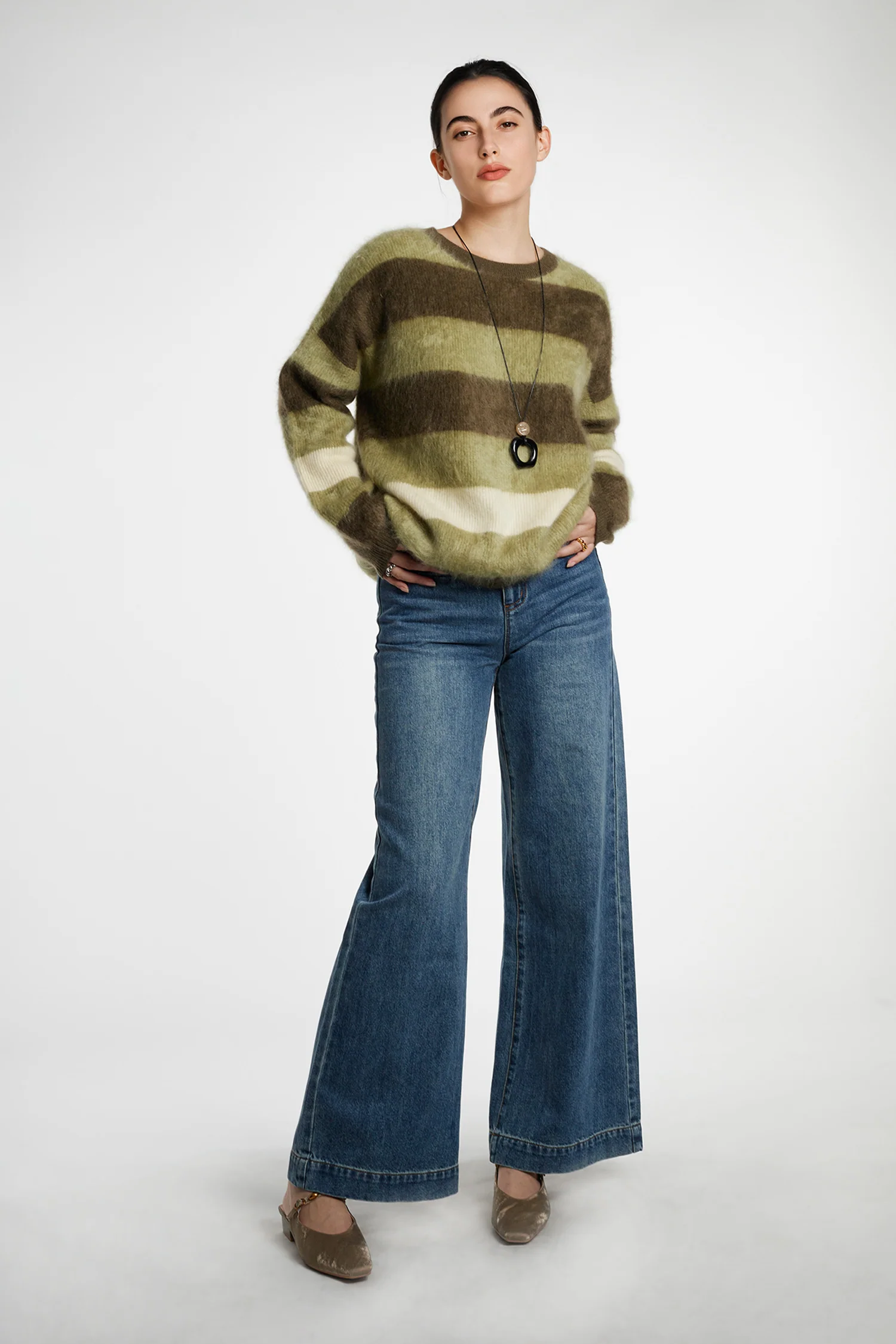 Fuzzy Brushed Cashmere Striped Pullover Sweater