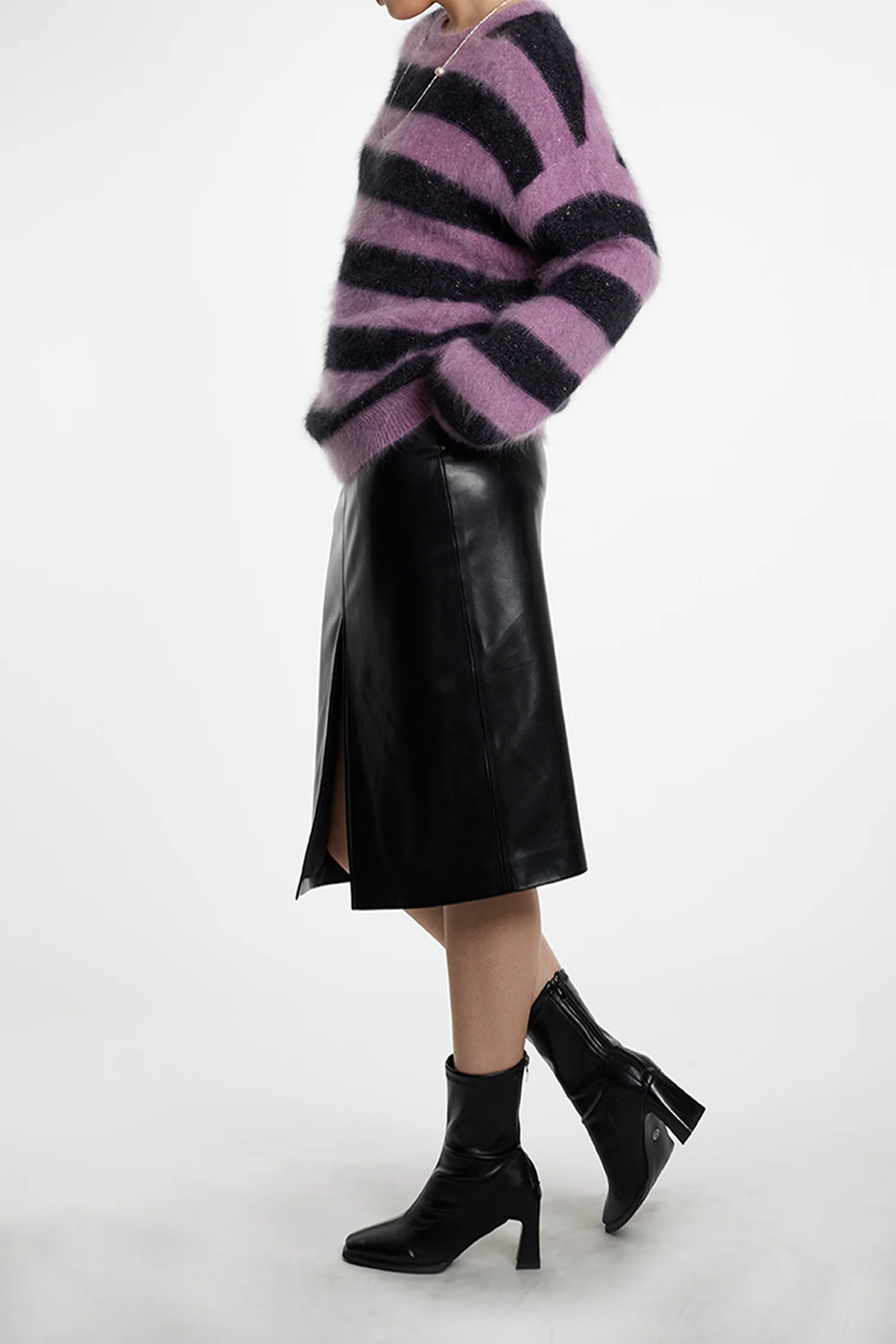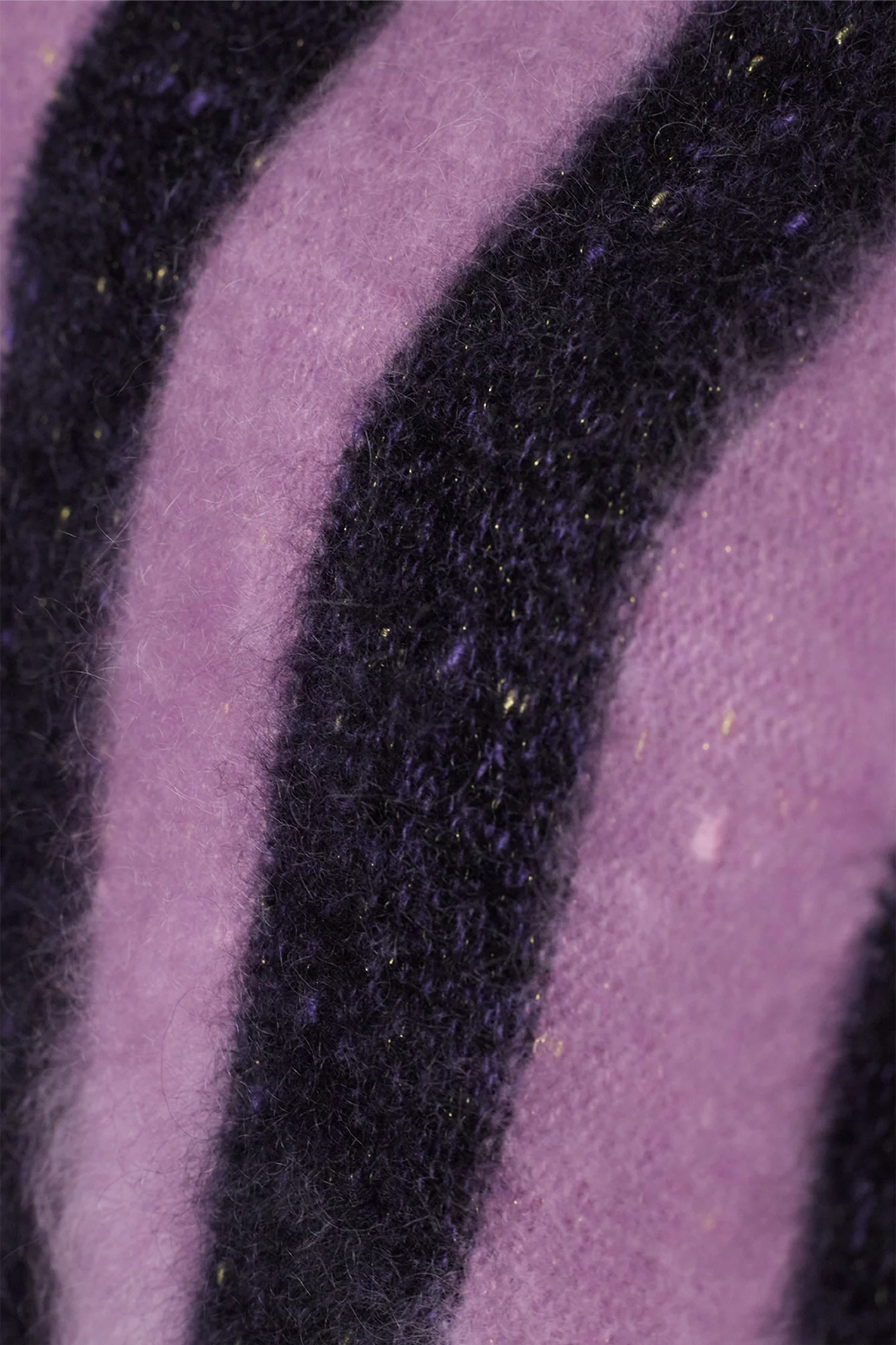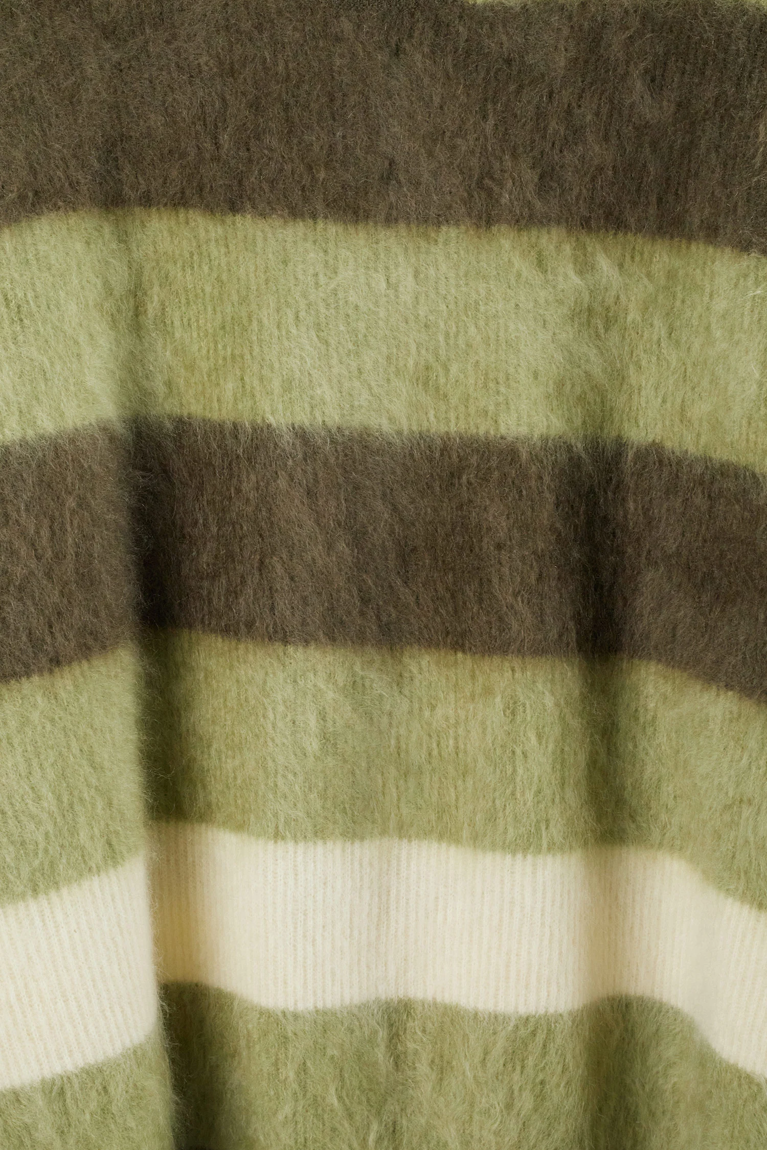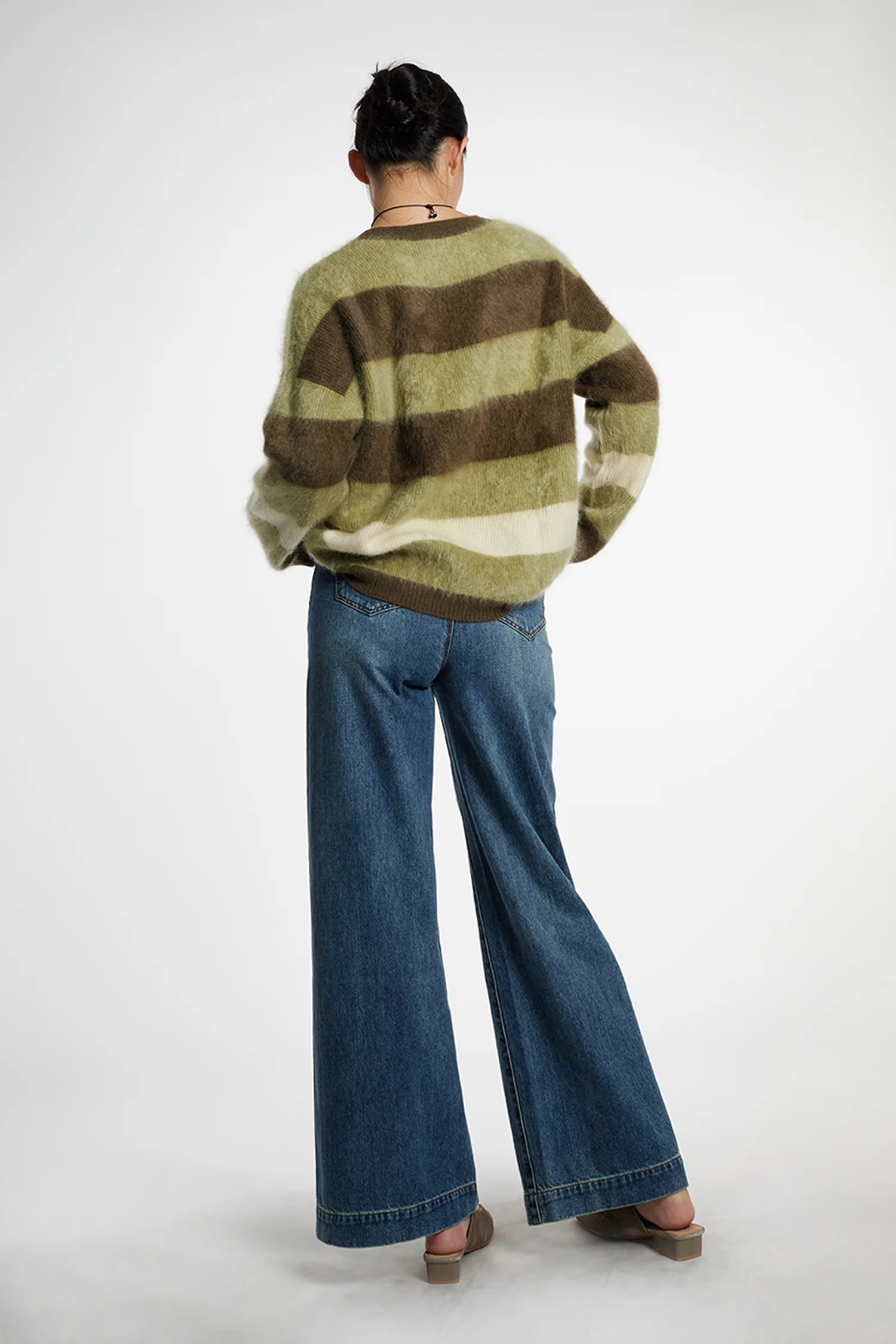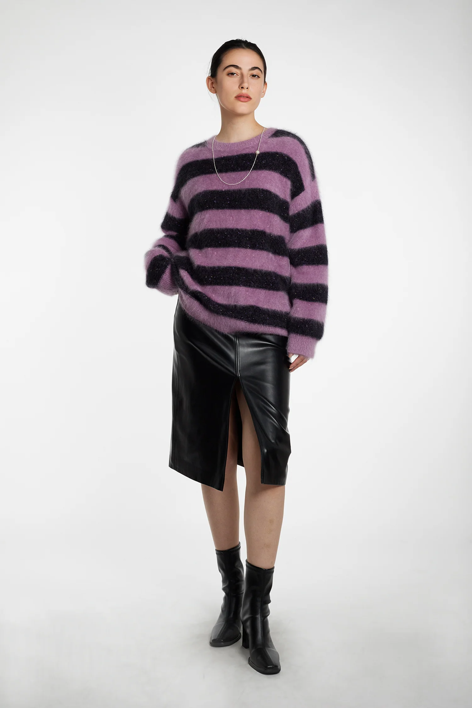 Fuzzy Brushed Cashmere Striped Pullover Sweater