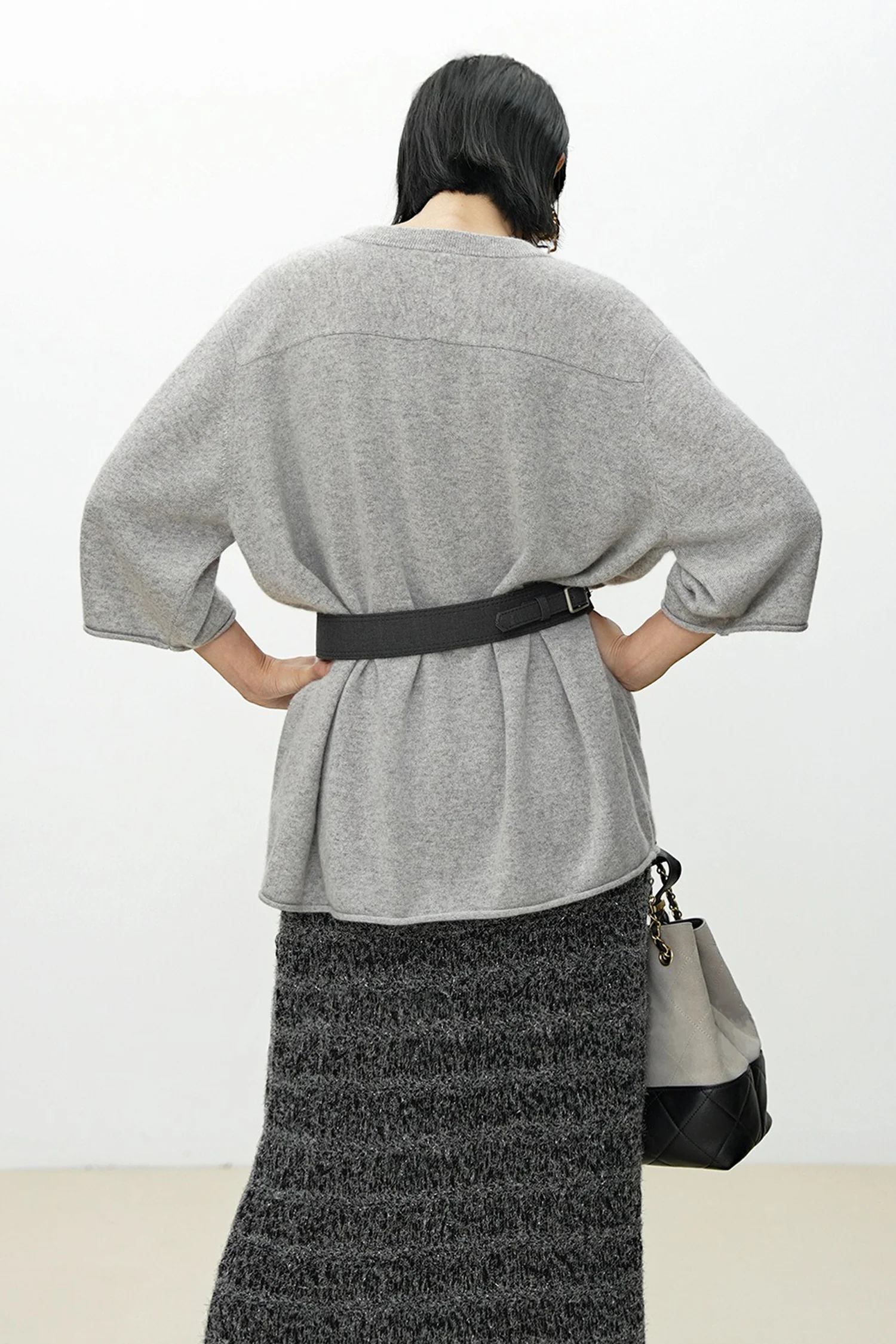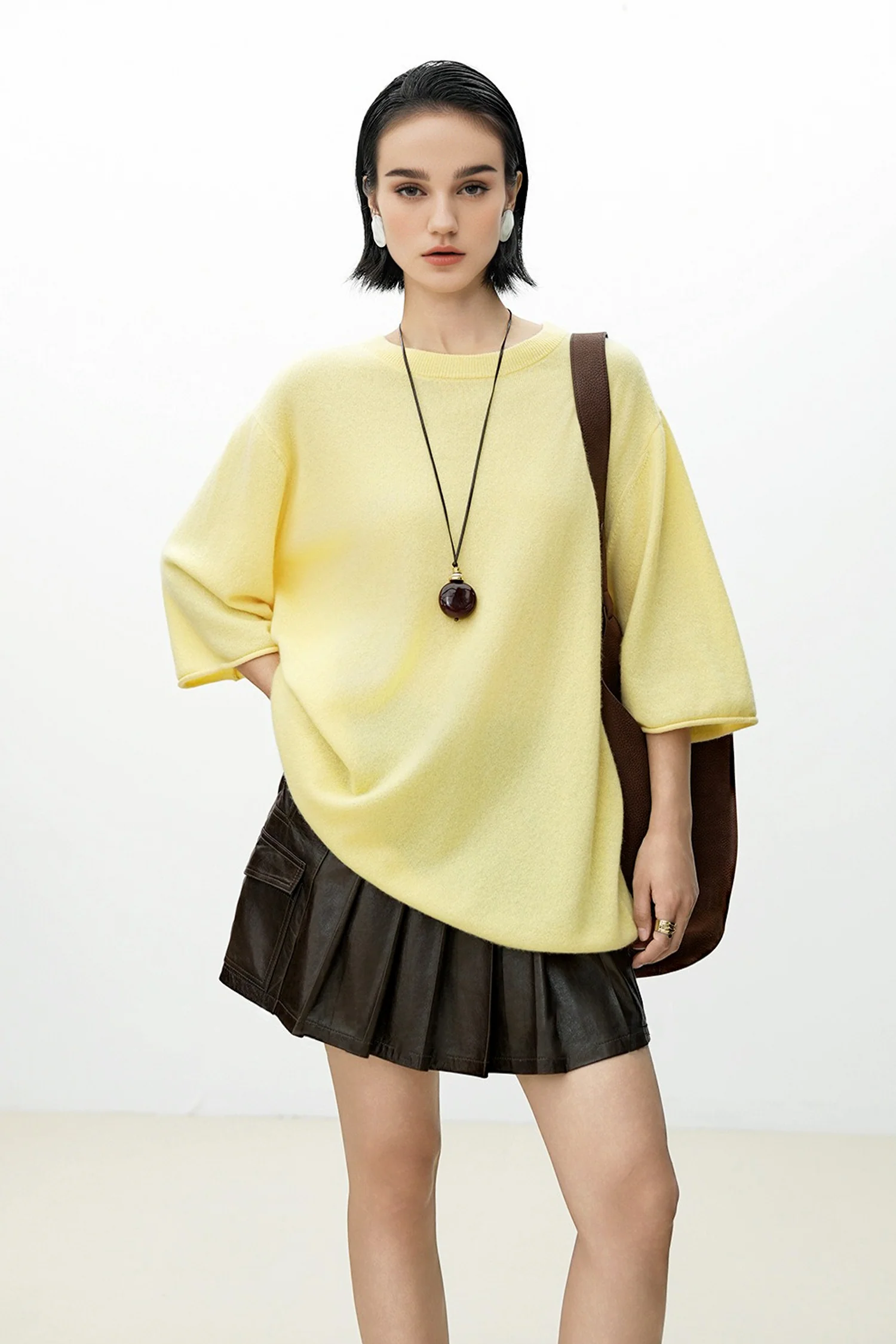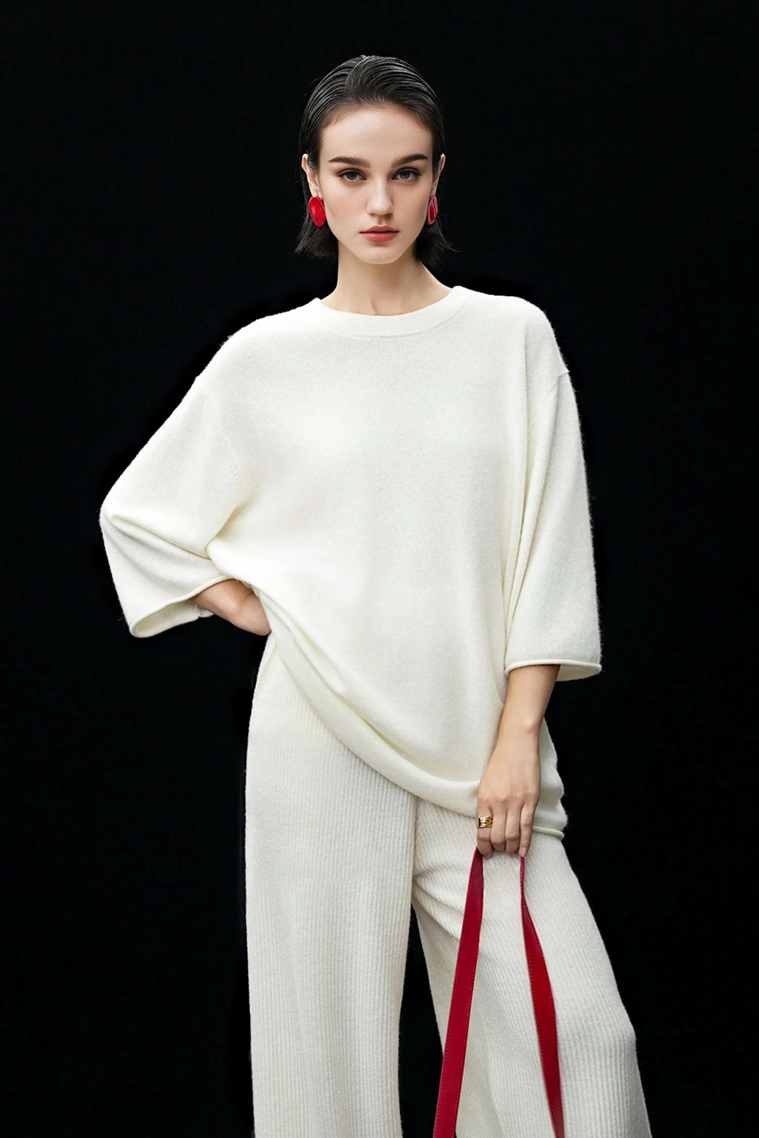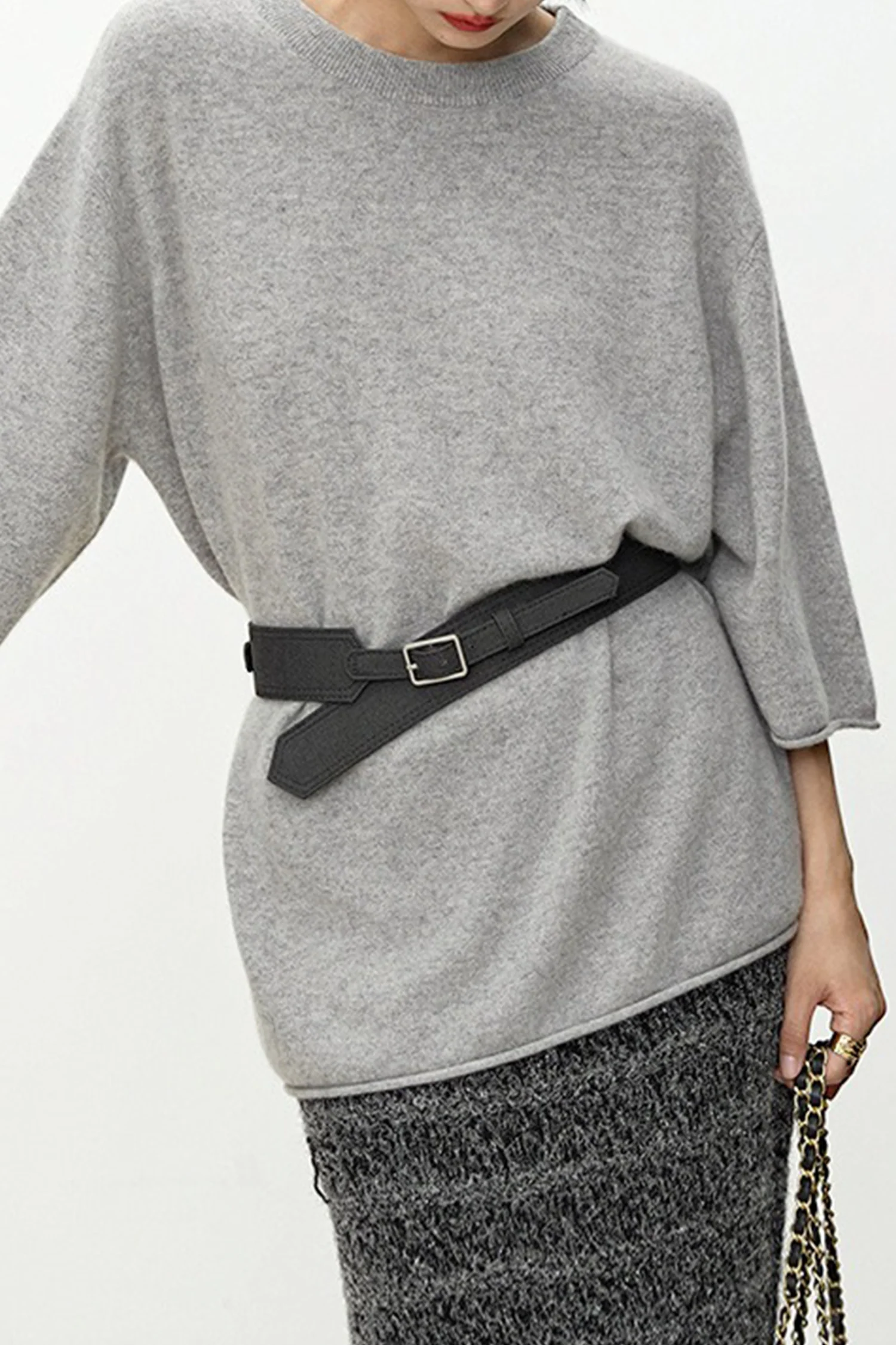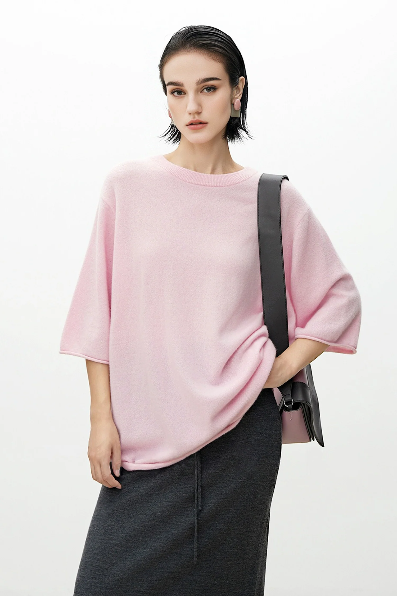 Oversized Cashmere 3/4 Sleeve Sweater T-Shirt