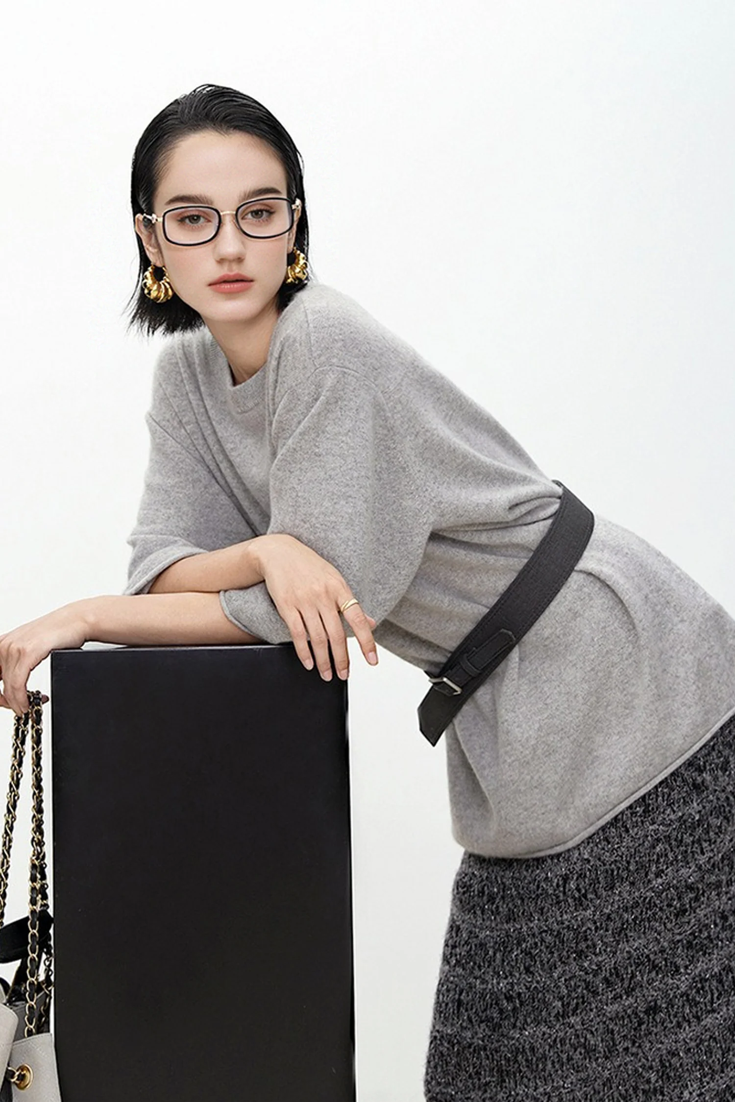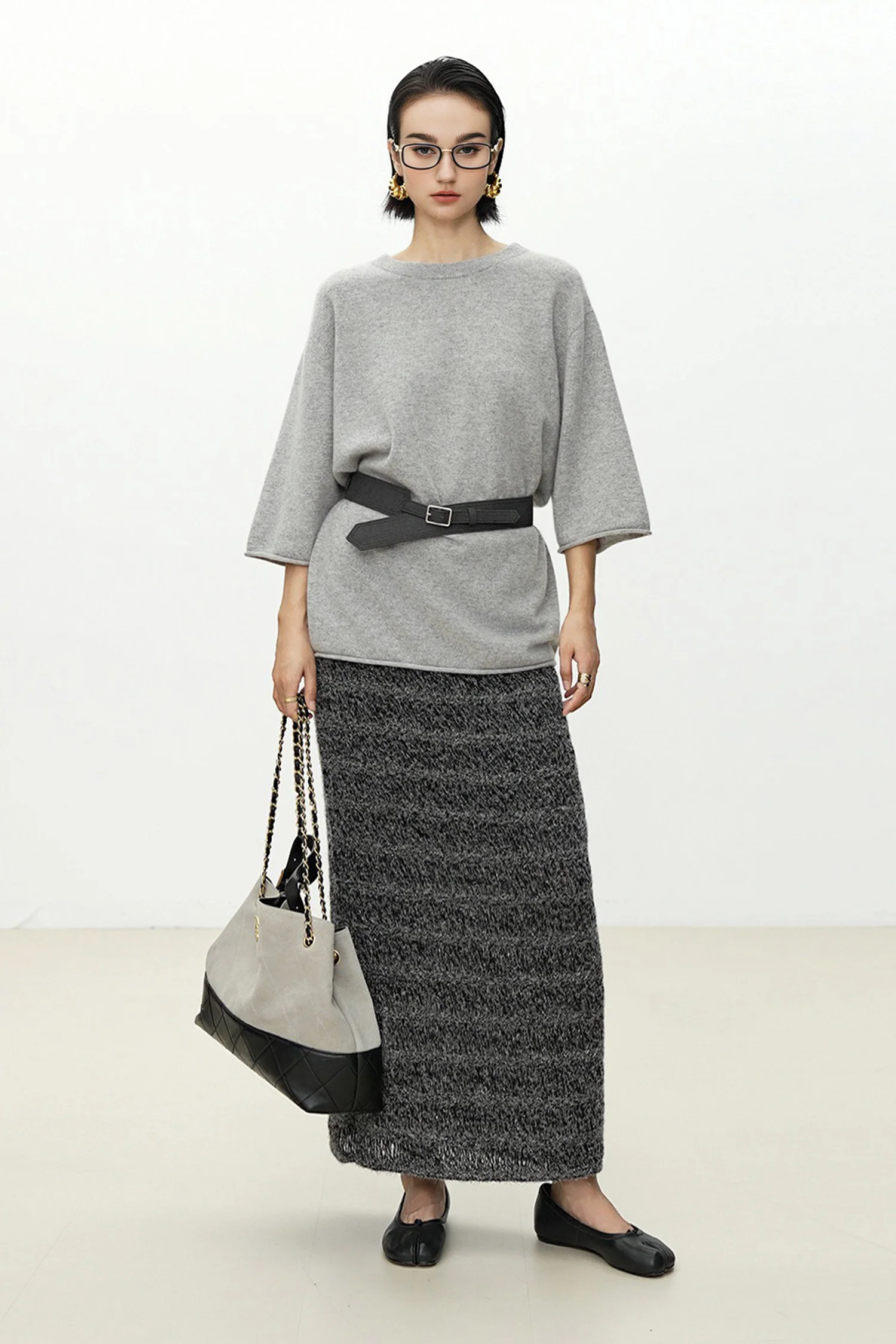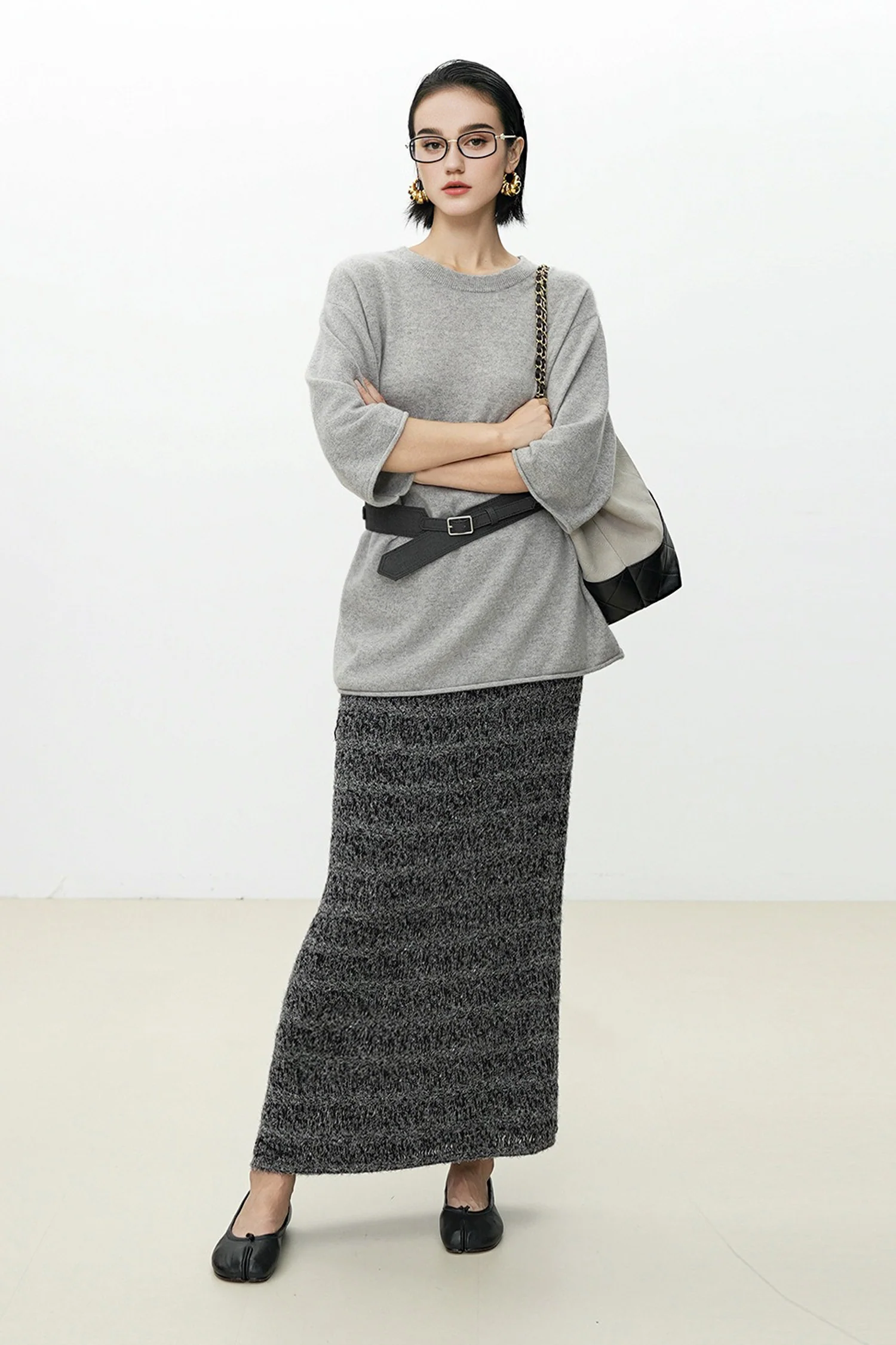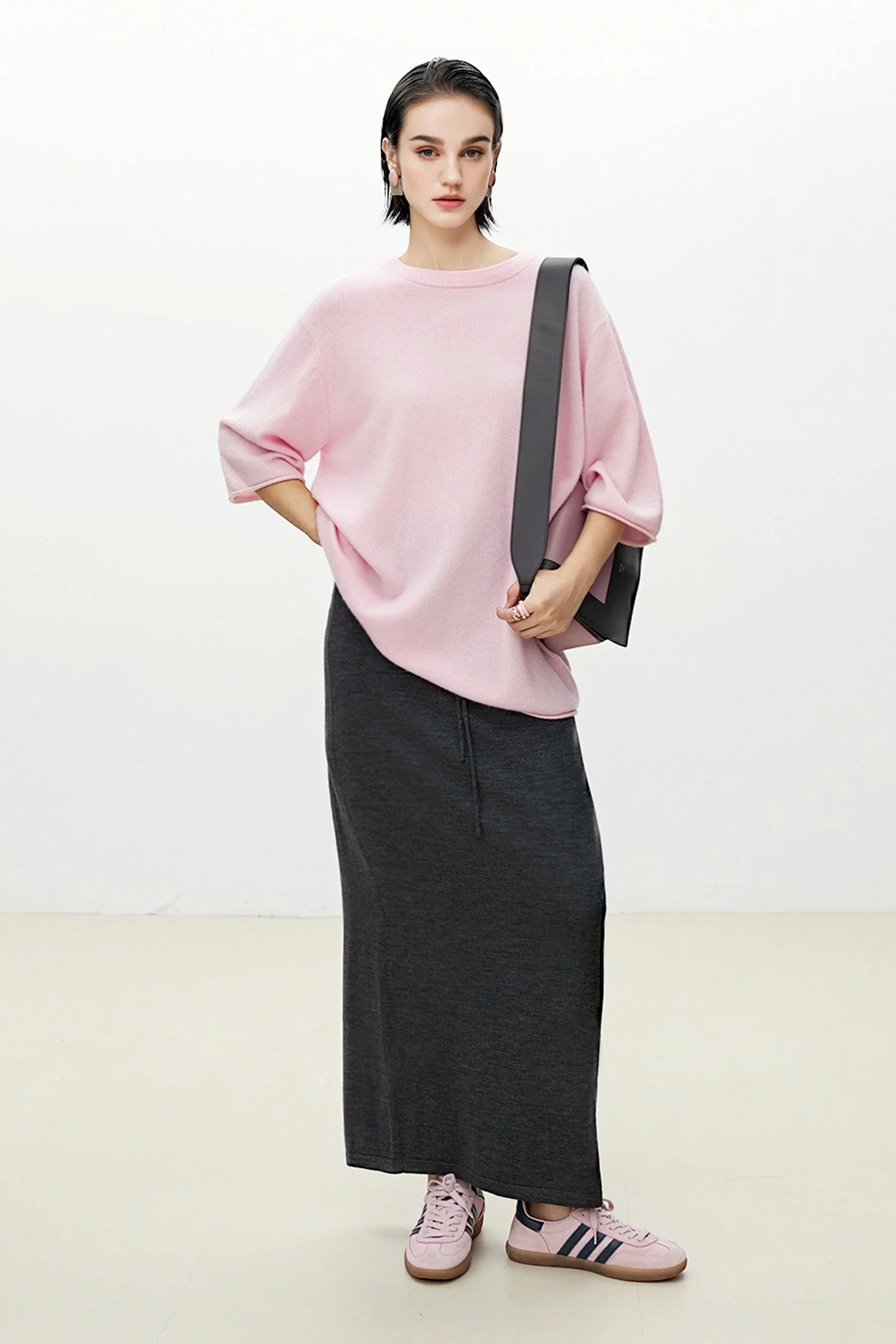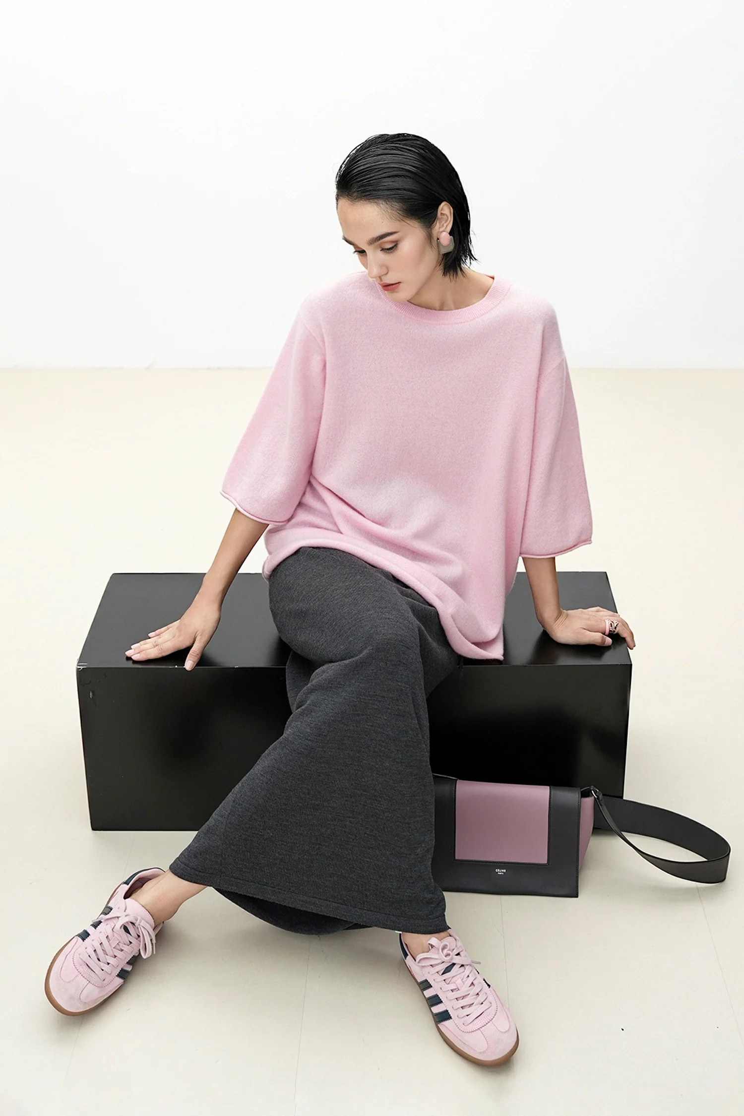 Oversized Cashmere 3/4 Sleeve Sweater T-Shirt