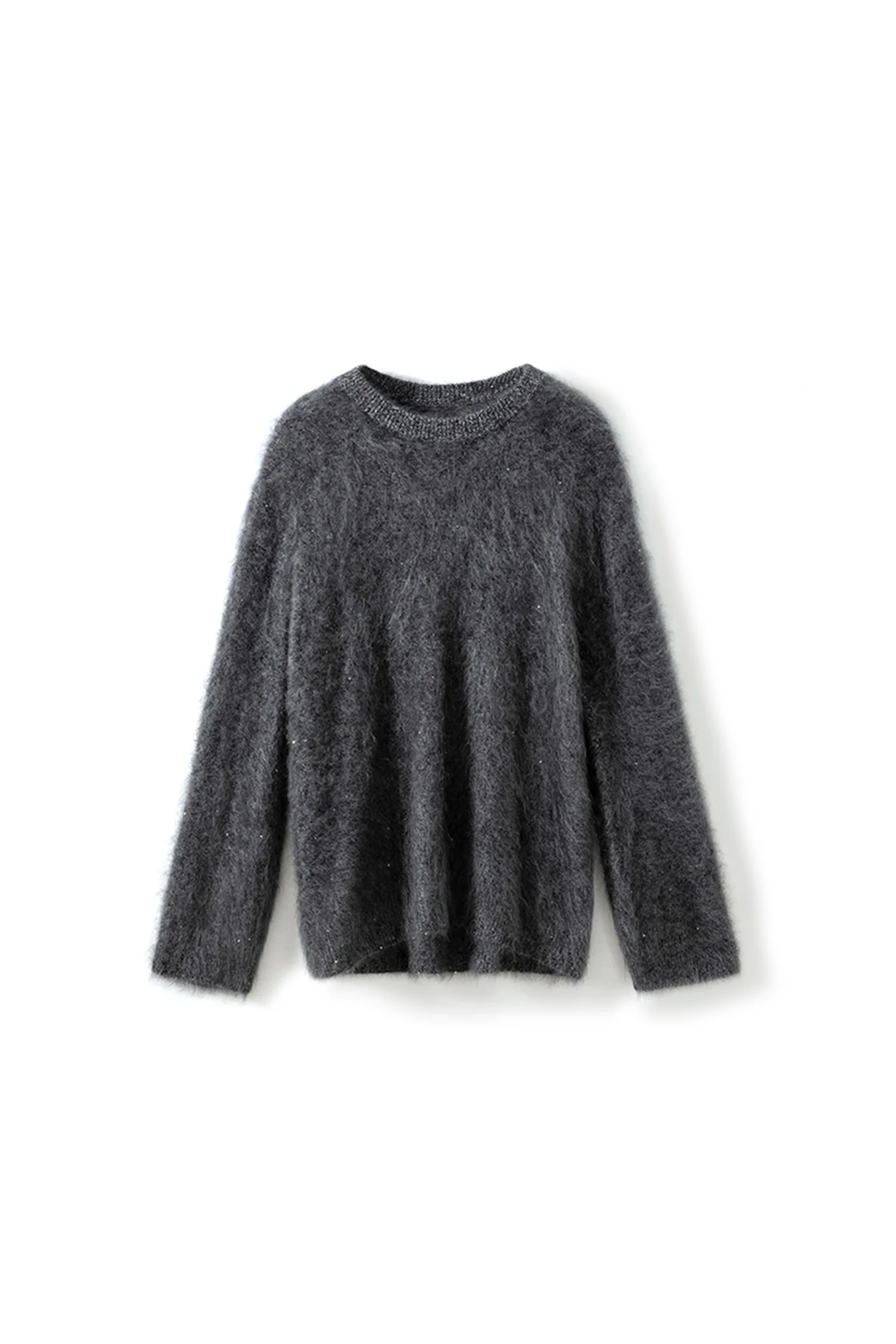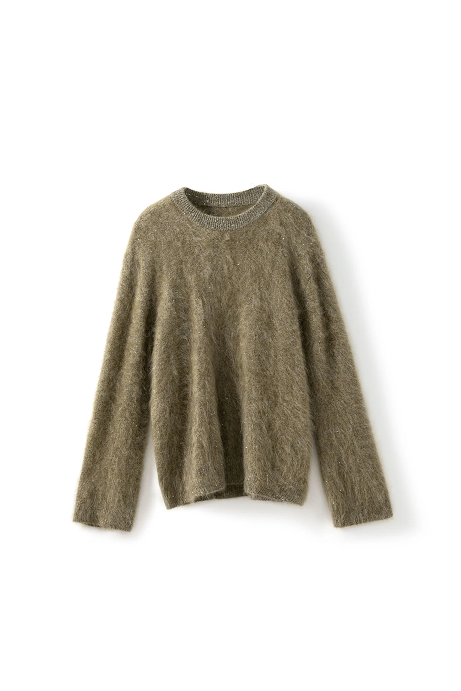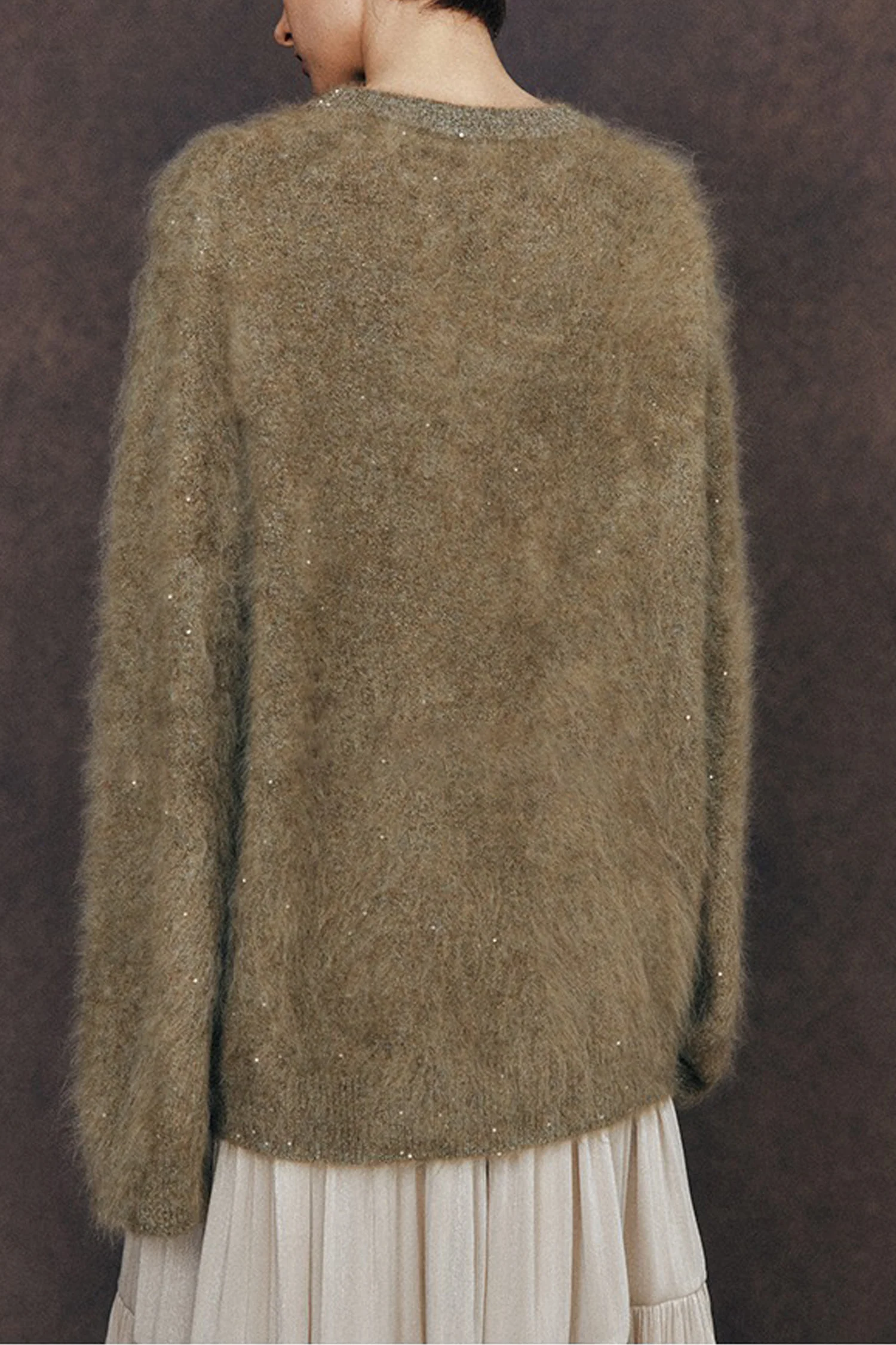 Brushed Cashmere Sequin Crewneck Sweater in Top-Tier Italian Yarn