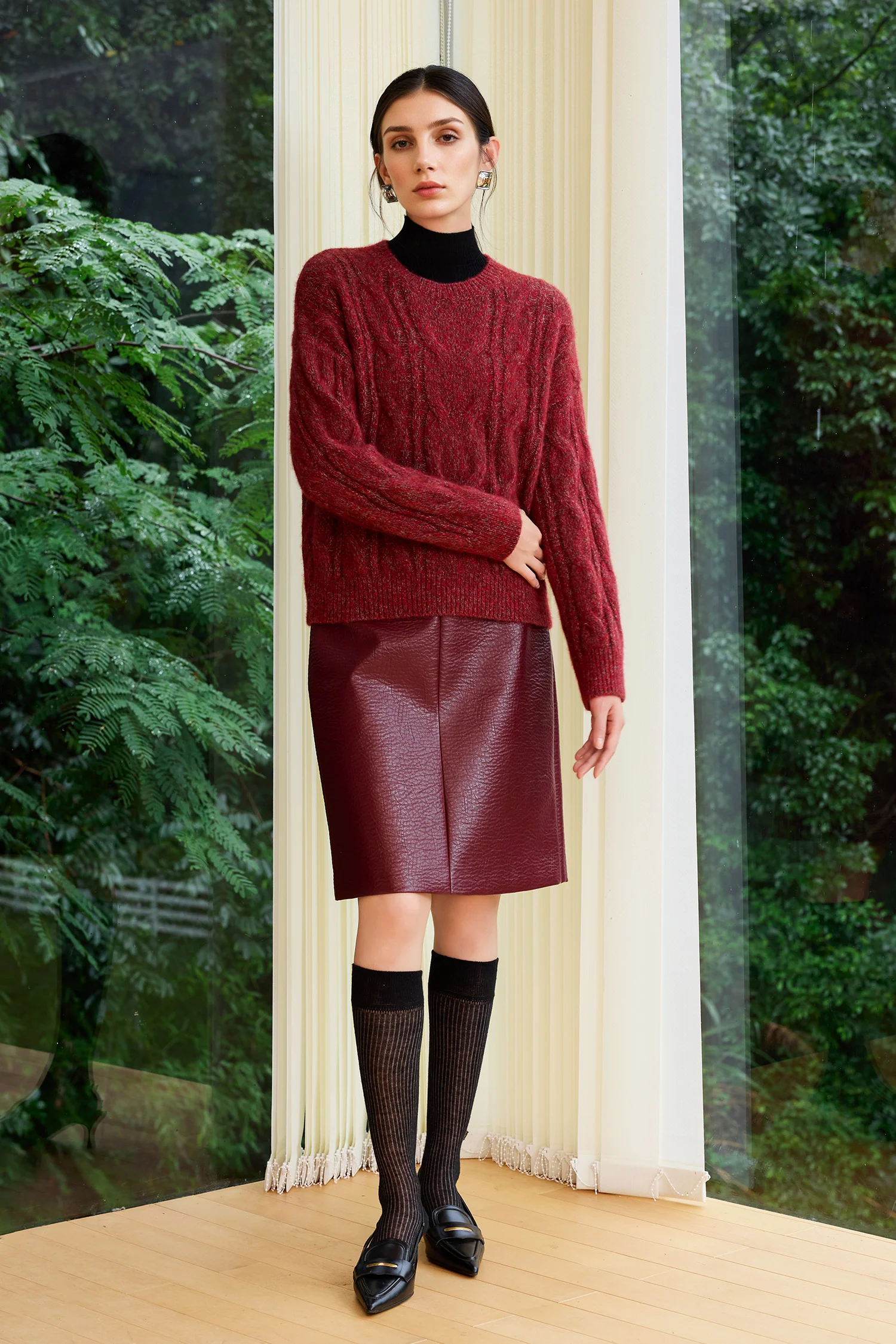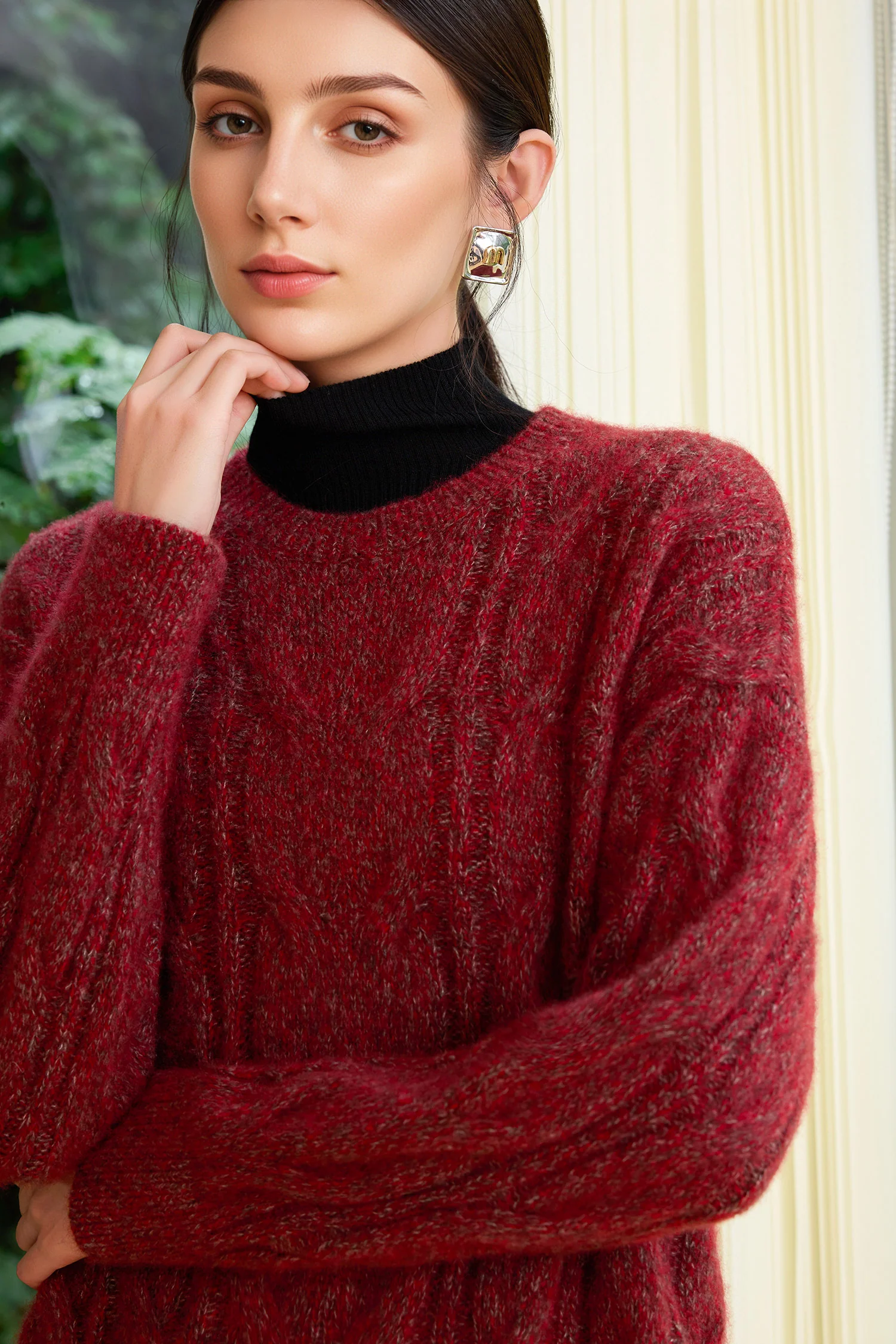 Classic Cashmere-Silk Cable Knit Marled Crewneck Sweater