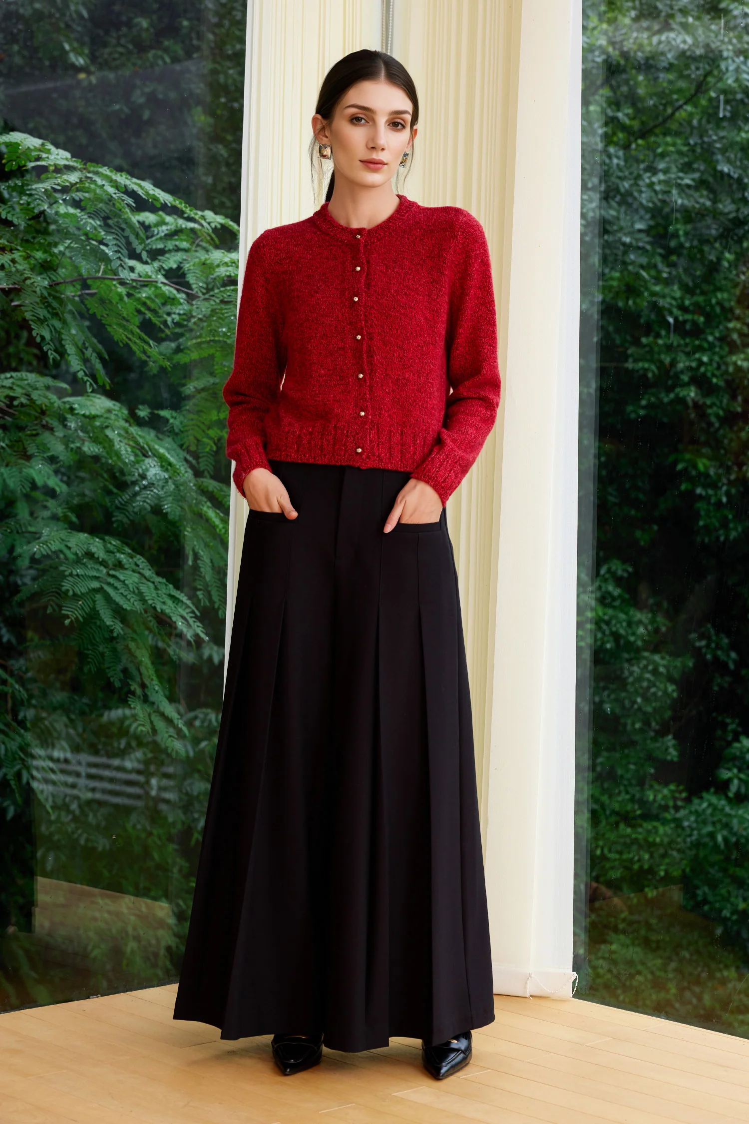 Chic Cashmere-Merino Color-Block Crewneck Cardigan