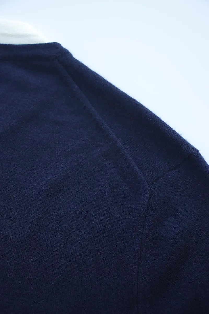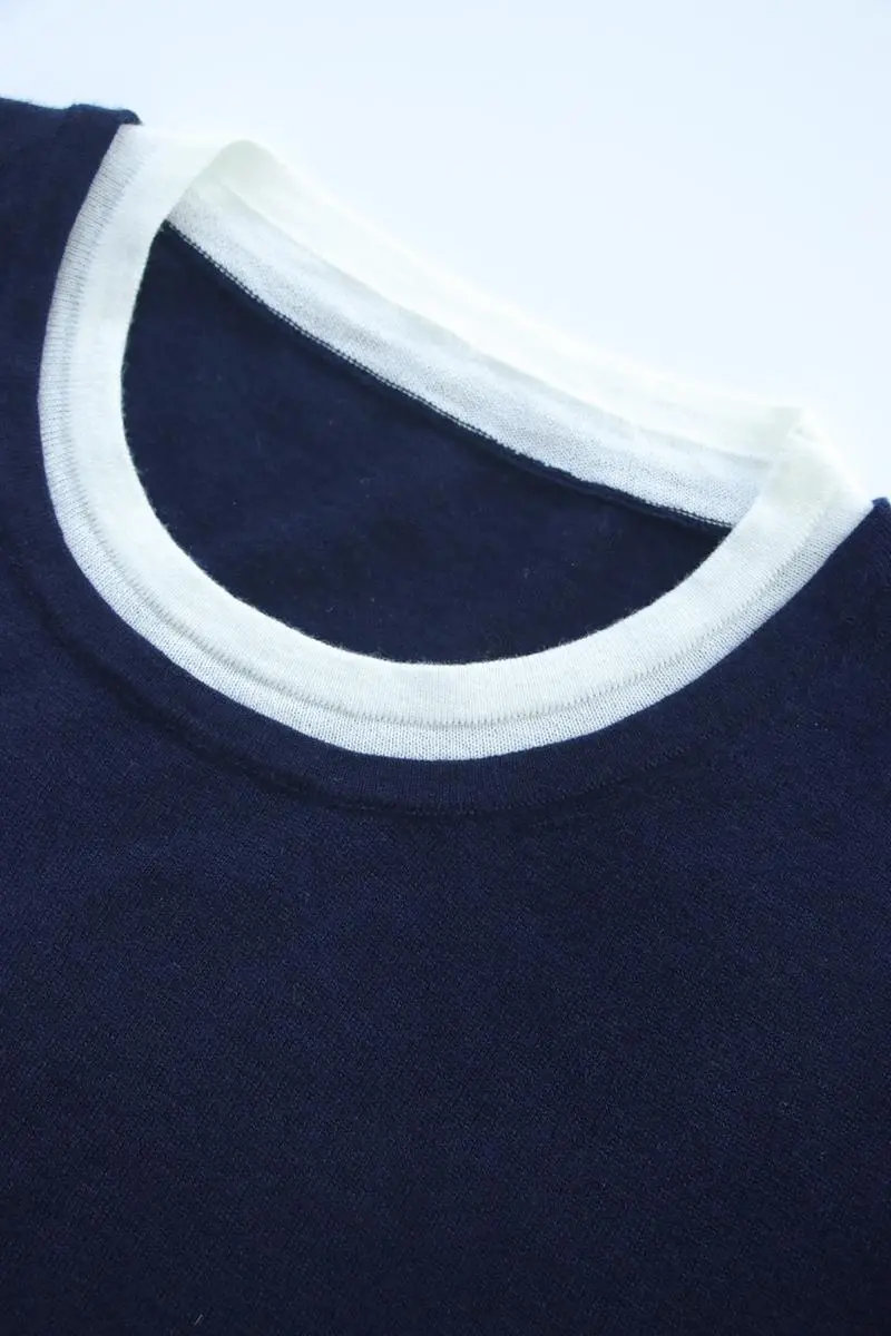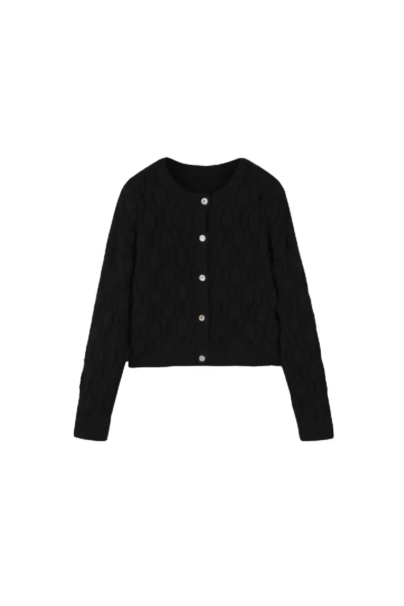 Classic French Inspired 100 Wool Crewneck Cardigan With Contrast Trim in Black