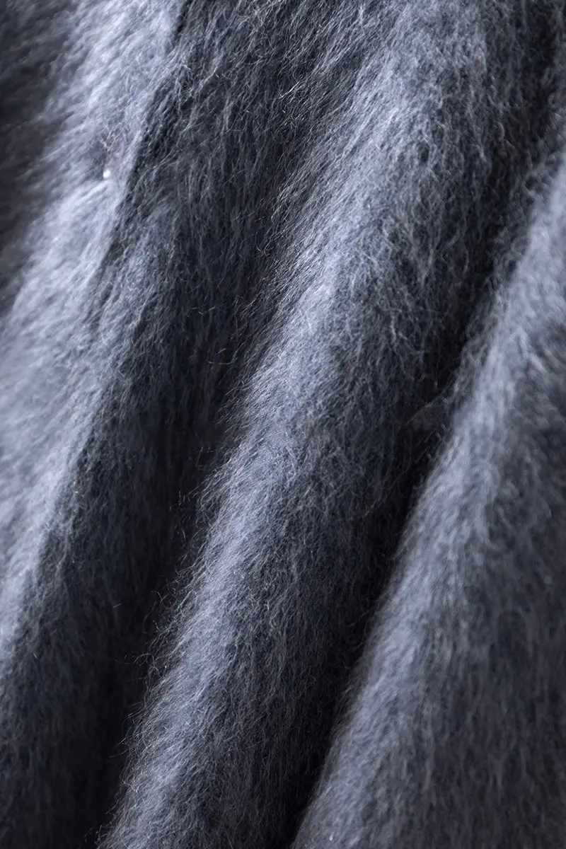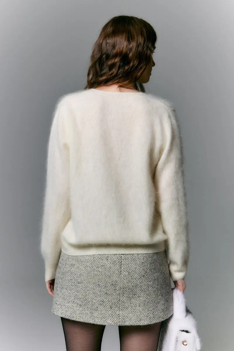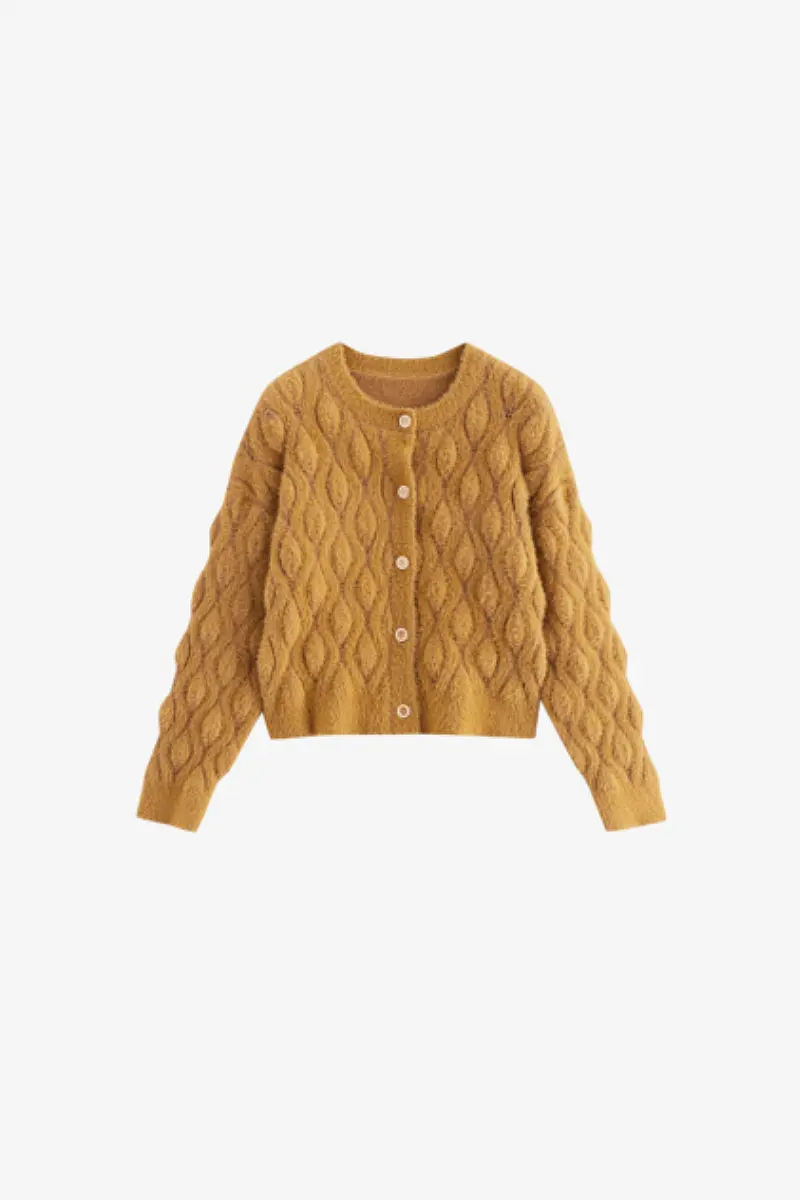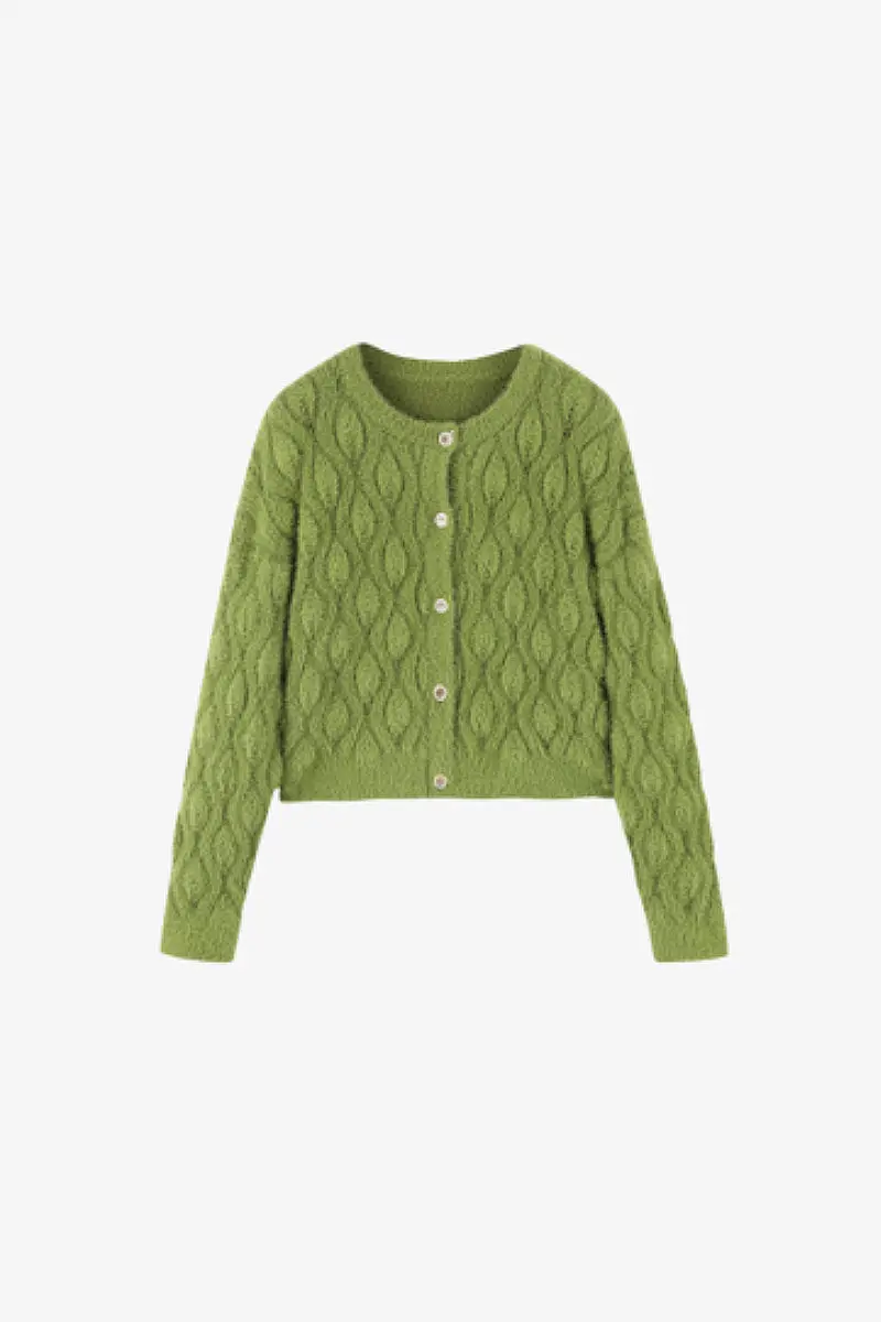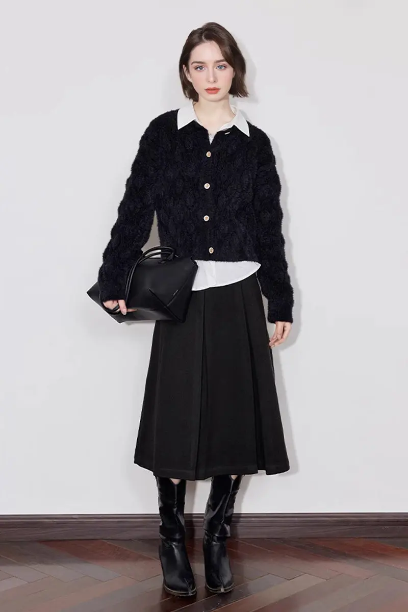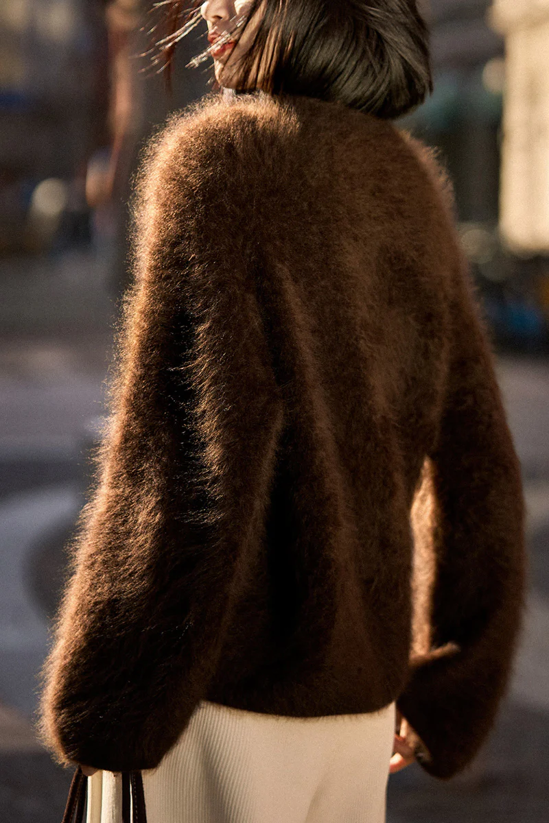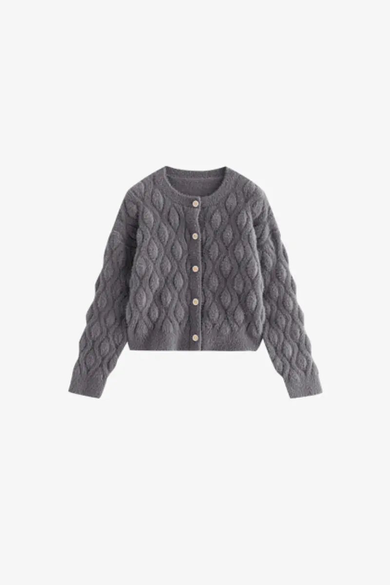 Faux Mink Fur Cropped Cable Knit Crewneck Cardigan