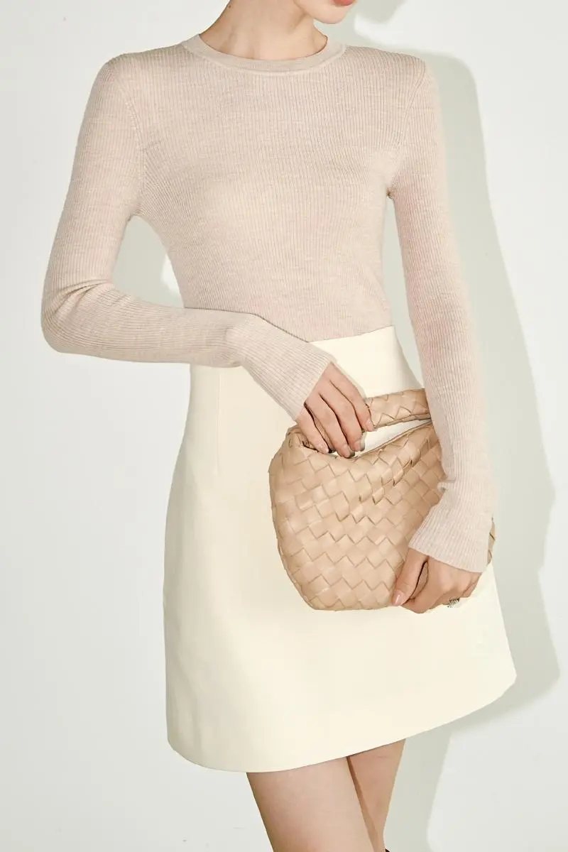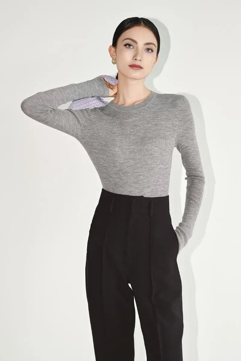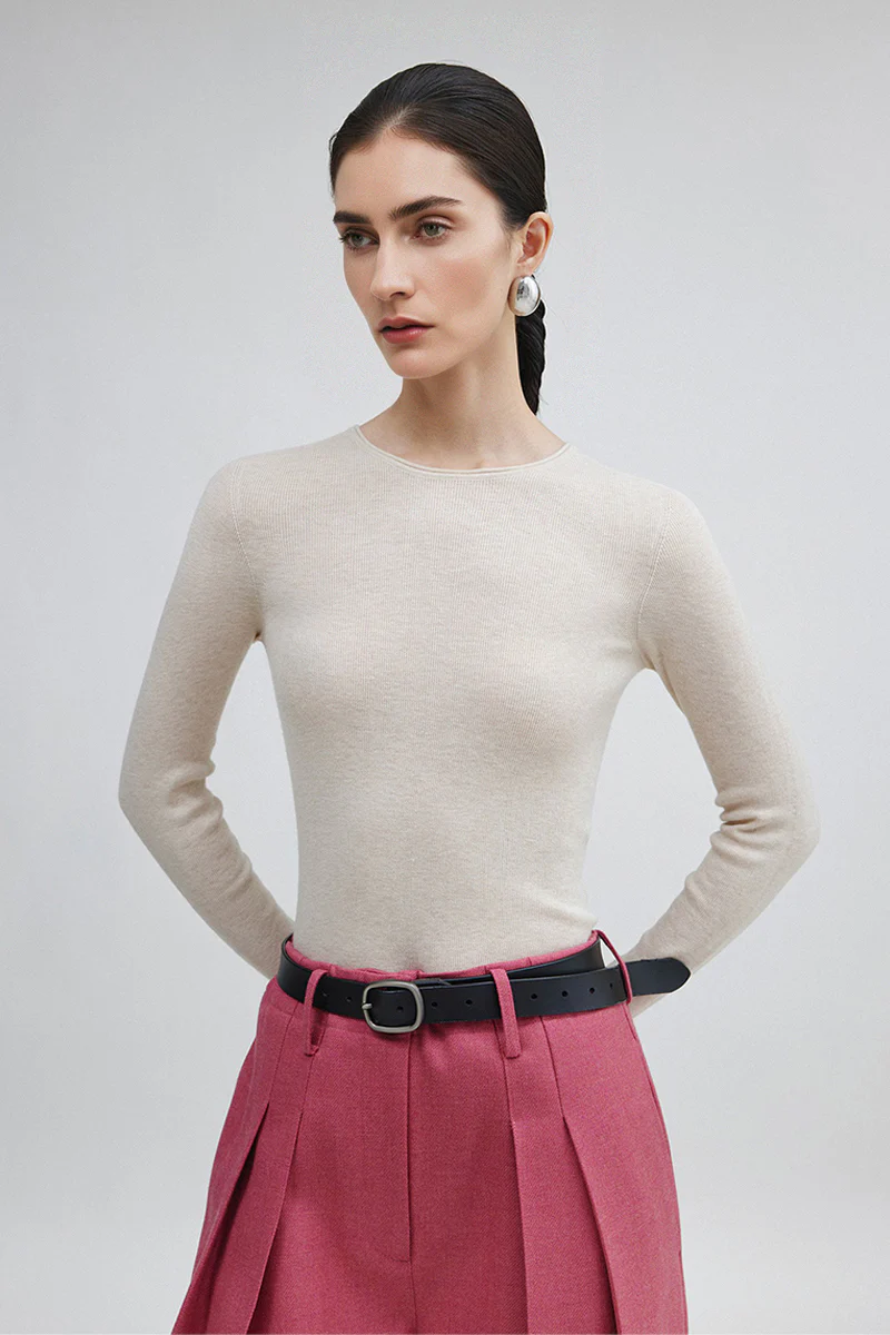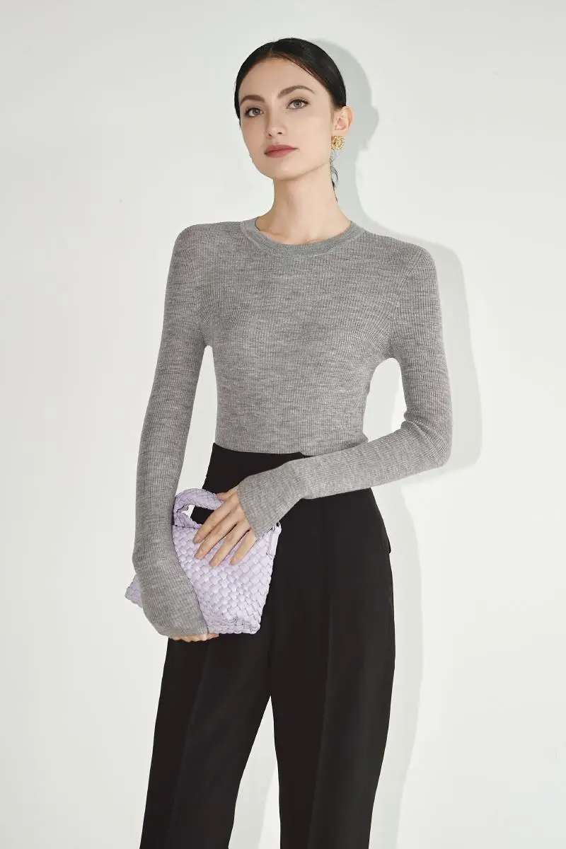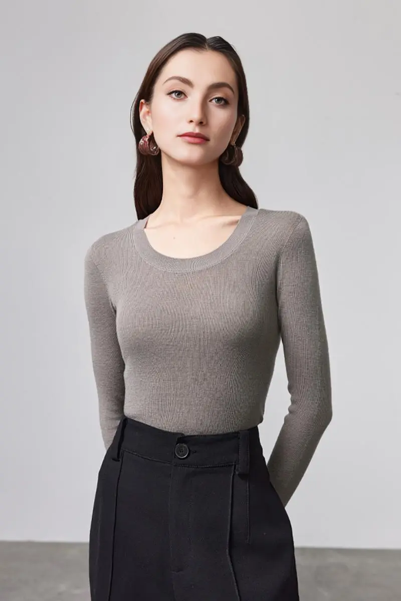 100 Merino Wool Seamless Knit Crewneck Sweater