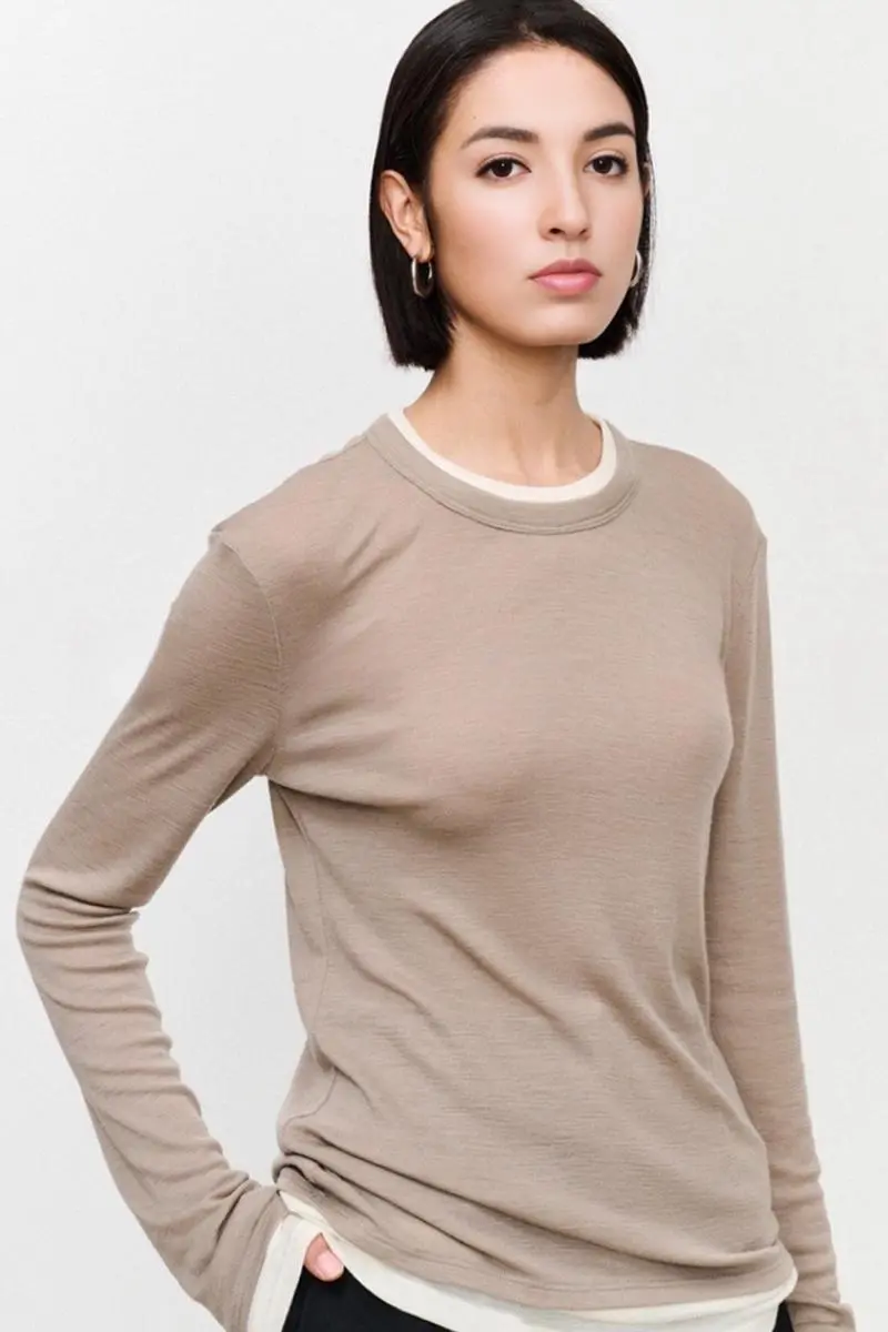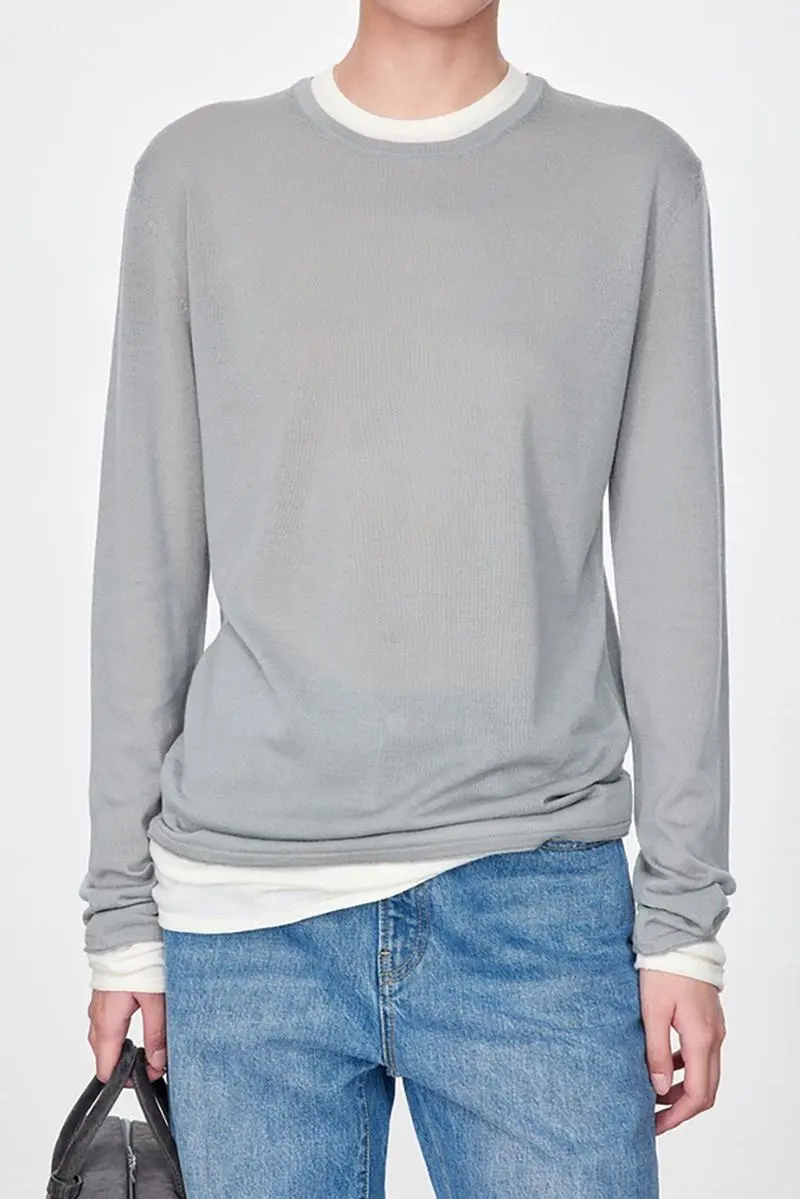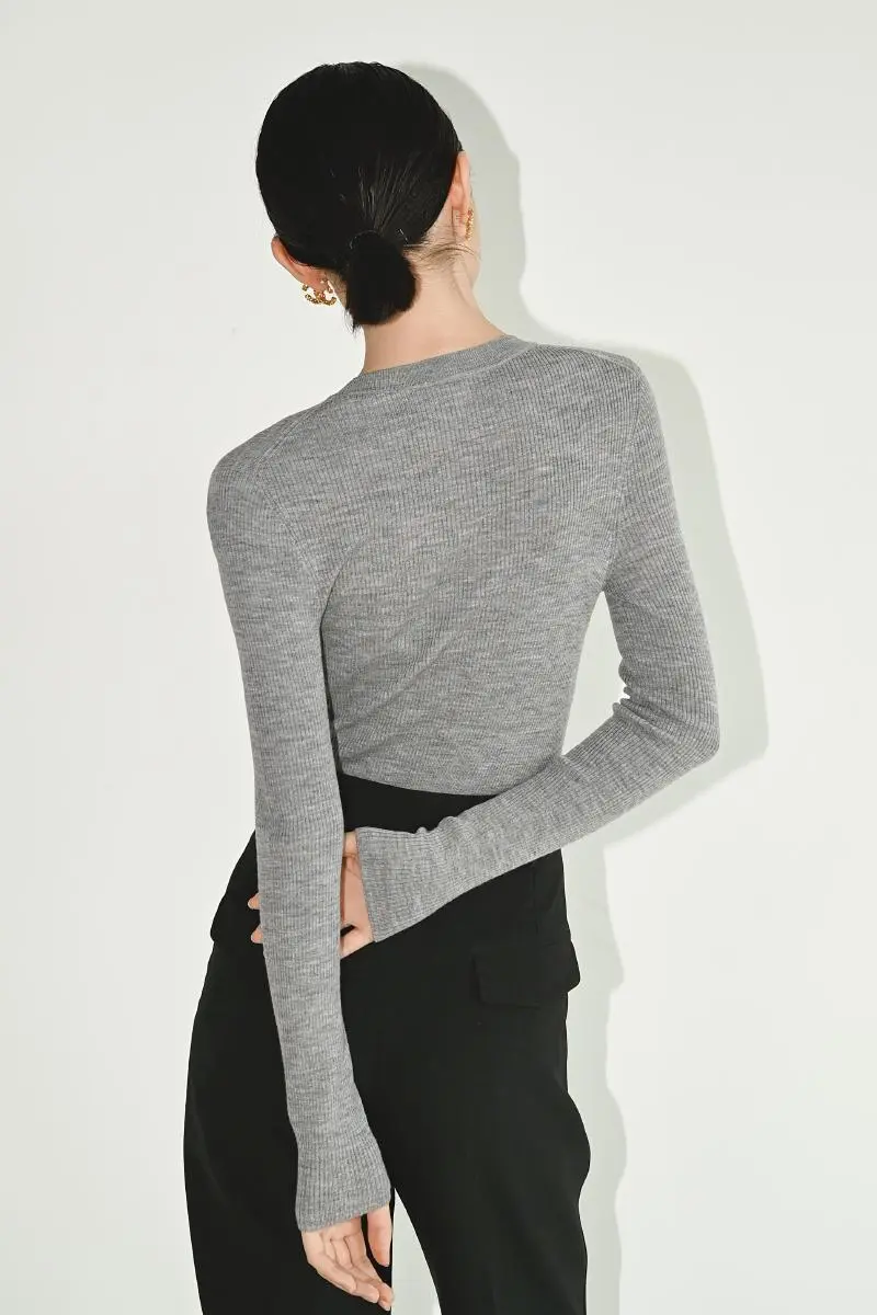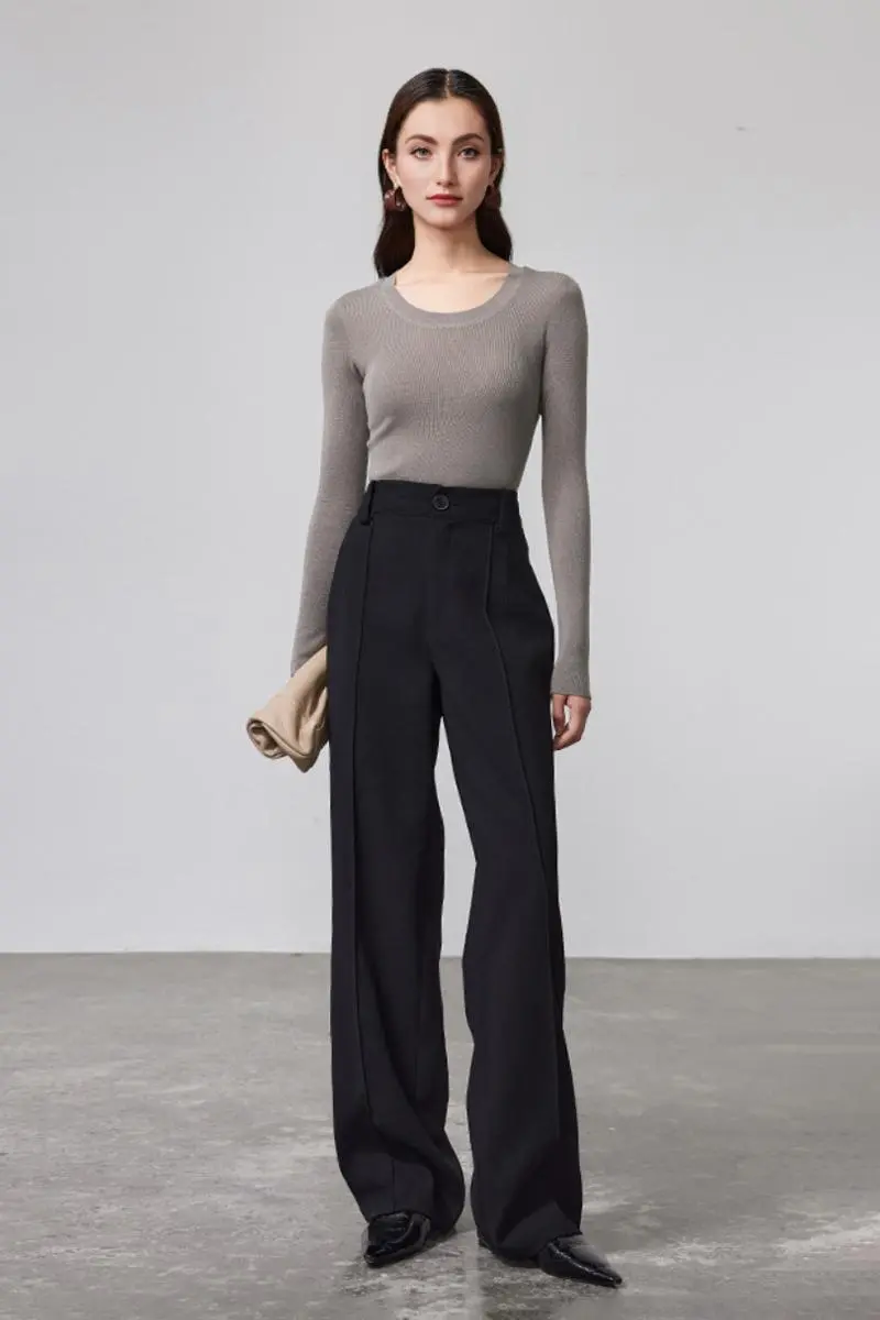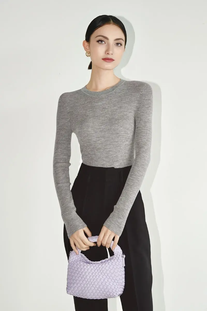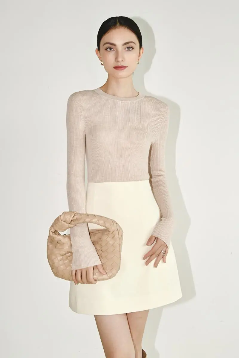 100 Merino Wool Seamless Knit Crewneck Sweater