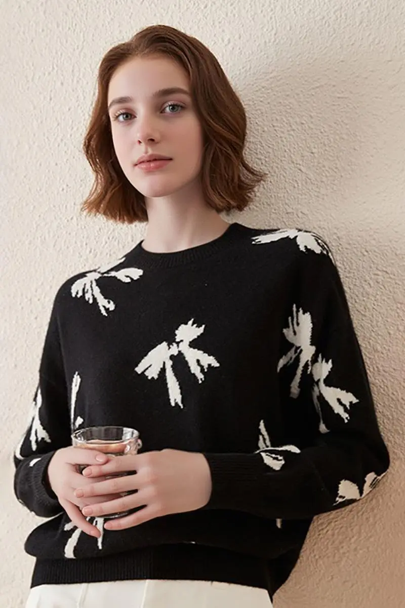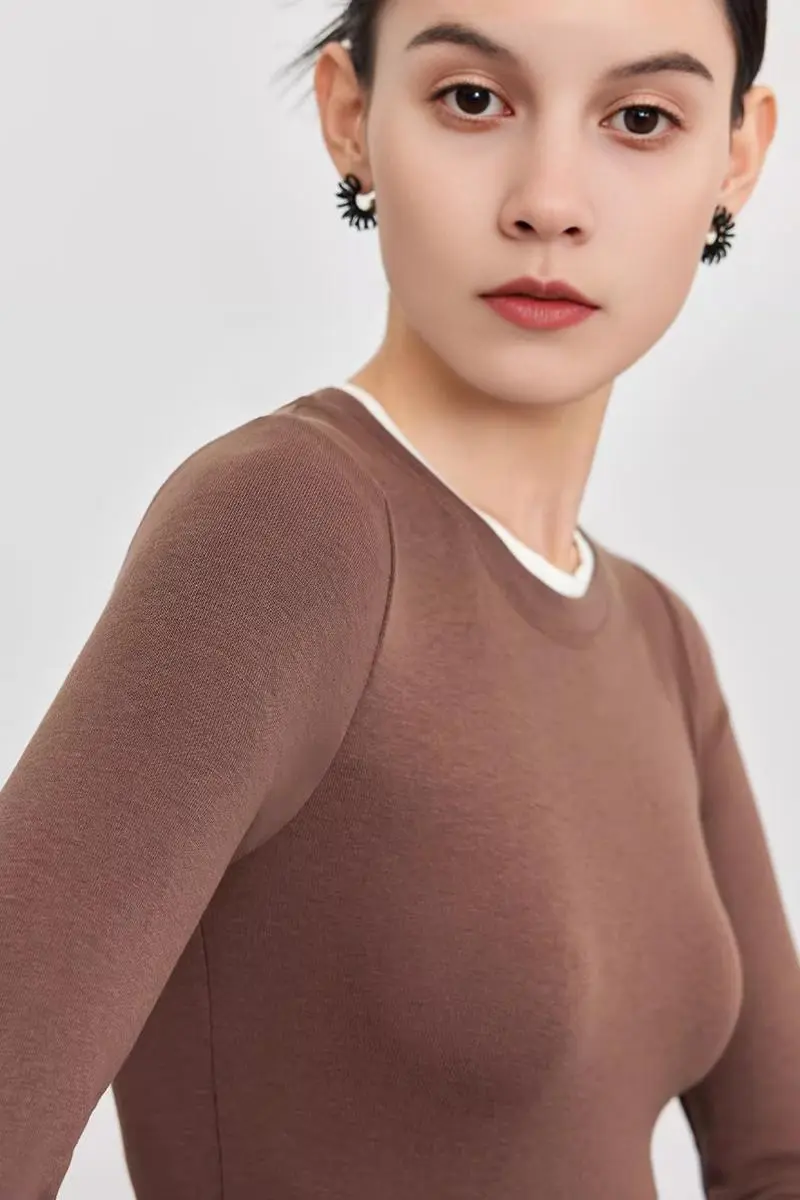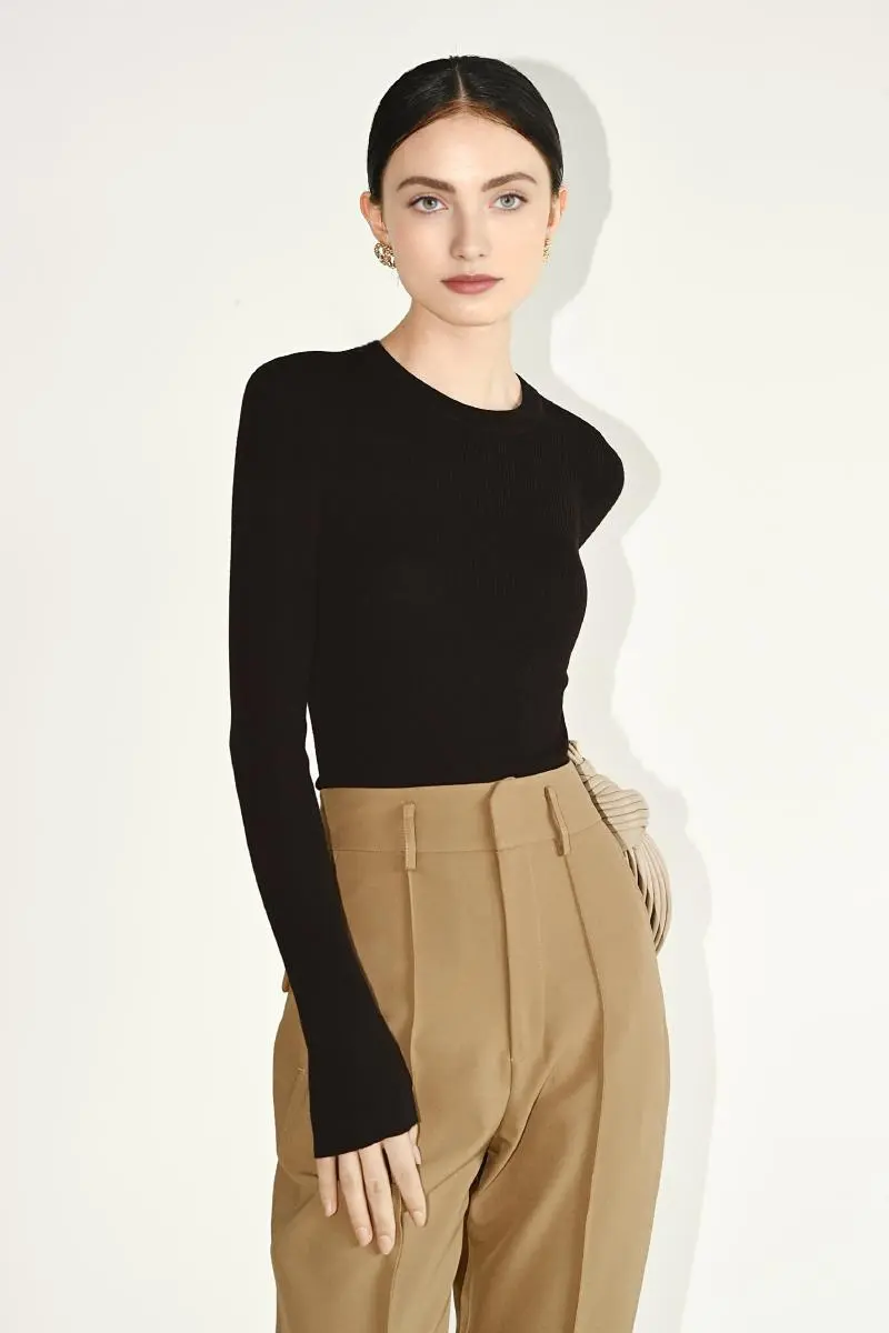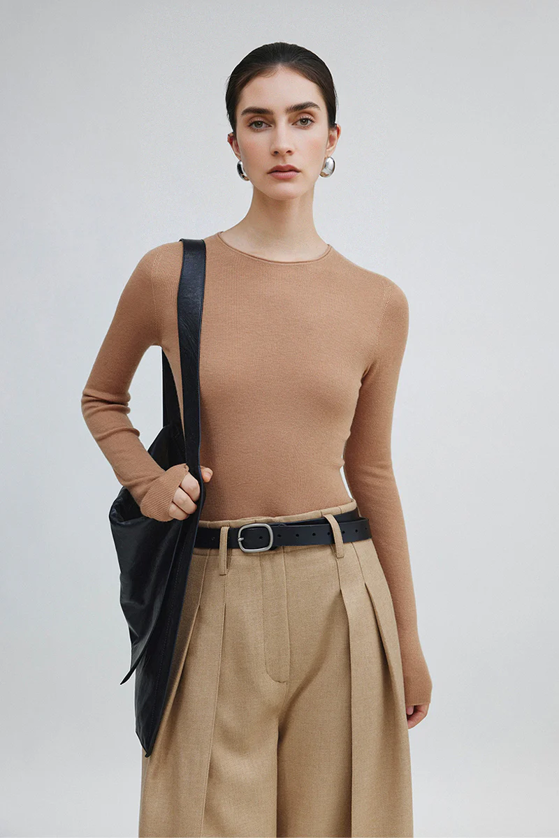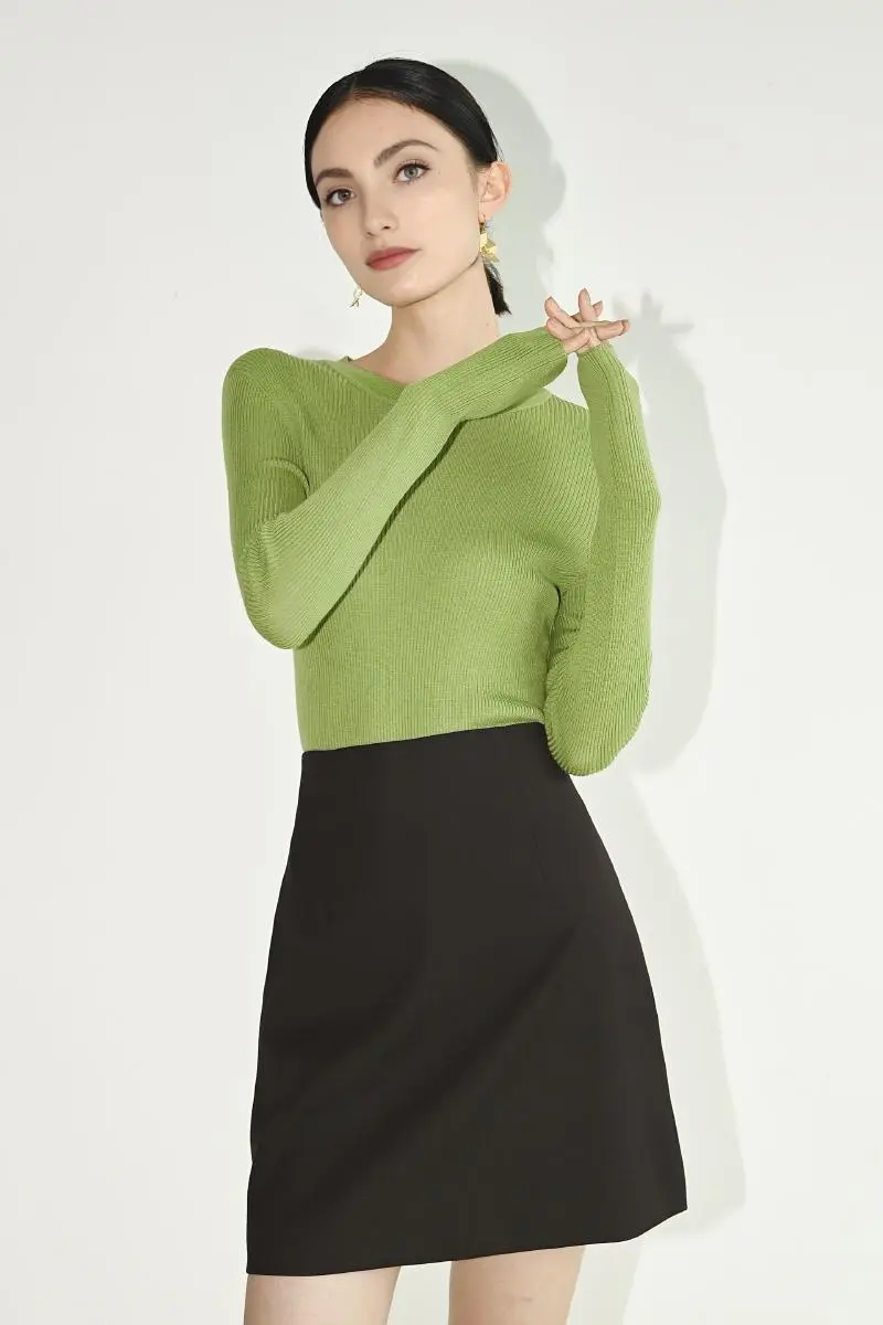 100 Merino Wool Seamless Knit Crewneck Sweater