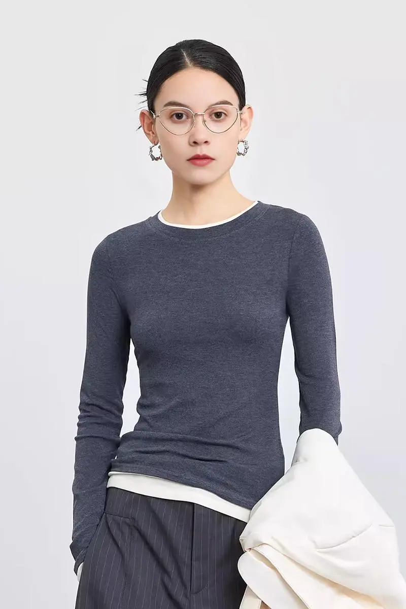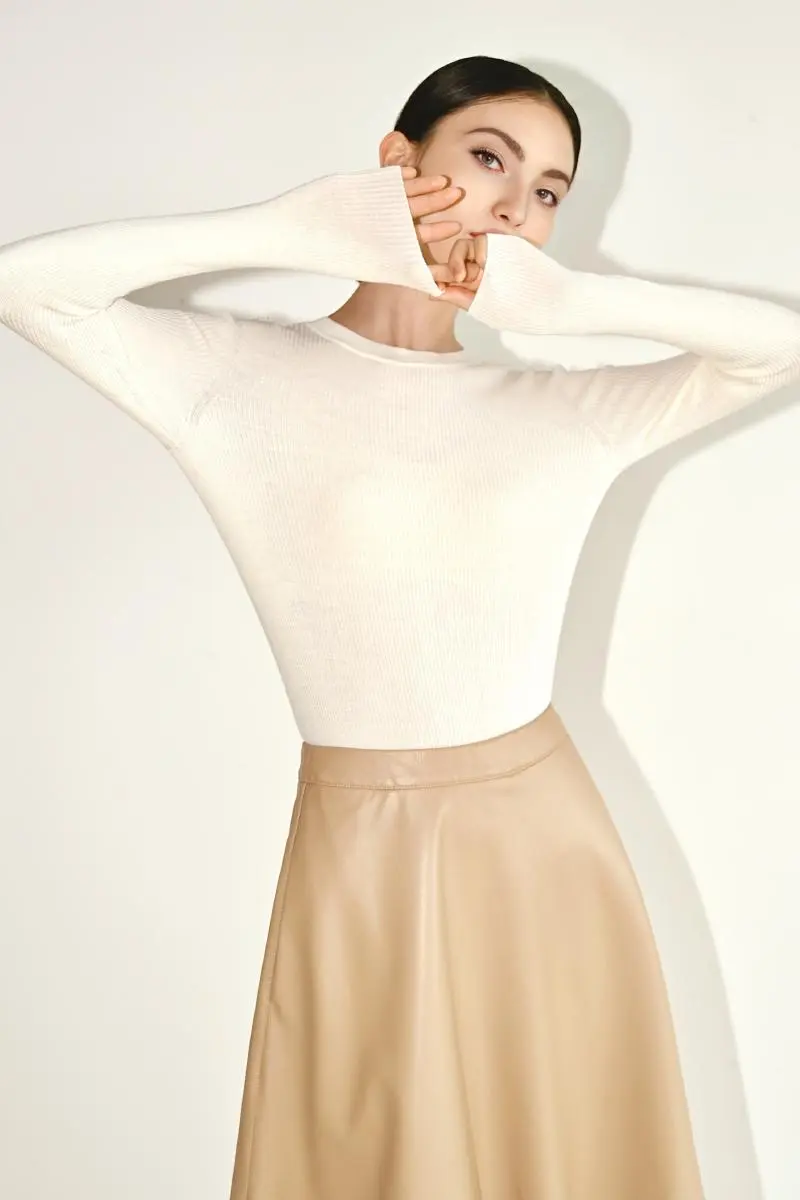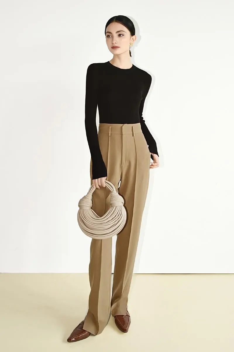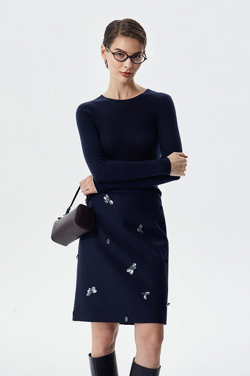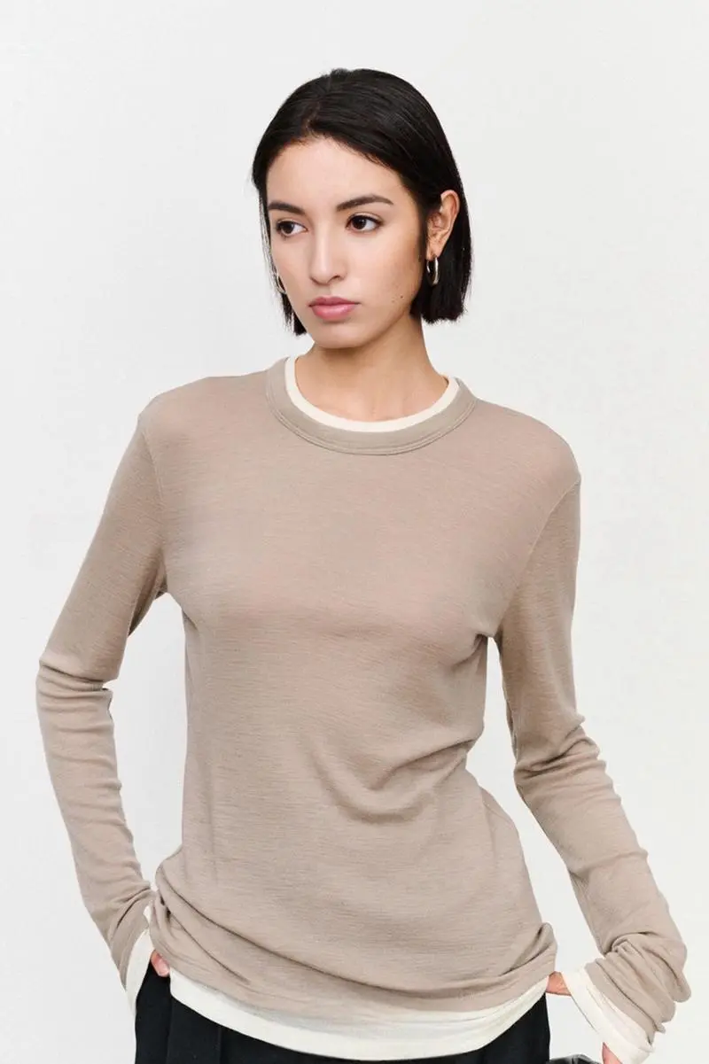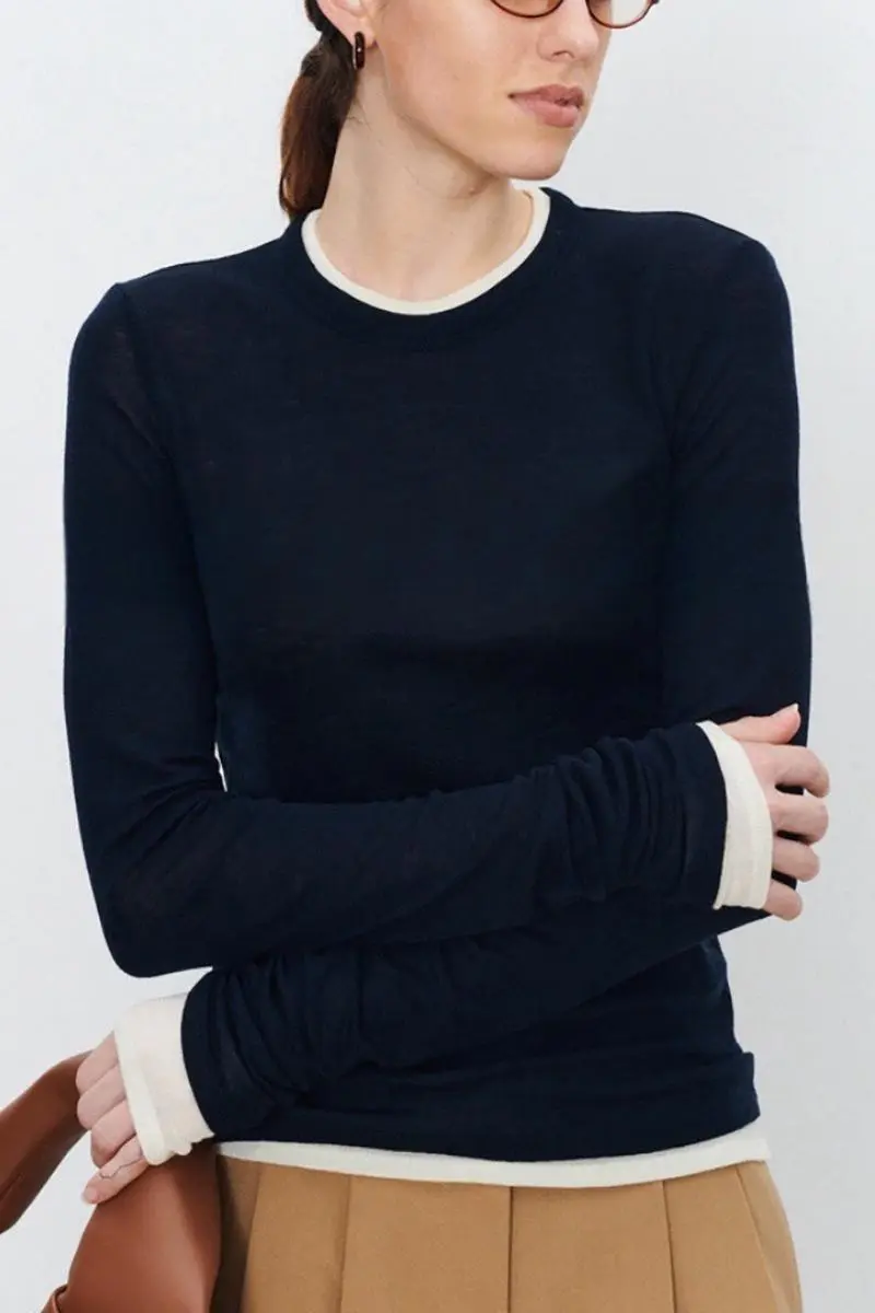 100 Merino Wool Seamless Knit Crewneck Sweater