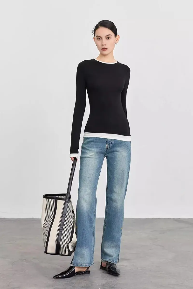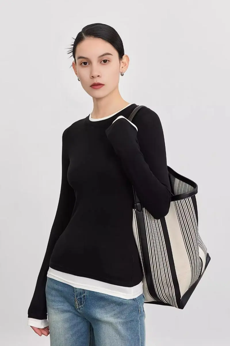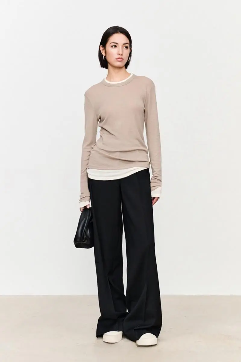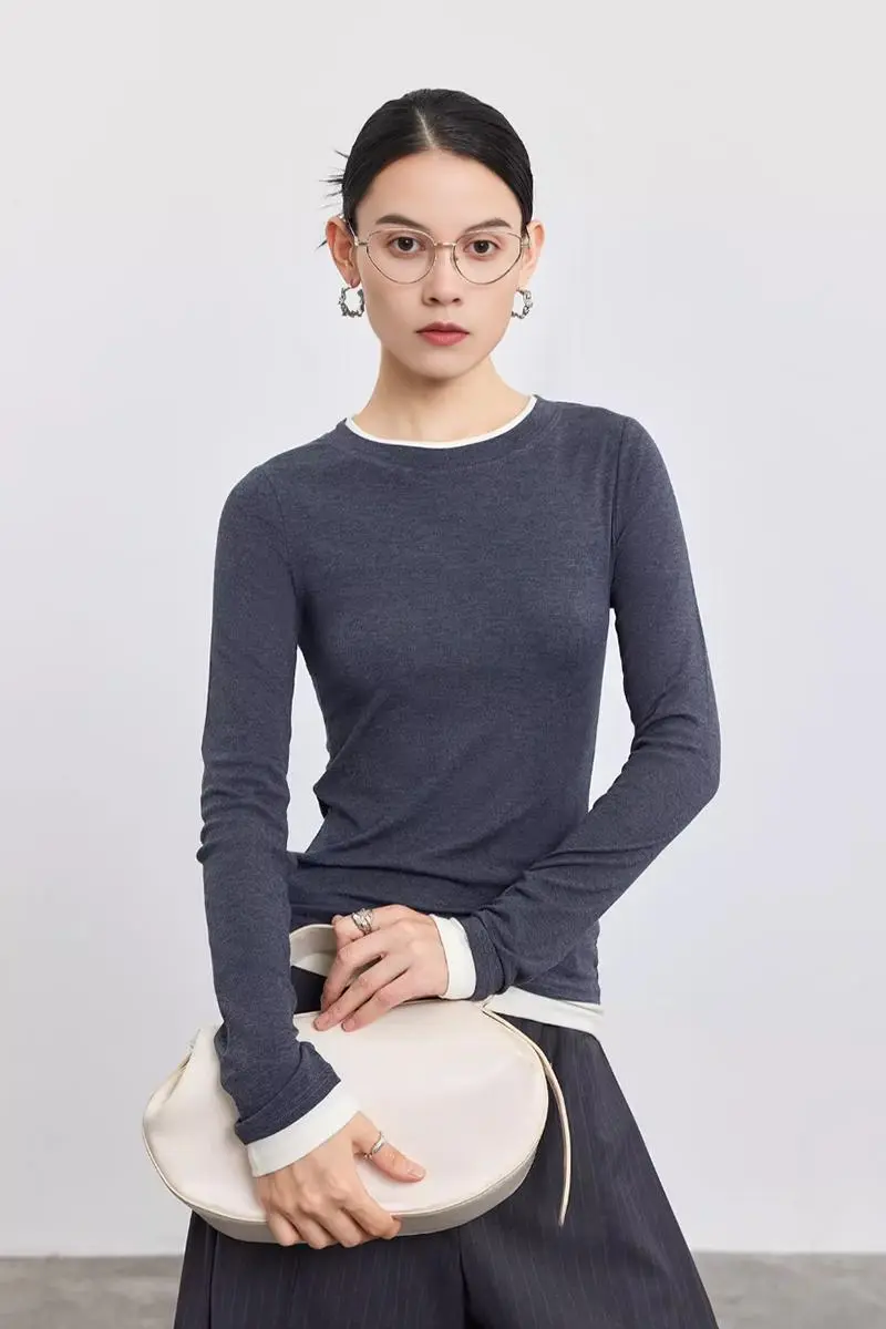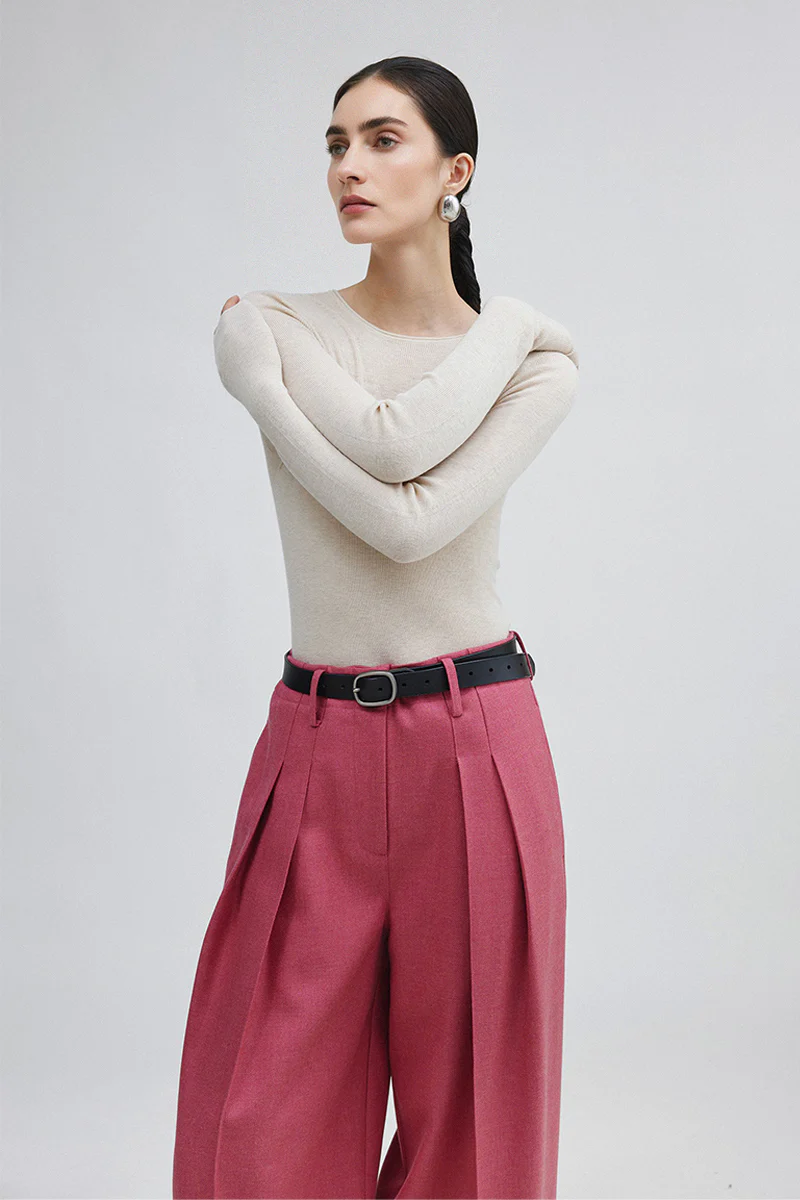 100 Merino Wool Seamless Knit Crewneck Sweater
