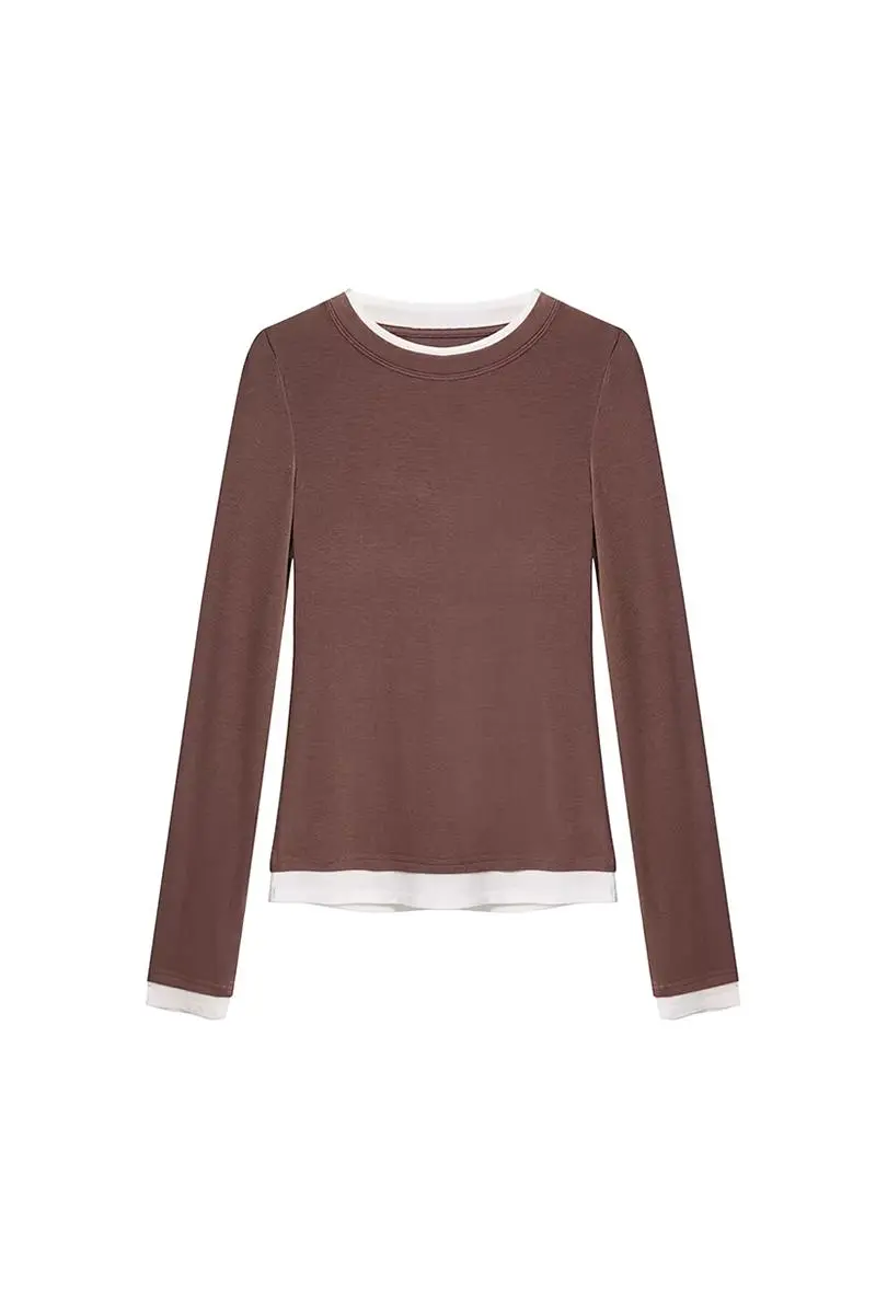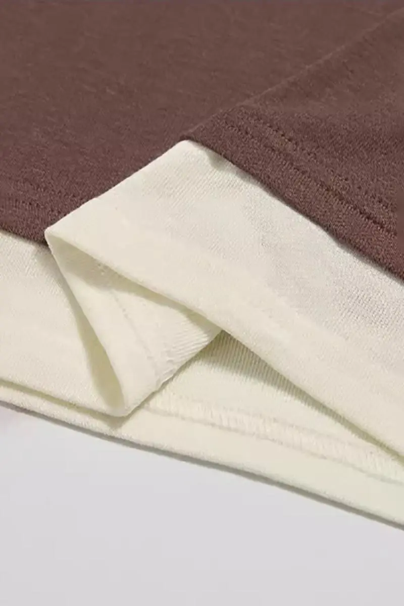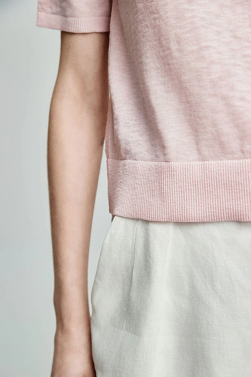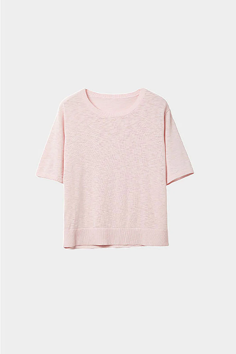 Relaxed Fit Cotton-Linen Short-Sleeve Crewneck T-Shirt with Ribbed Trims