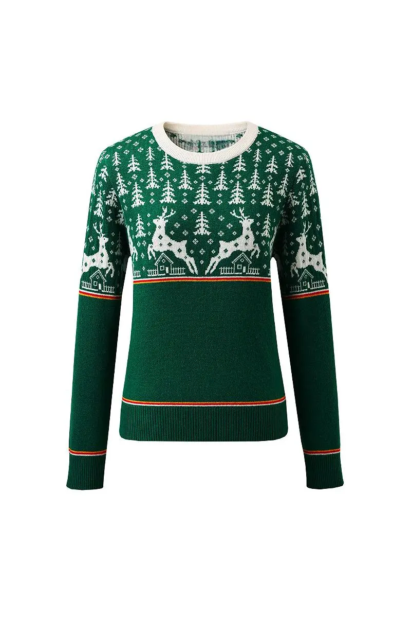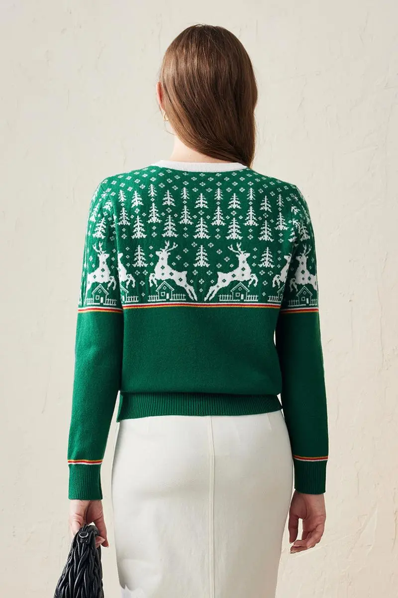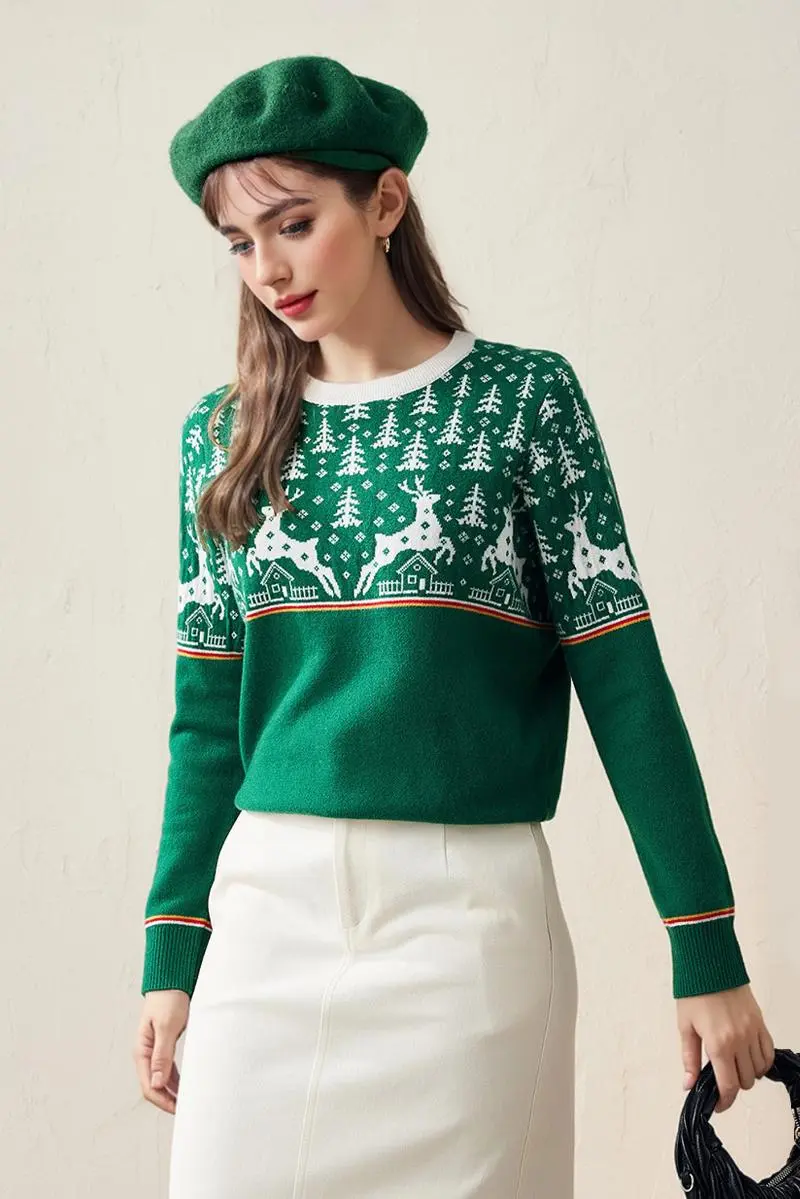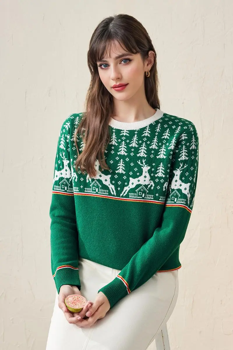 100 Wool Chunky Fair Isle Christmas Crewneck Sweater