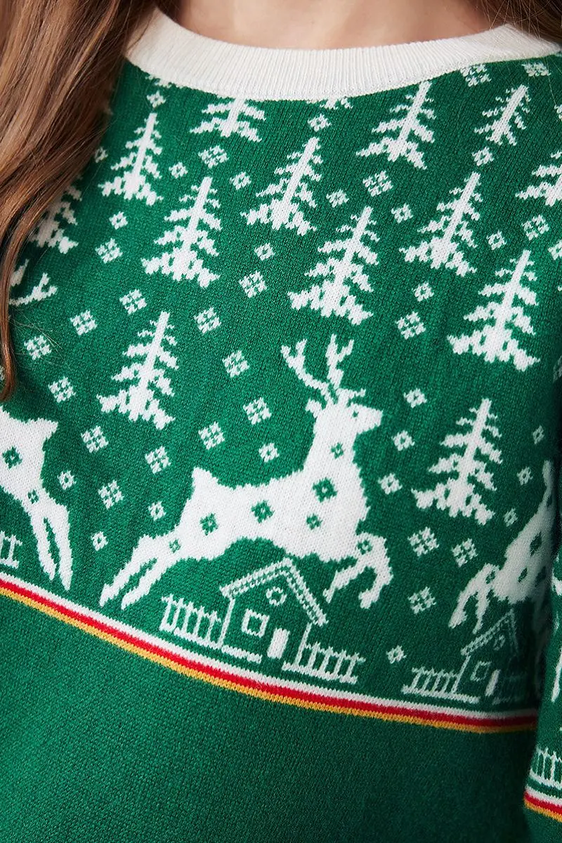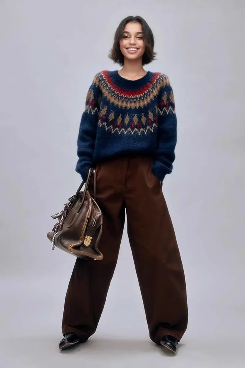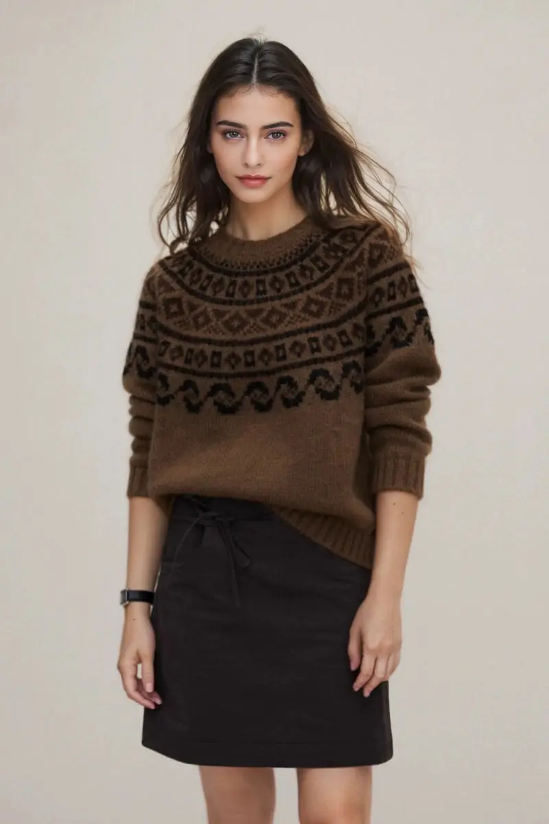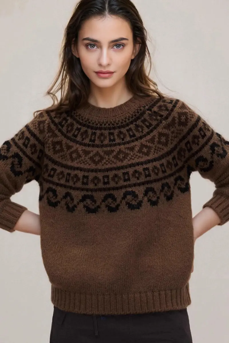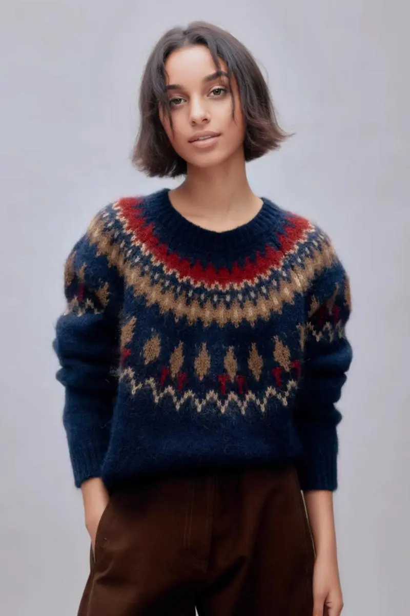 100 Wool Chunky Fair Isle Christmas Crewneck Sweater