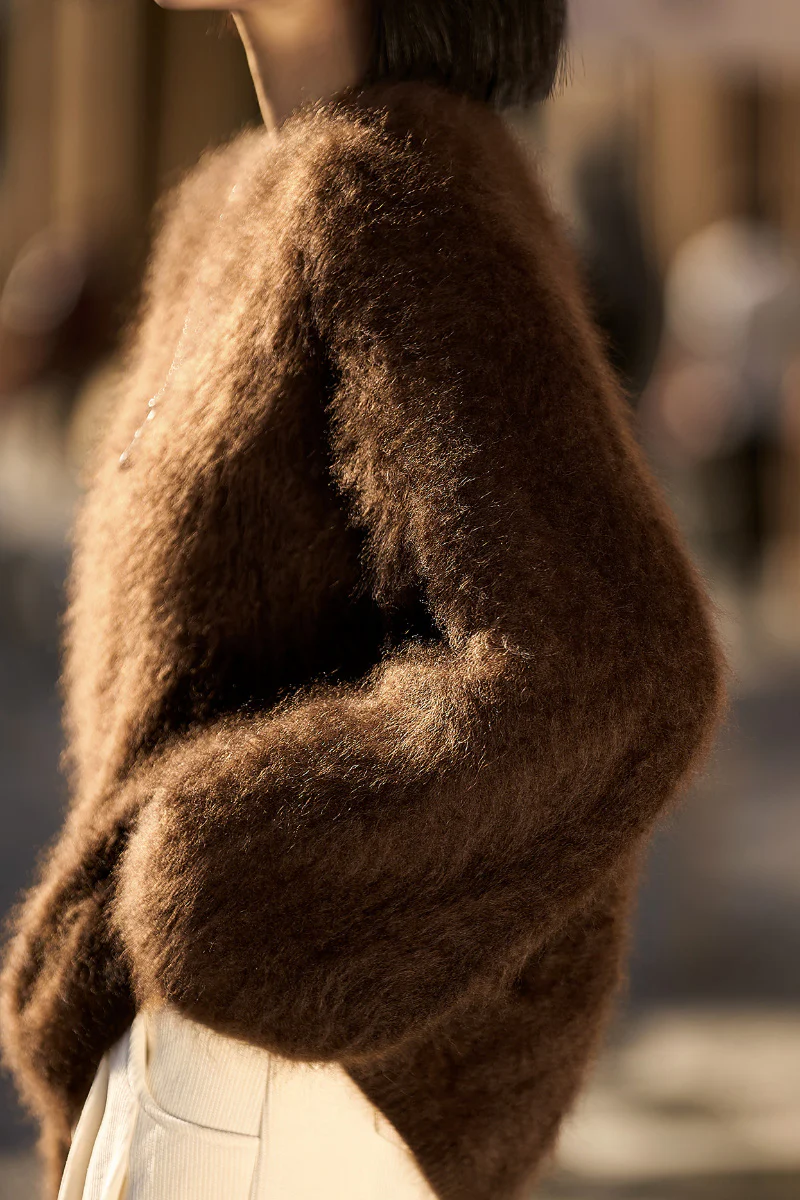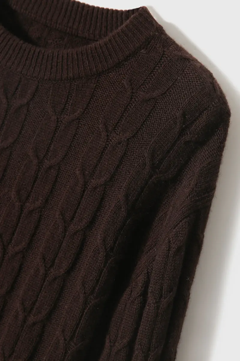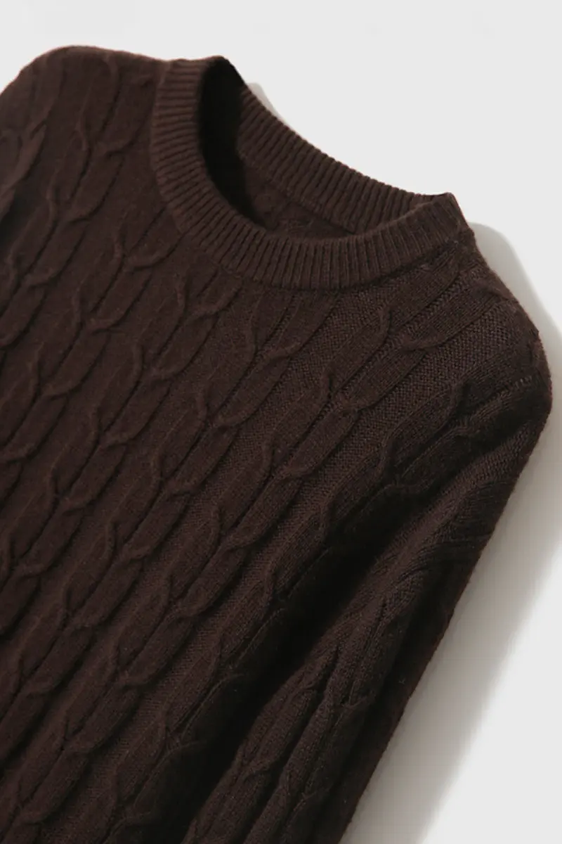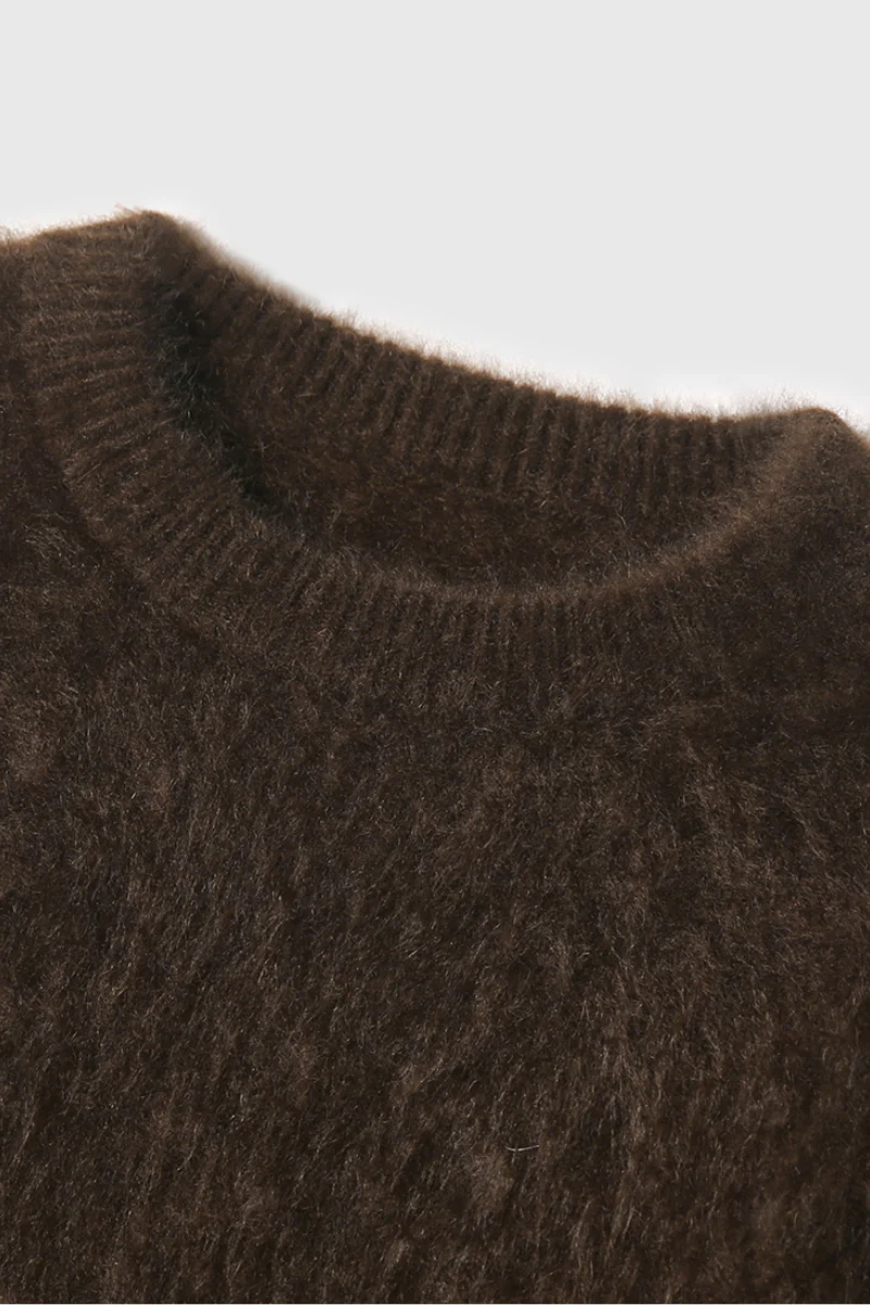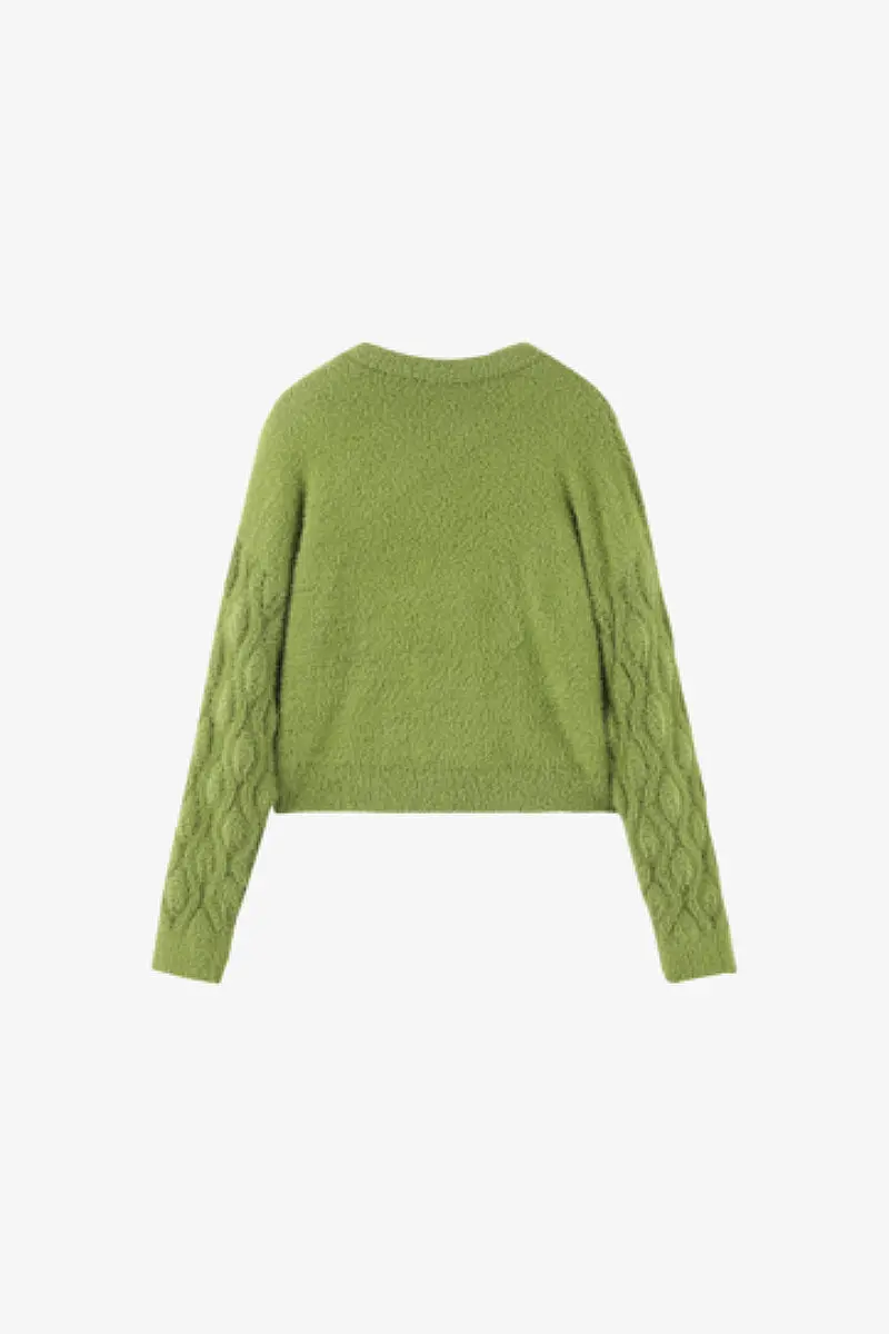 Cable Knit Brushed Alpaca Crewneck Sweater