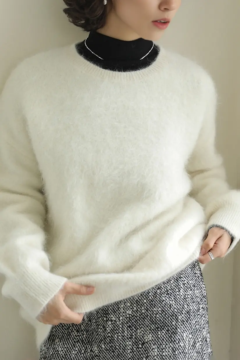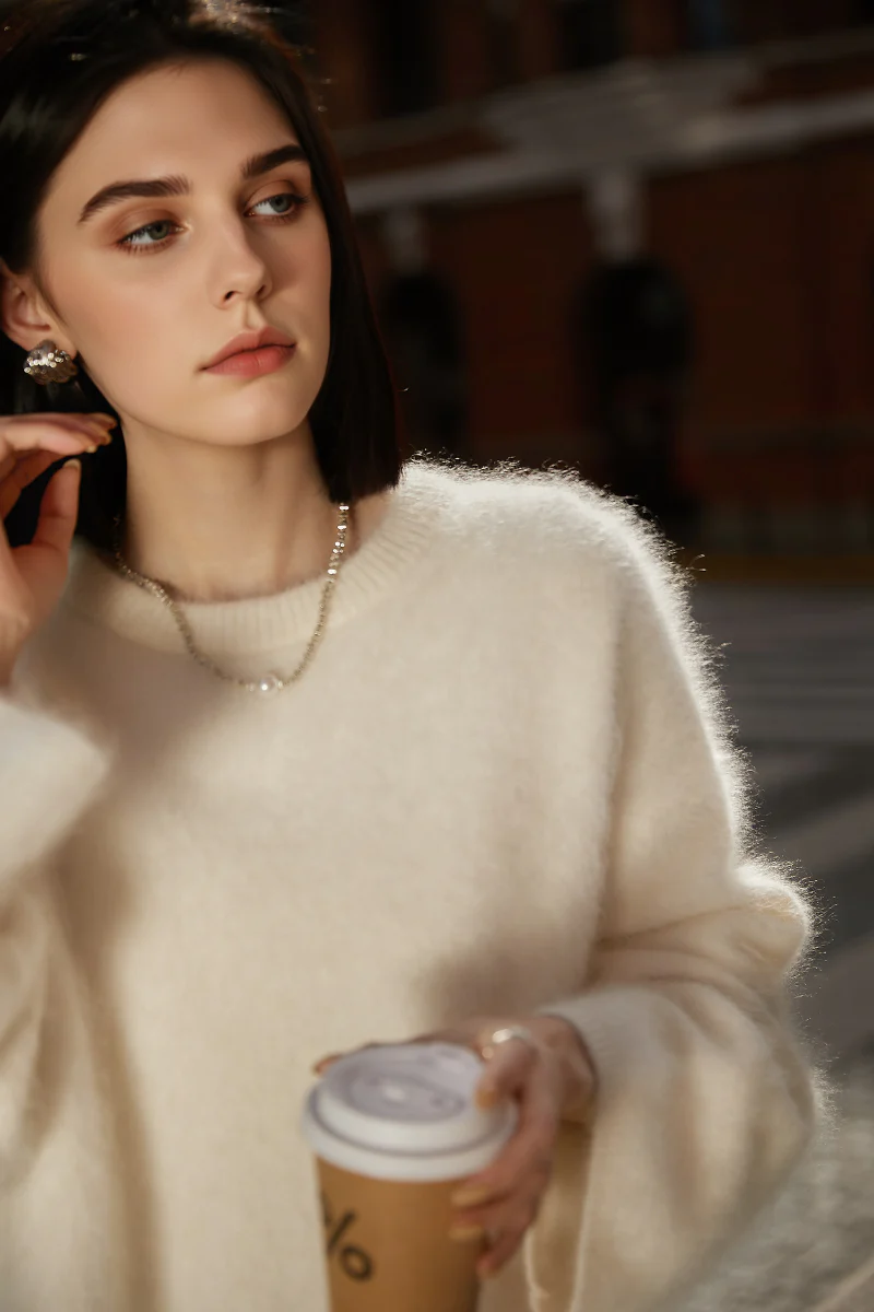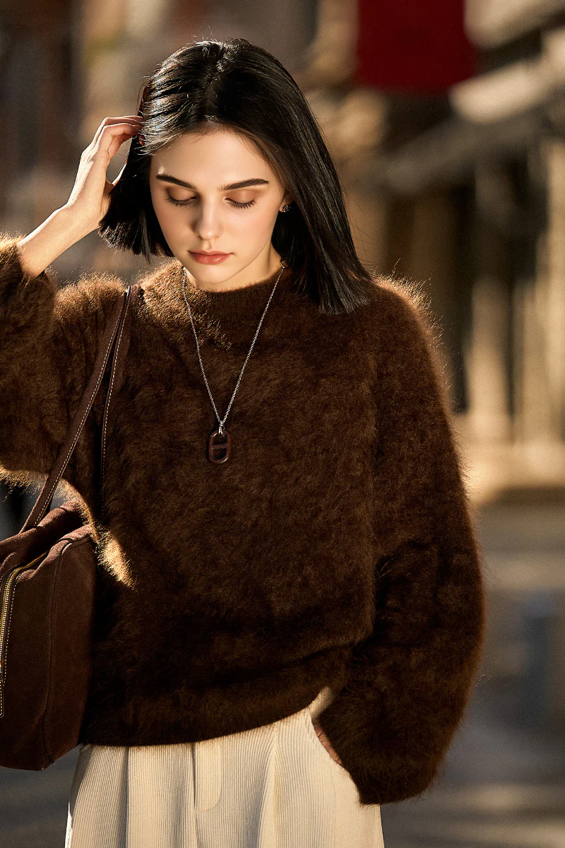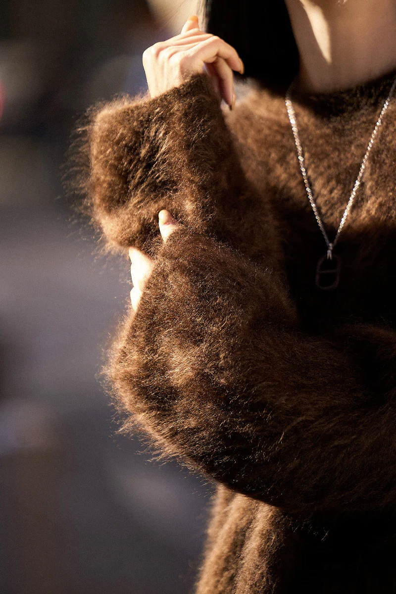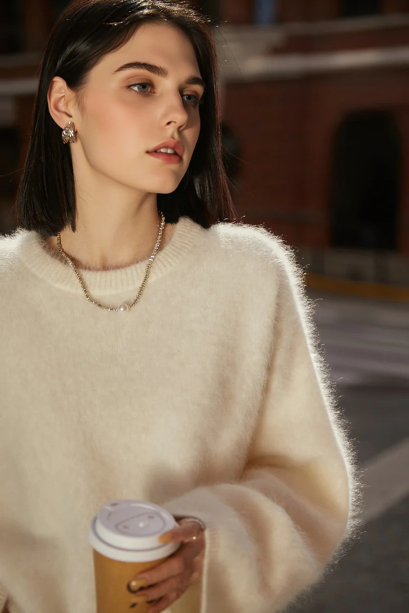 Cable Knit Brushed Alpaca Crewneck Sweater