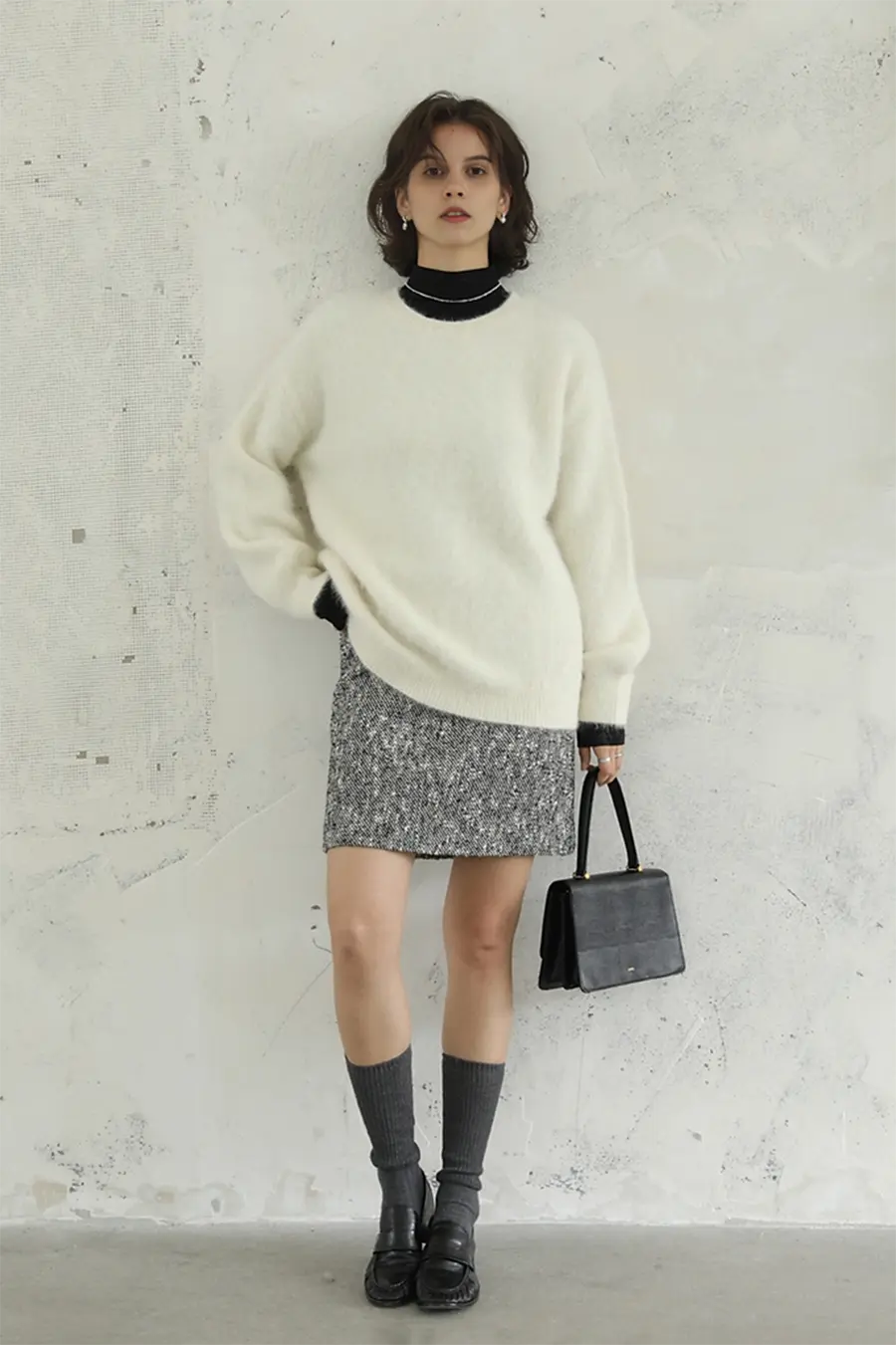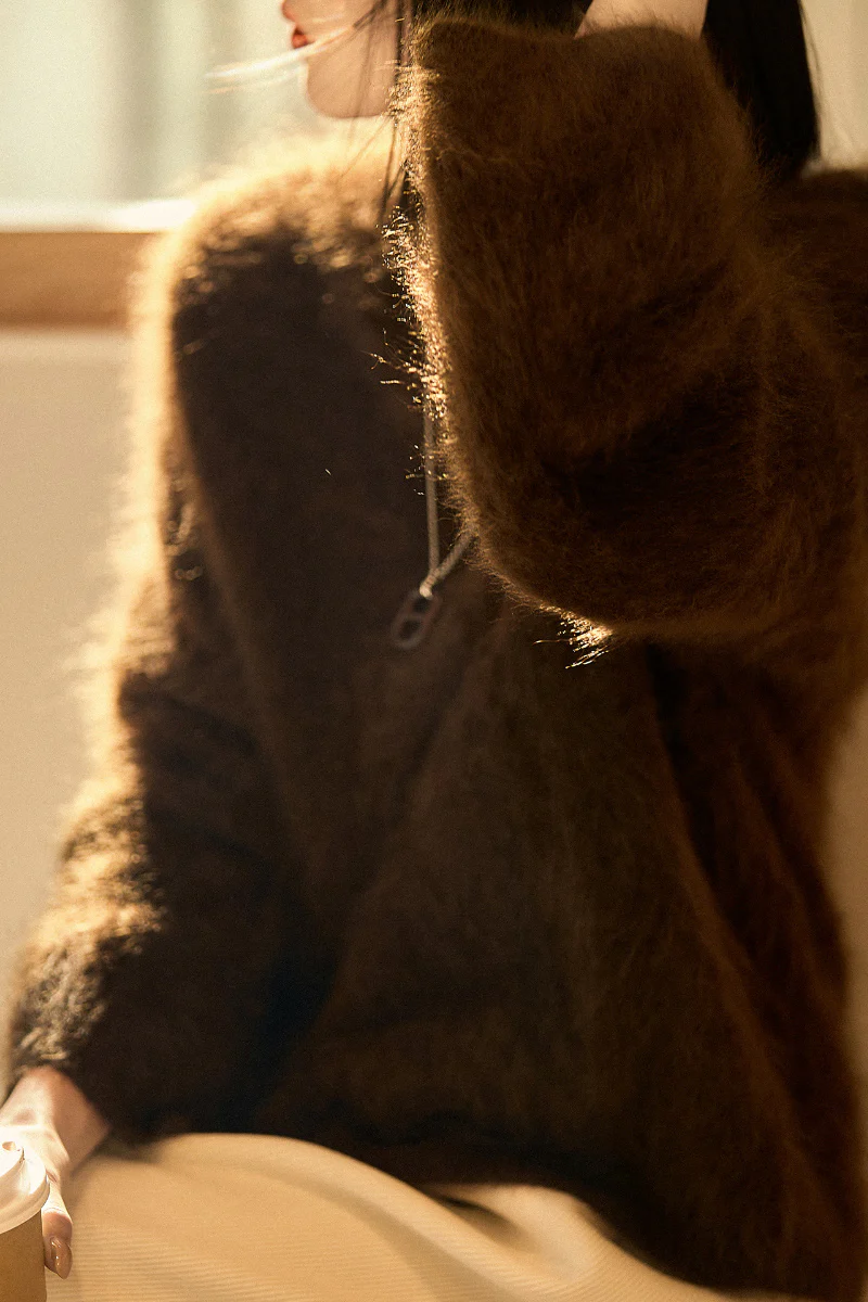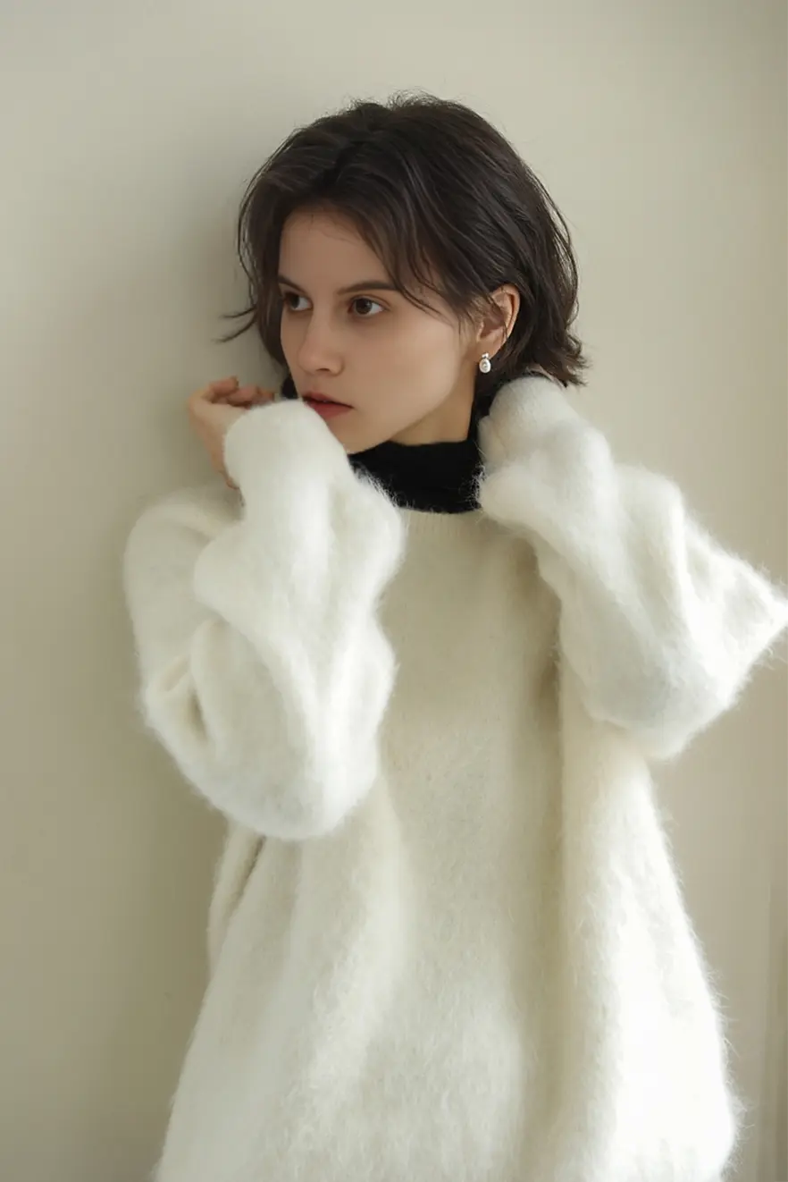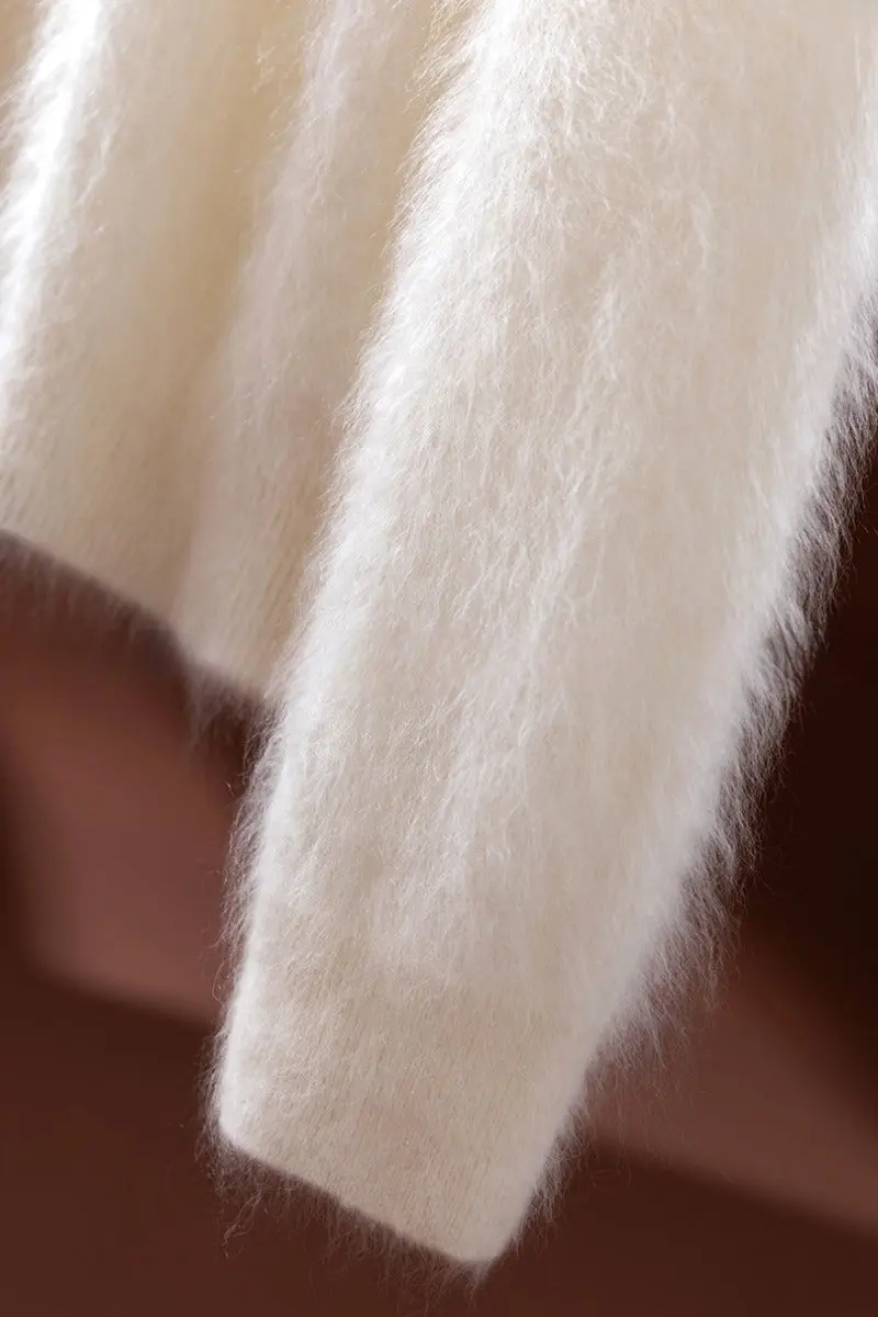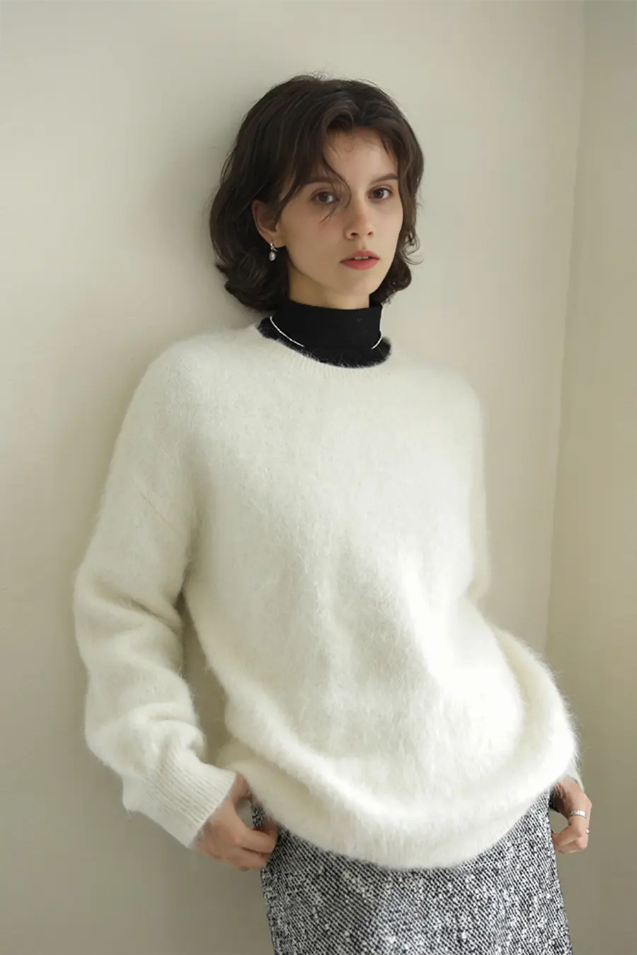 Cable Knit Brushed Alpaca Crewneck Sweater