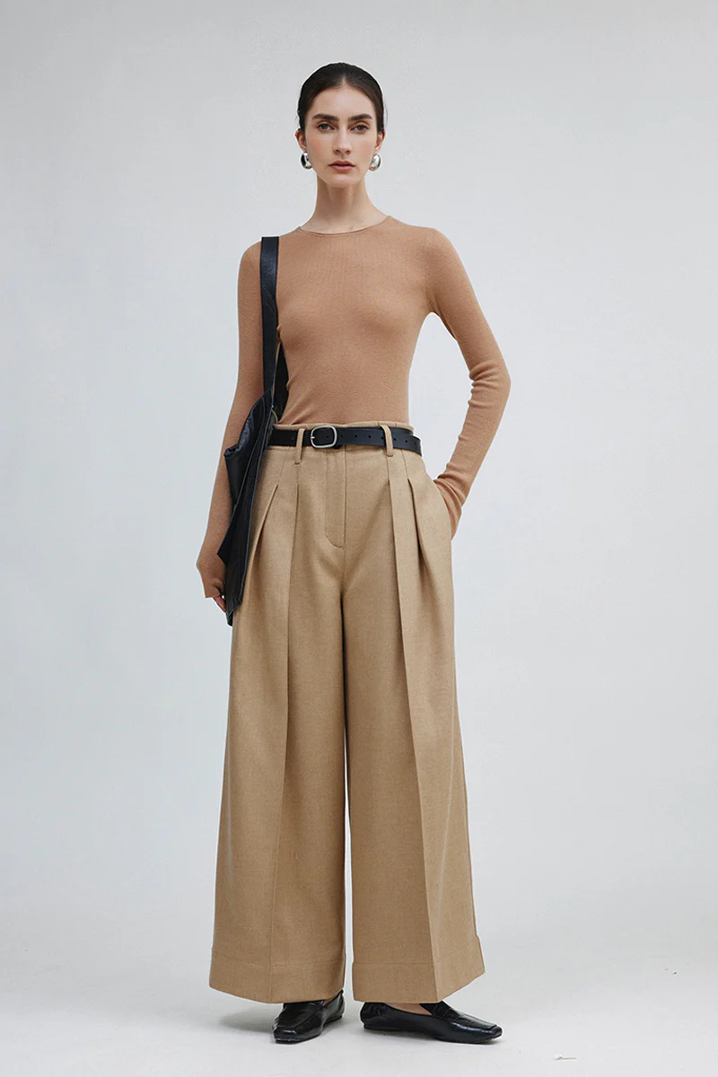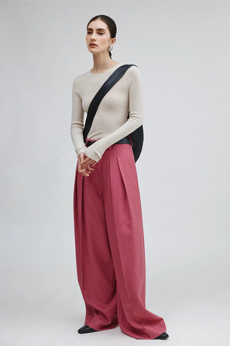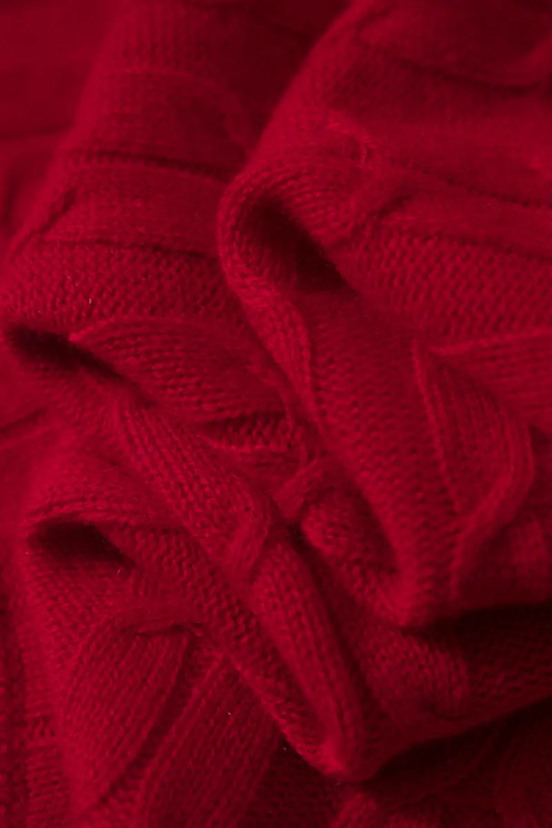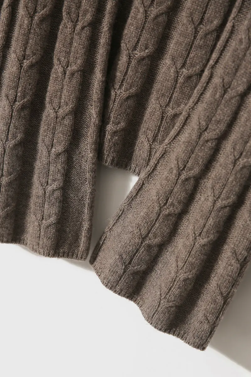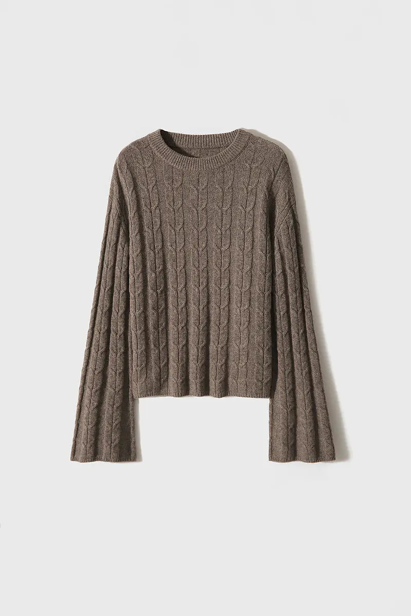 Merino Wool & Cashmere Blend Cable Knit Crewneck Sweater with Flared Sleeve