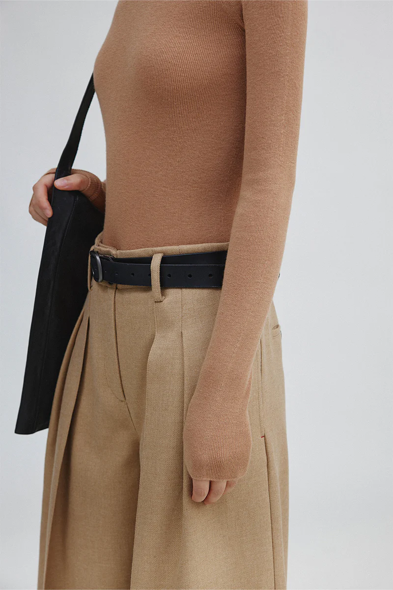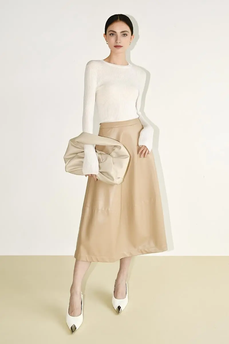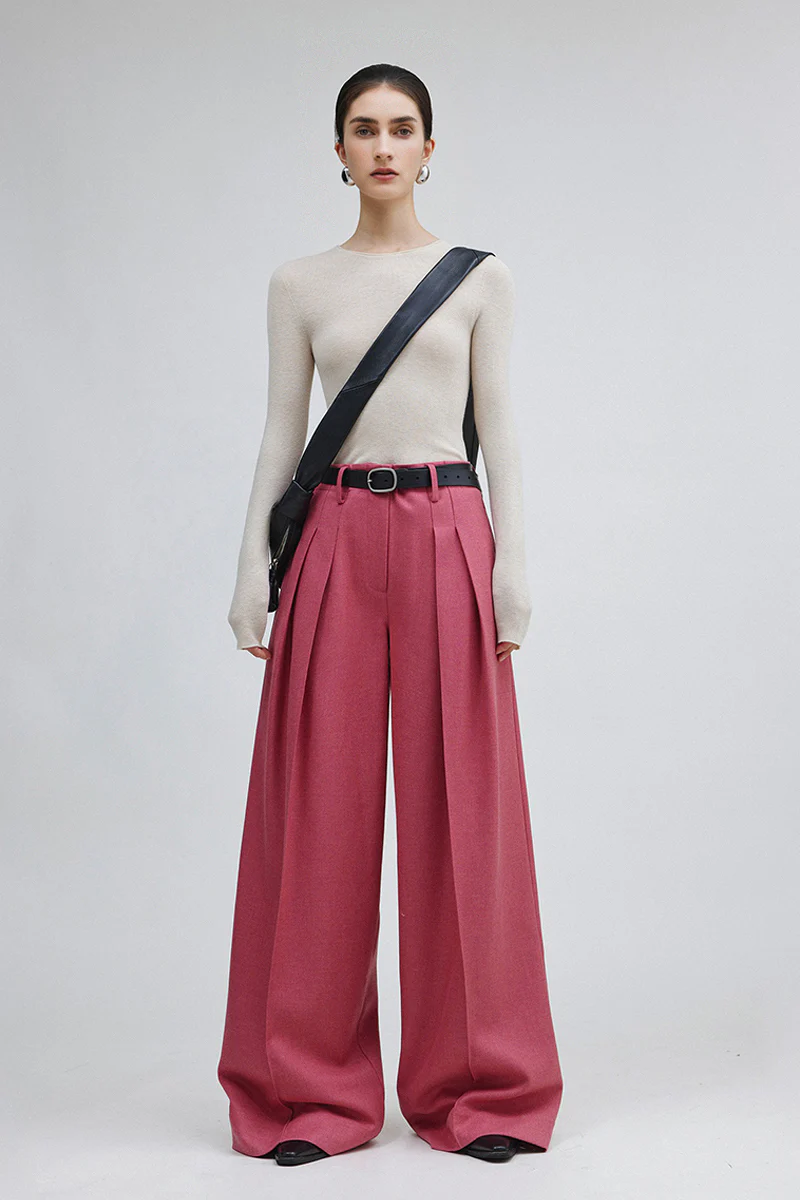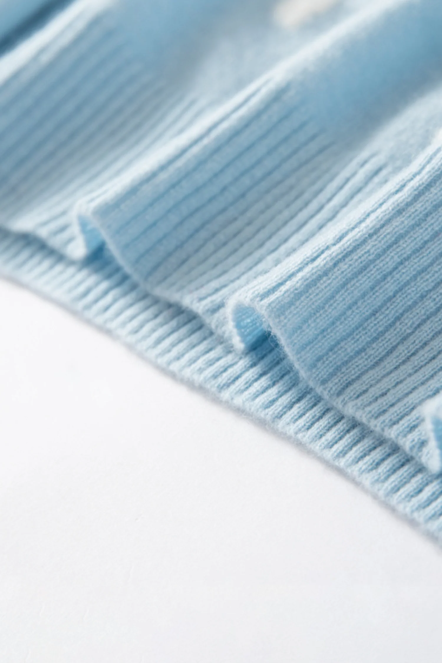 Merino Wool & Cashmere Blend Cable Knit Crewneck Sweater with Flared Sleeve