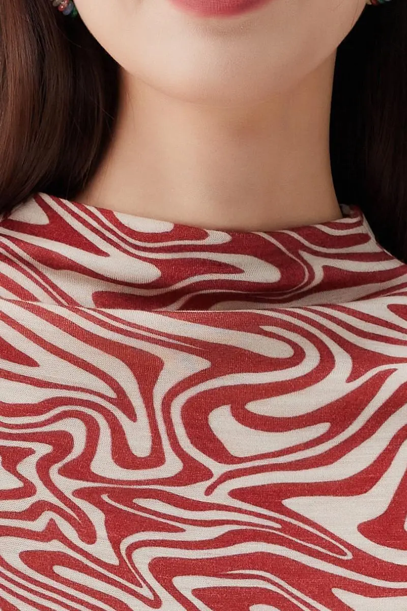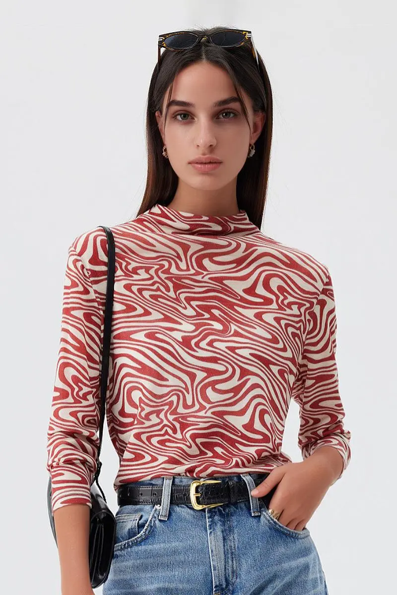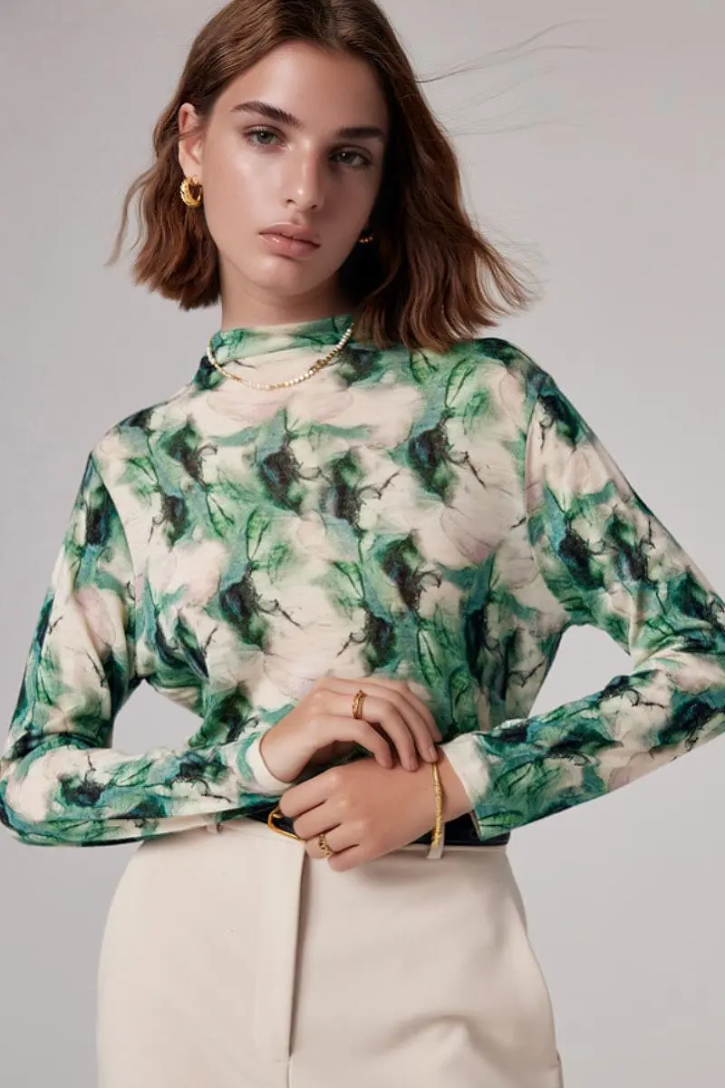 100 Merino Wool Flower Printed Mock Neck Base Layer