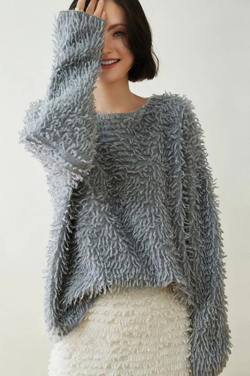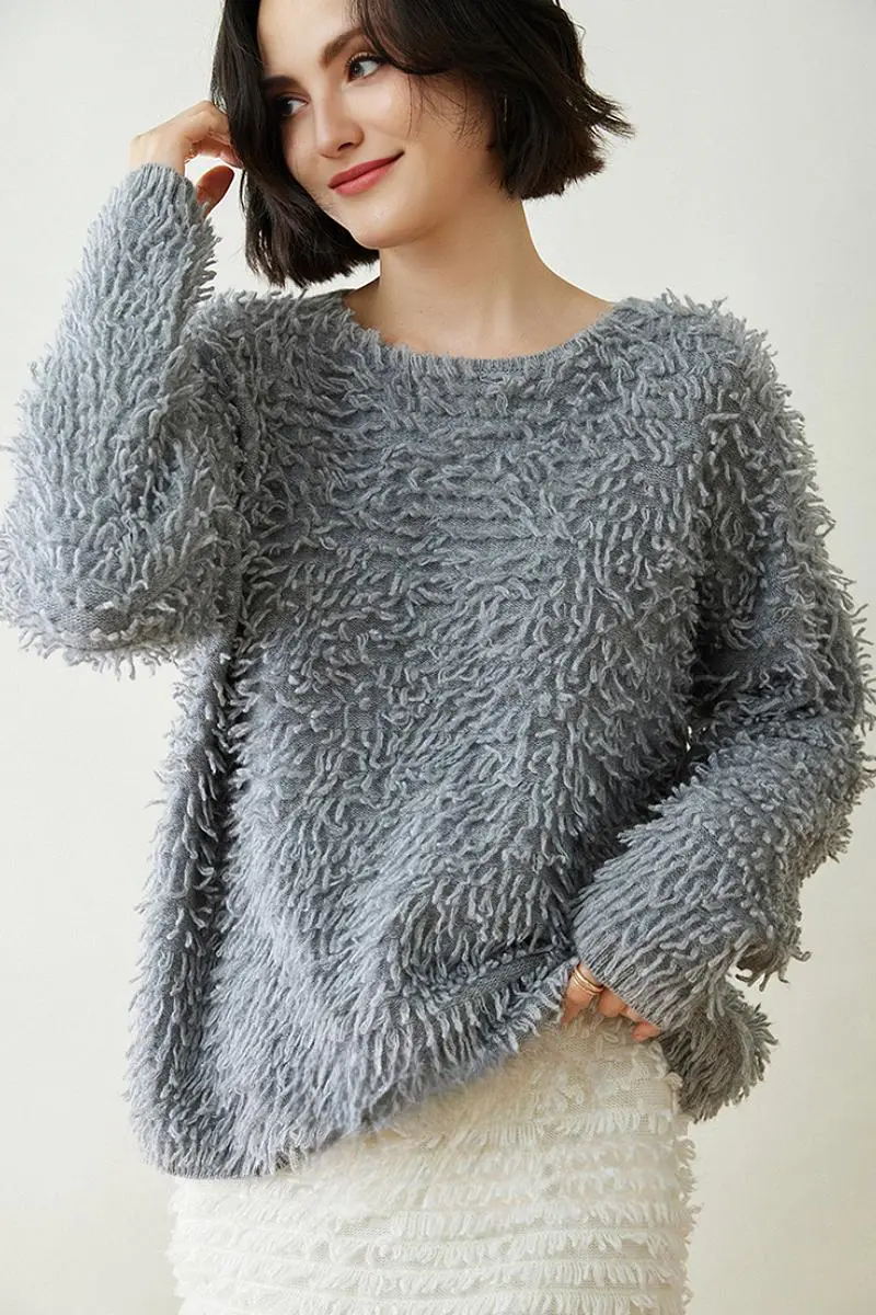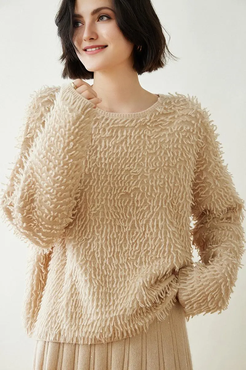 100 Cashmere Chunky Loop-Knit Crewneck Sweater