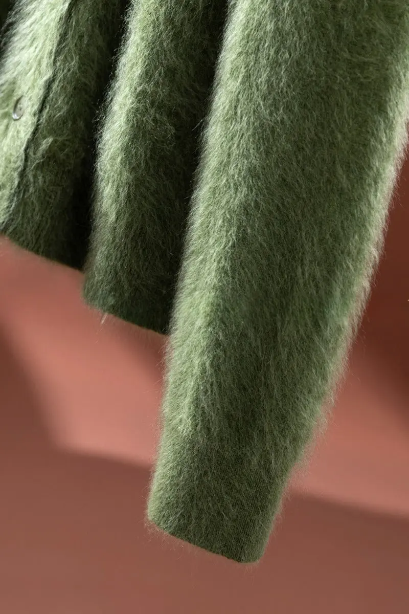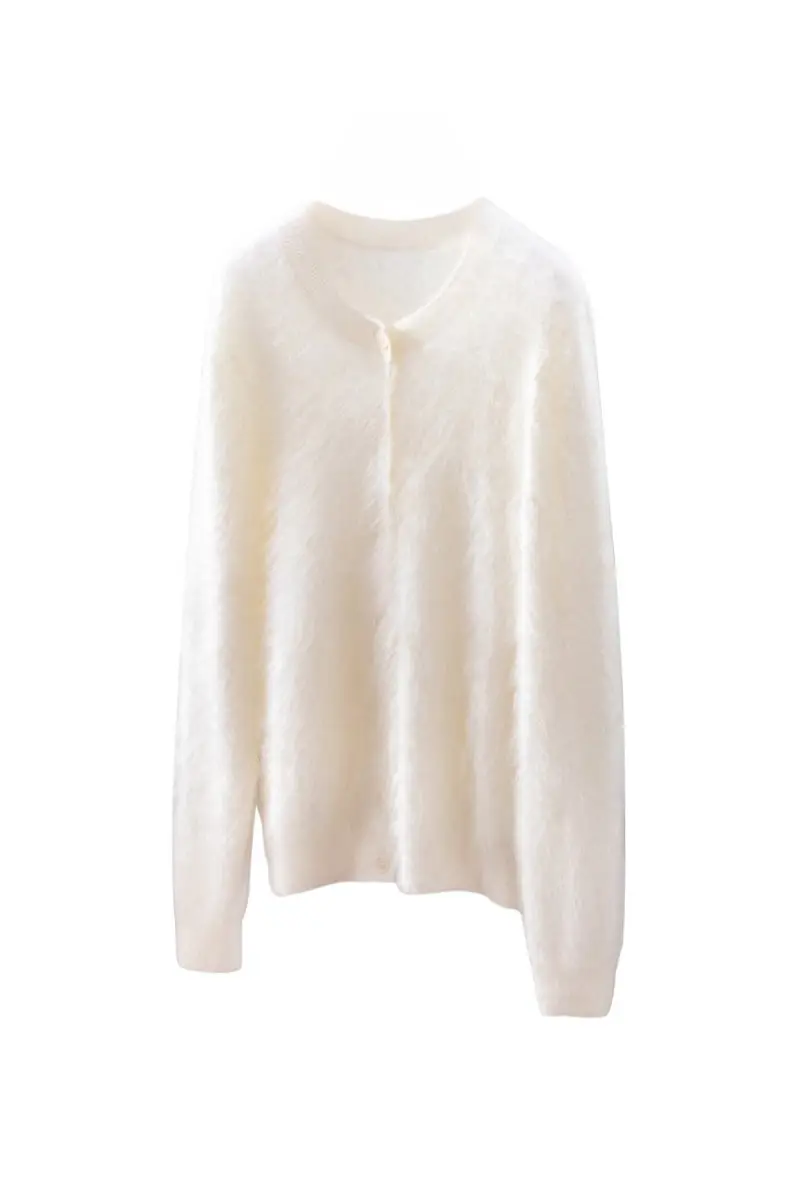Classic Brushed Cashmere Crewneck Button Front Cardigan