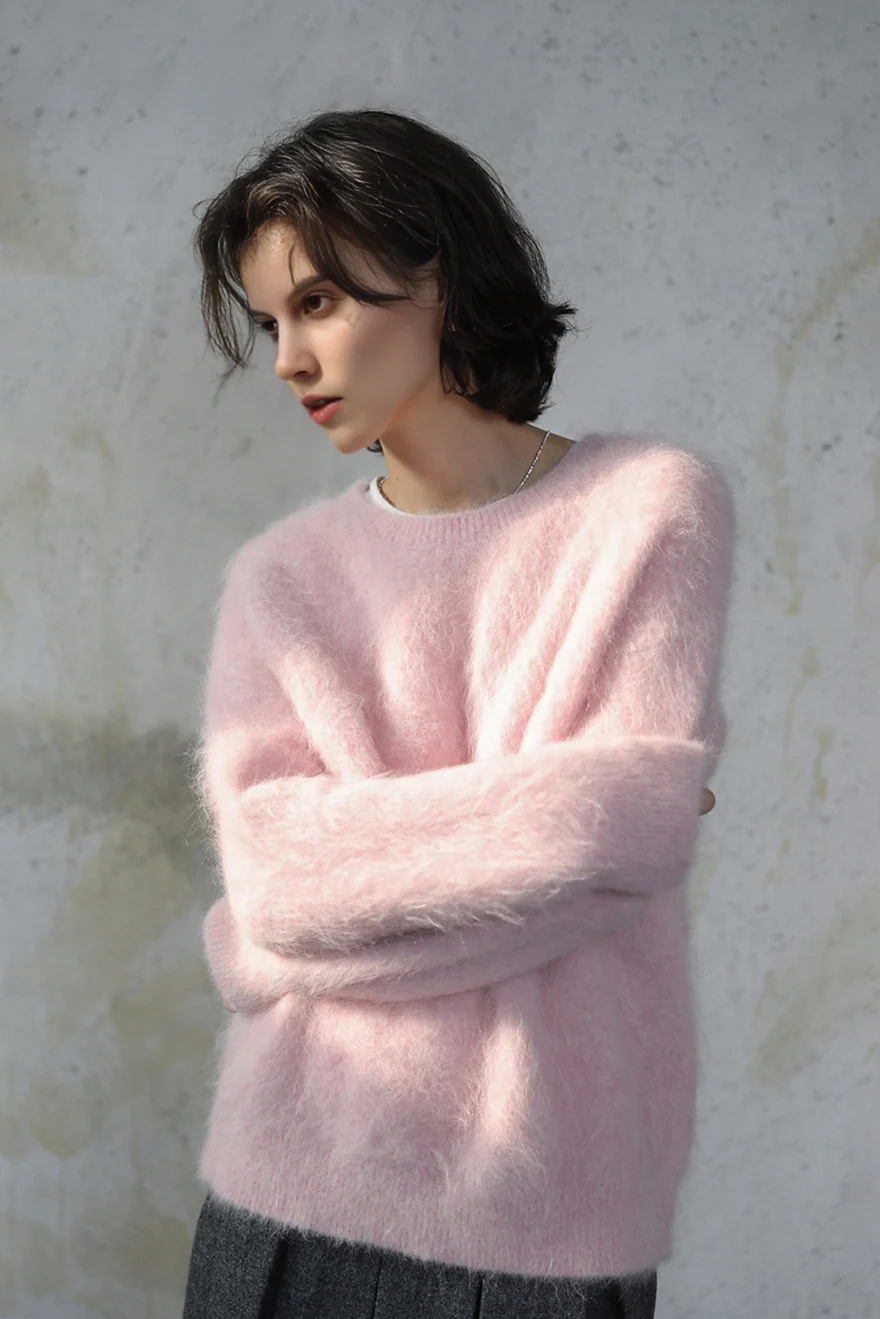 Italian-Made Brushed Cashmere Crewneck Sweater