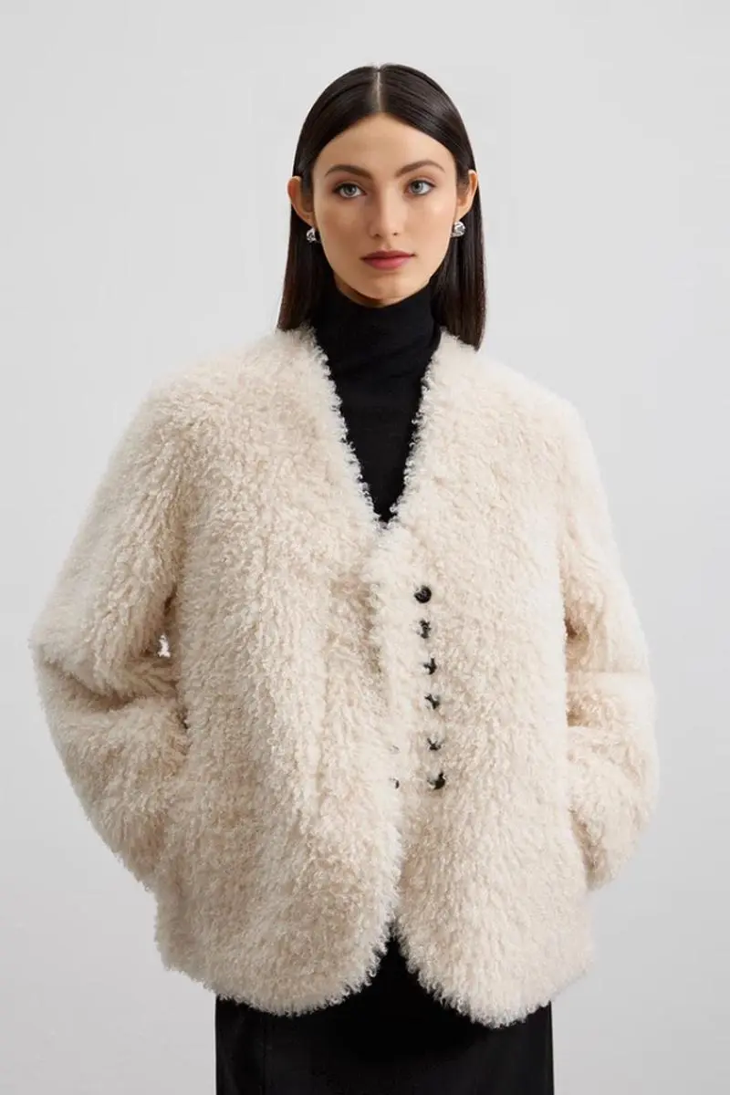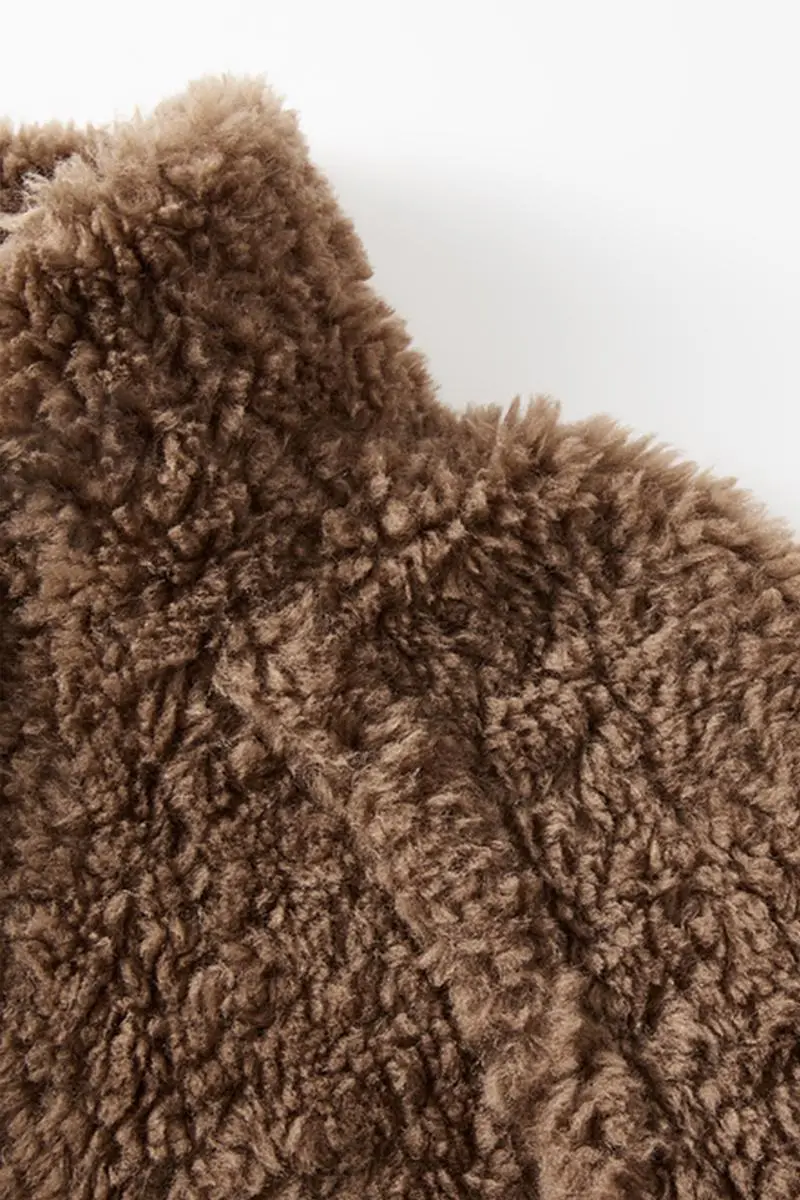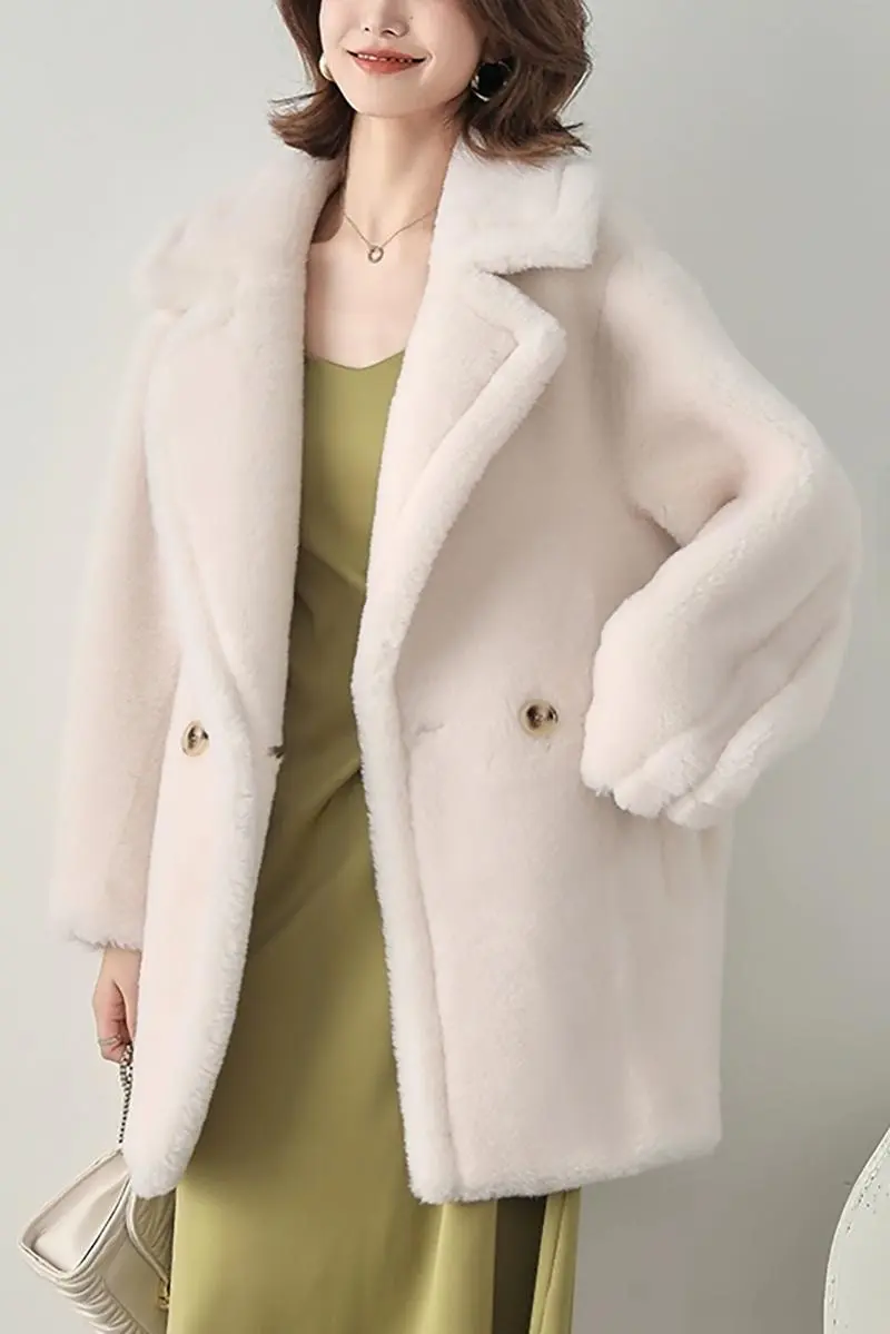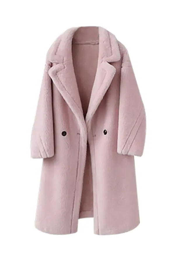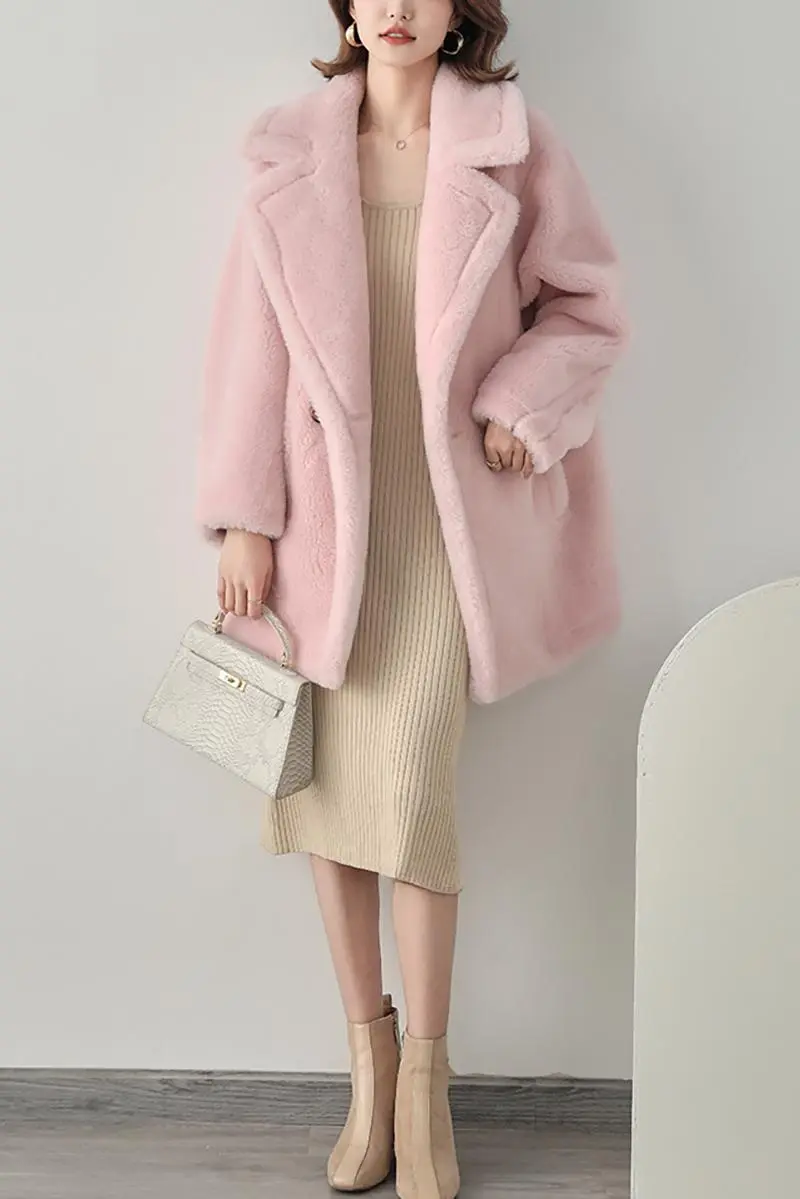 Cozy Teddy-style Shearling Coat With Lapel Collar