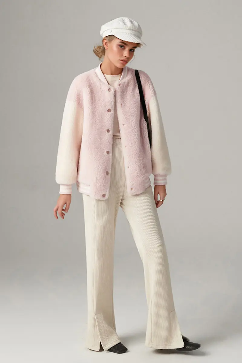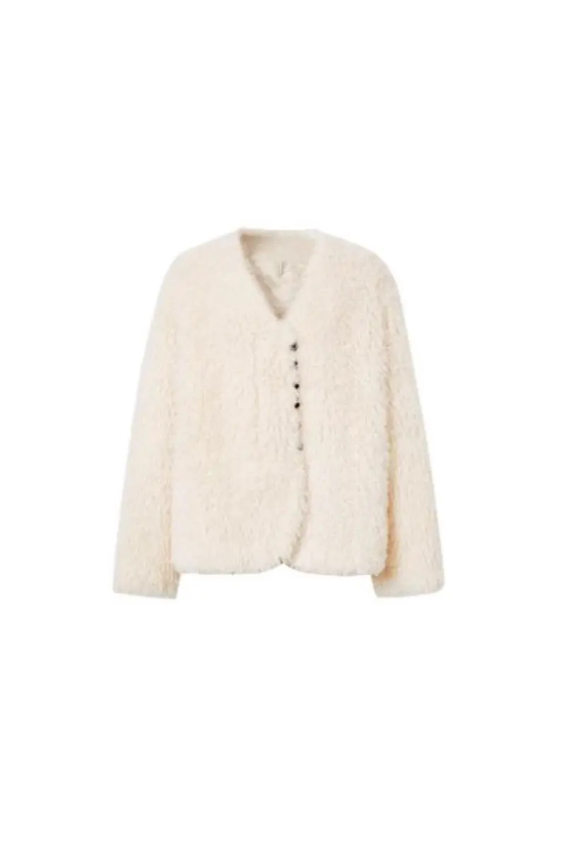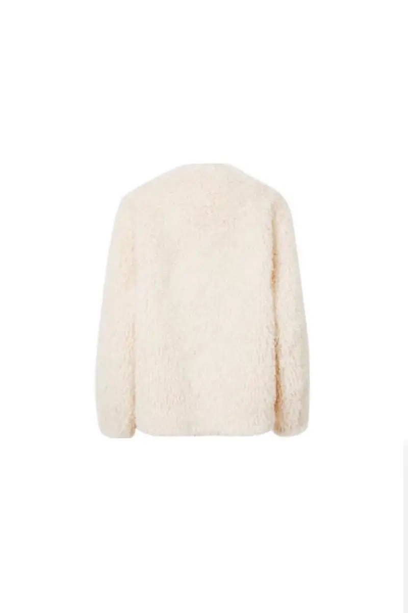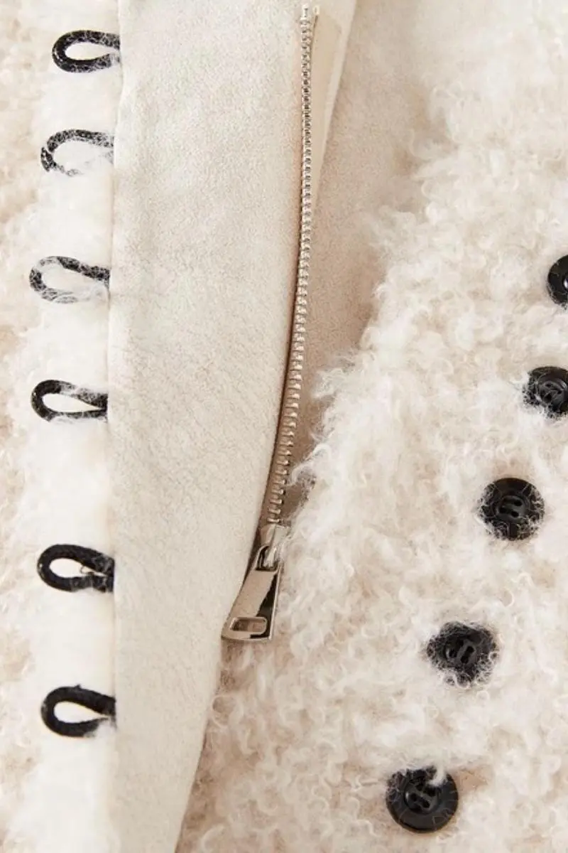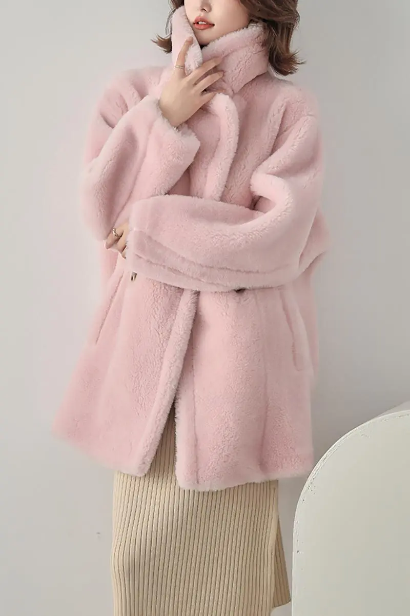 Cozy Teddy-style Shearling Coat With Lapel Collar