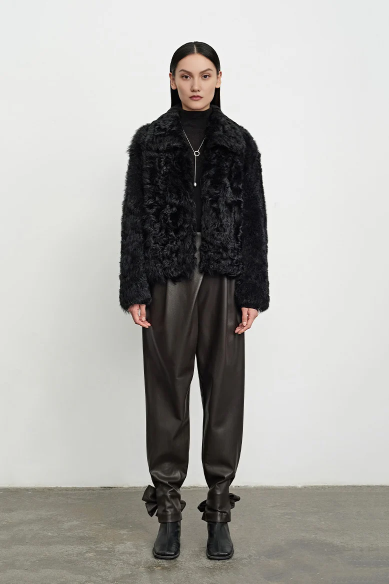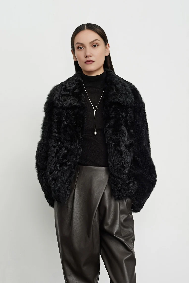 Cropped Toscana Shearling Sheepskin Jacket With Oversized Collar
