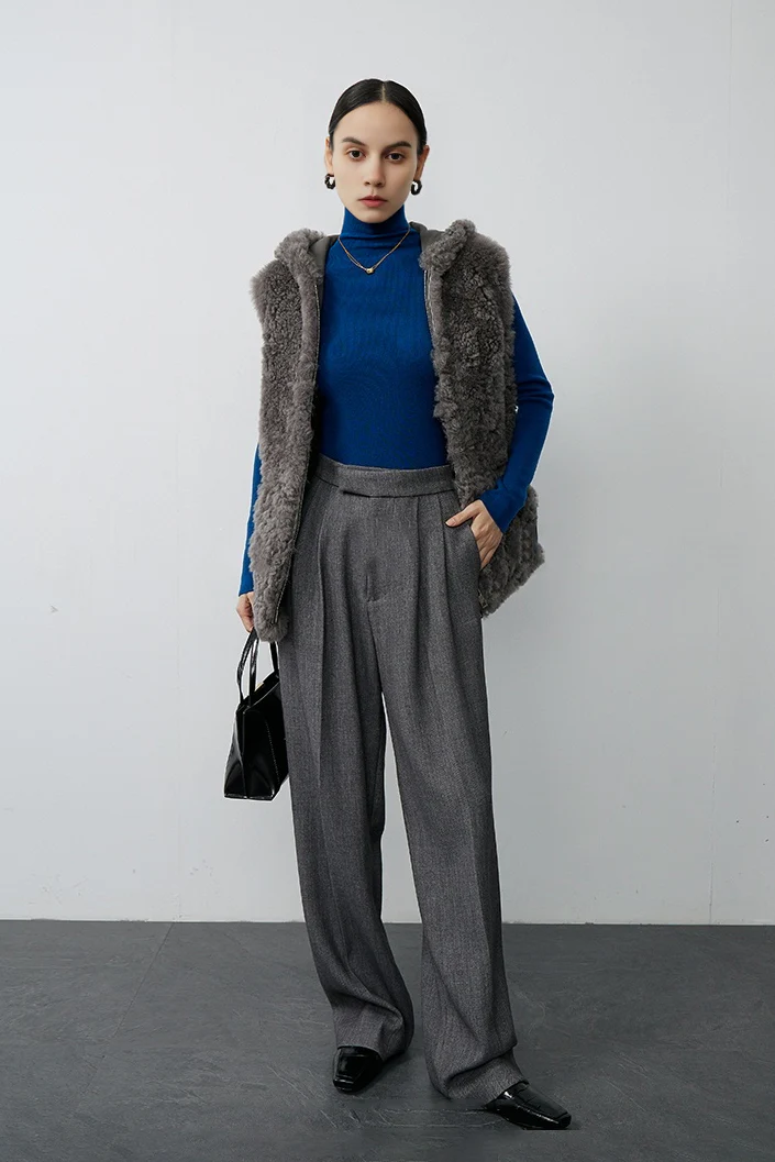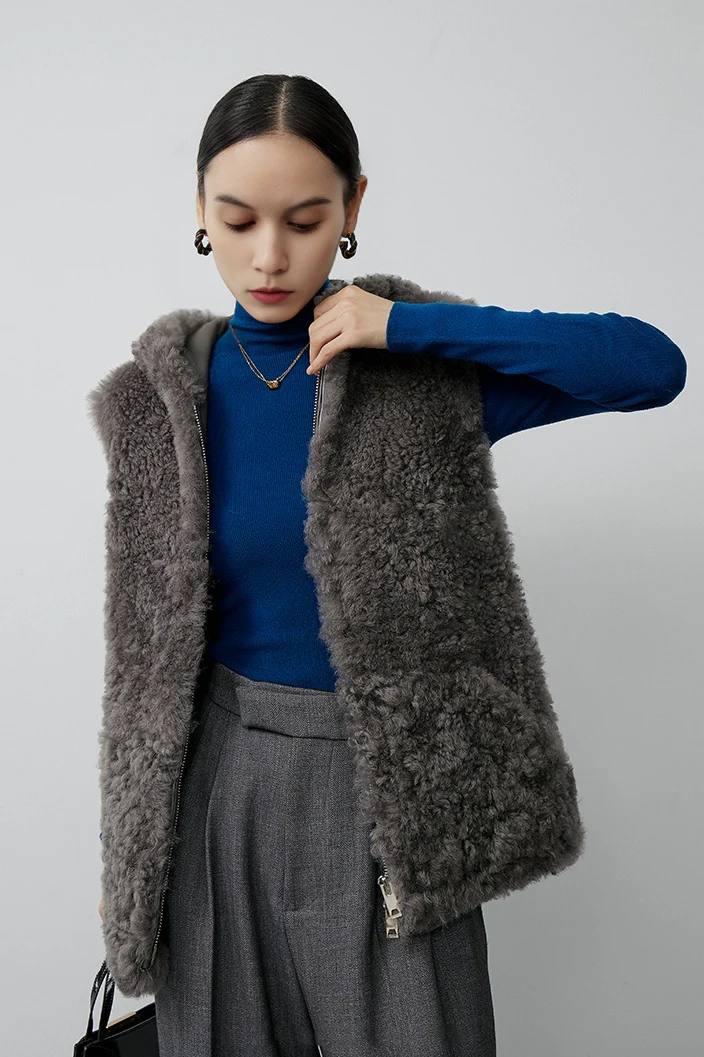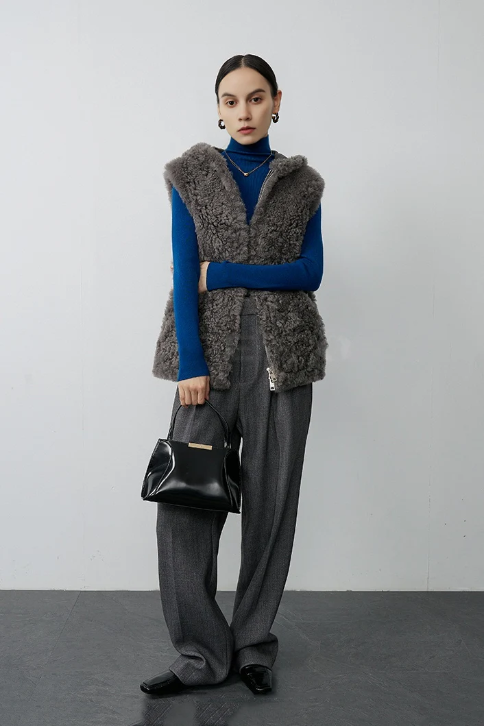 Mid-length Collarless V Neck Toscana Shearling Coat