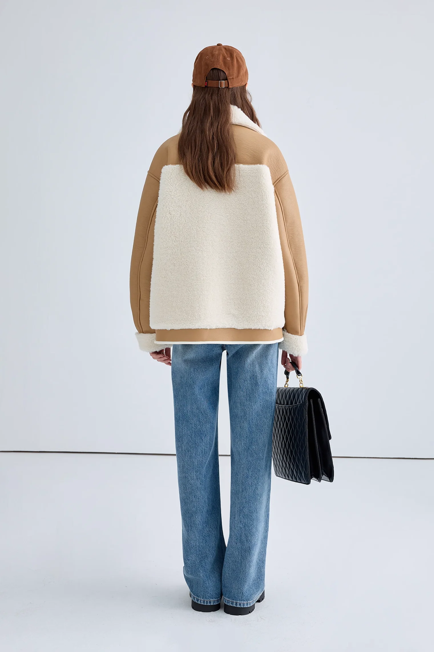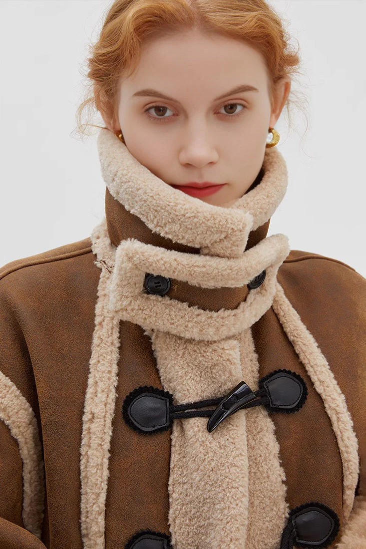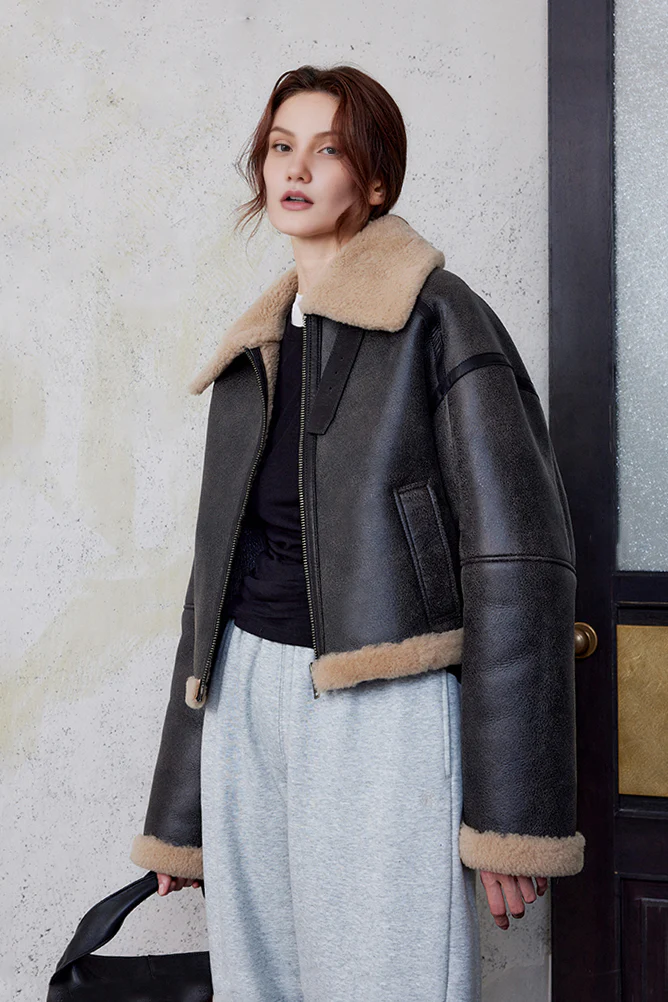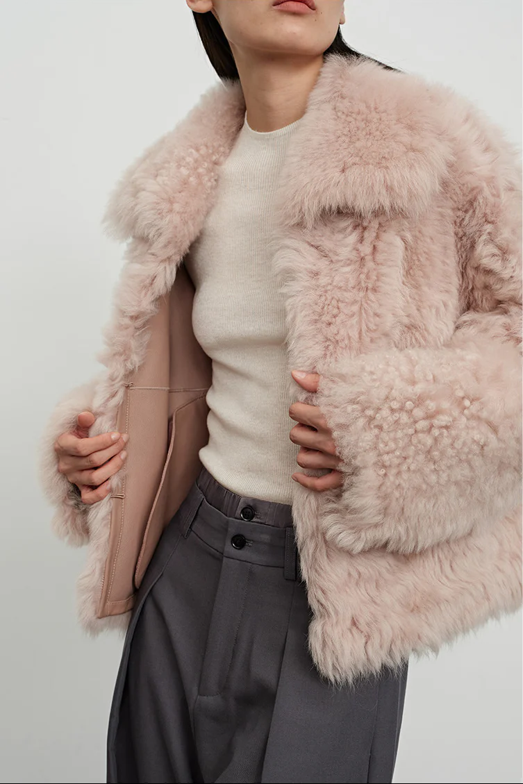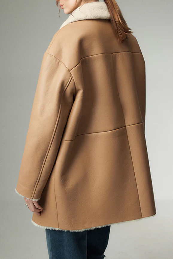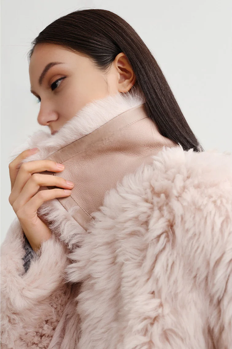 Crewneck Cropped Lambskin Lined Toscana Shearling Coat