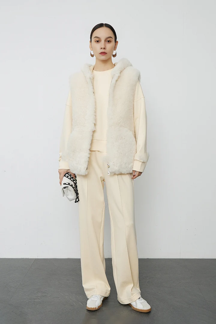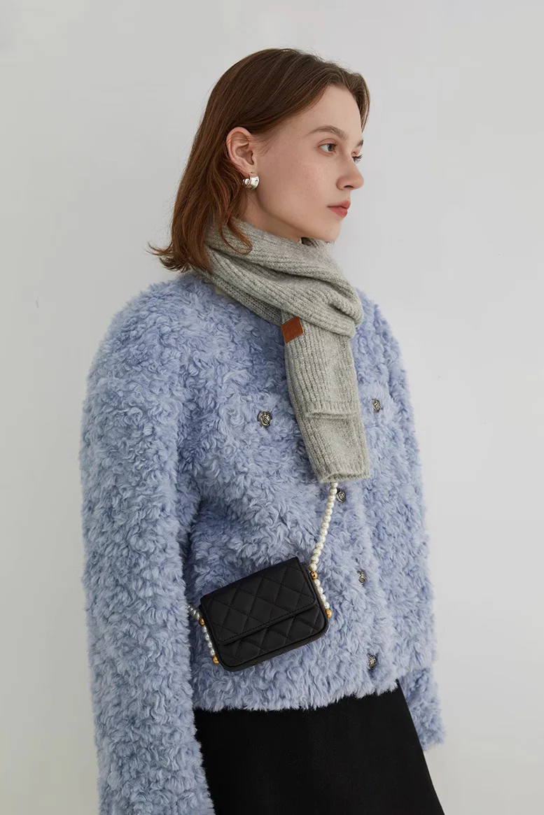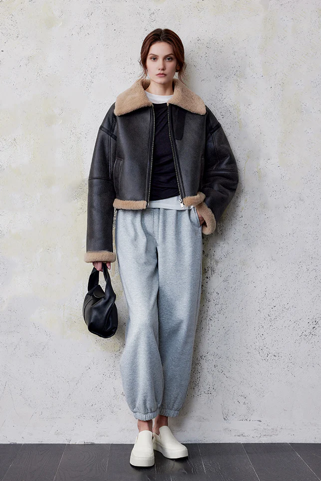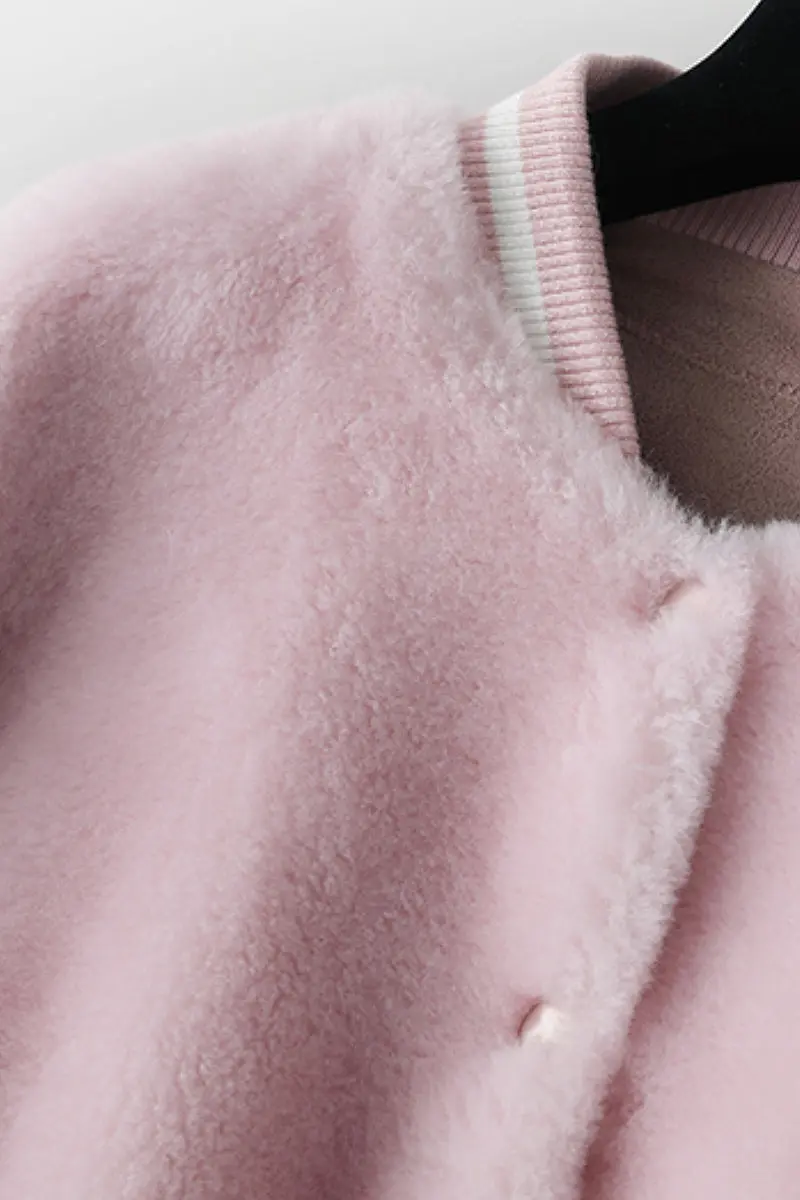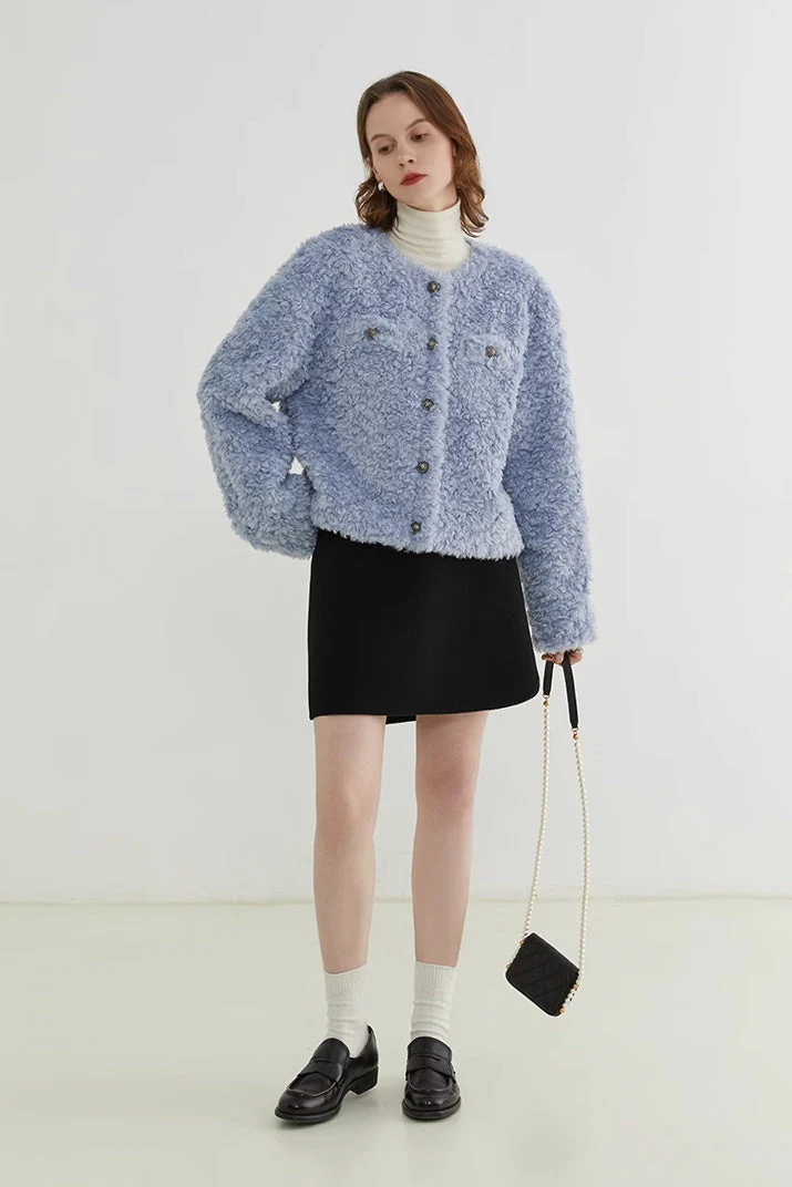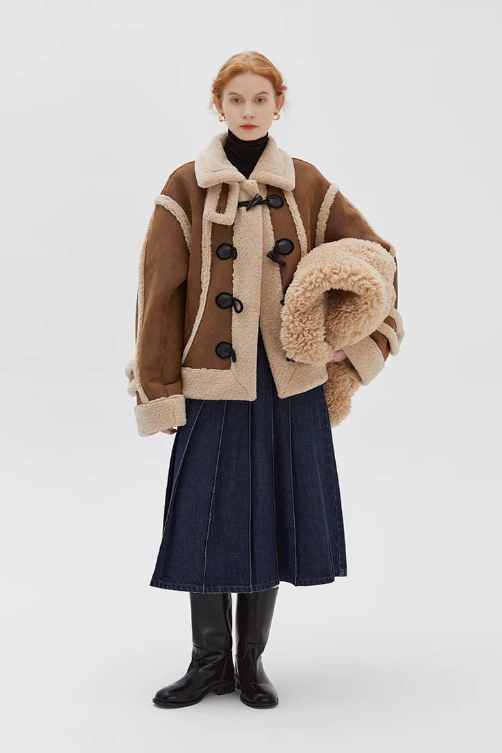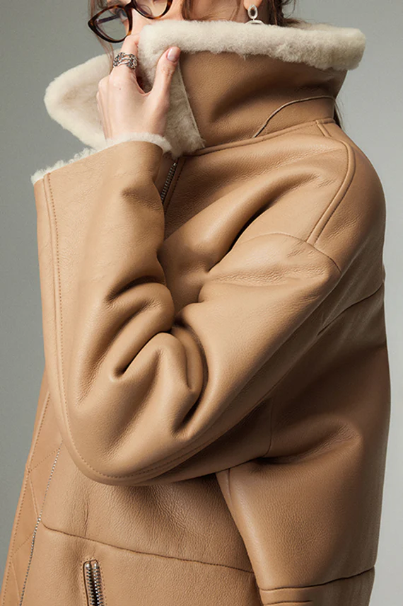 Crewneck Cropped Lambskin Lined Toscana Shearling Coat