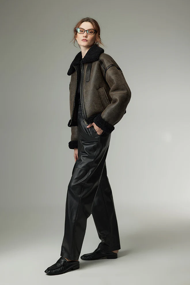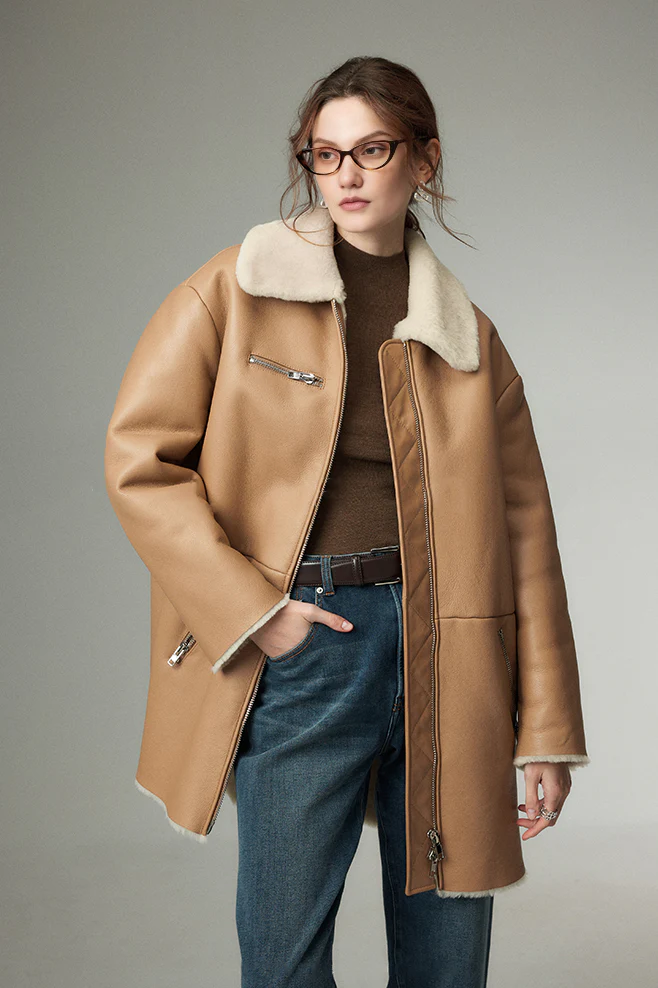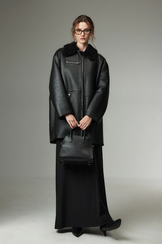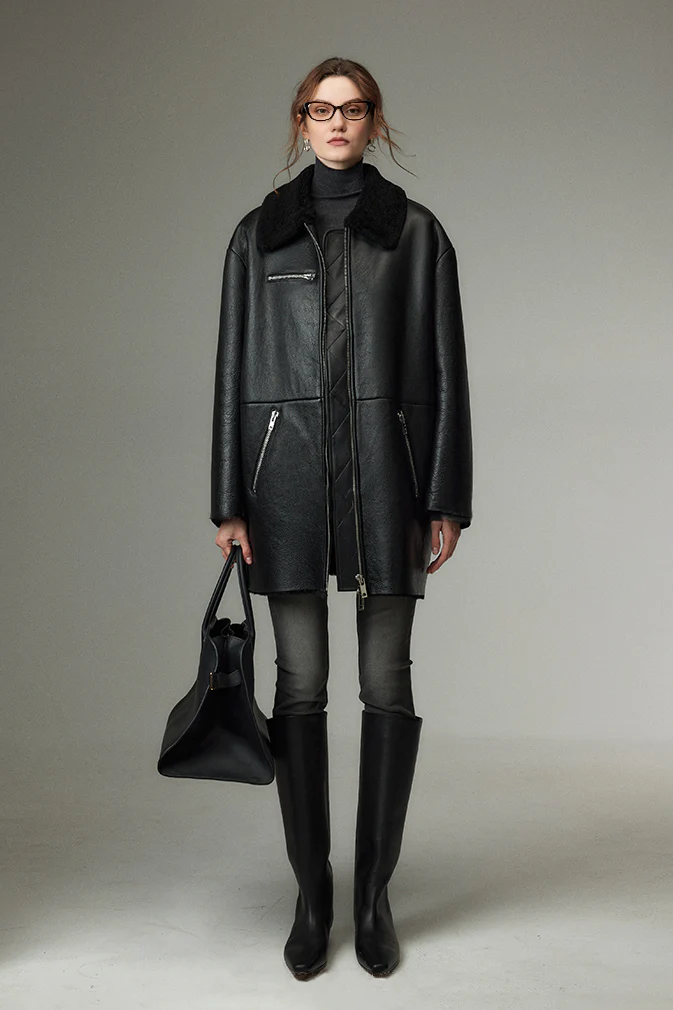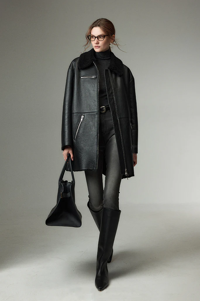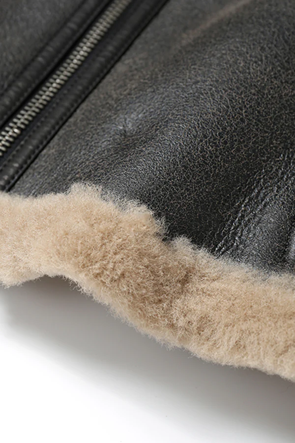 Vintage Mid-length Merino Shearling Lined Leather Jacket