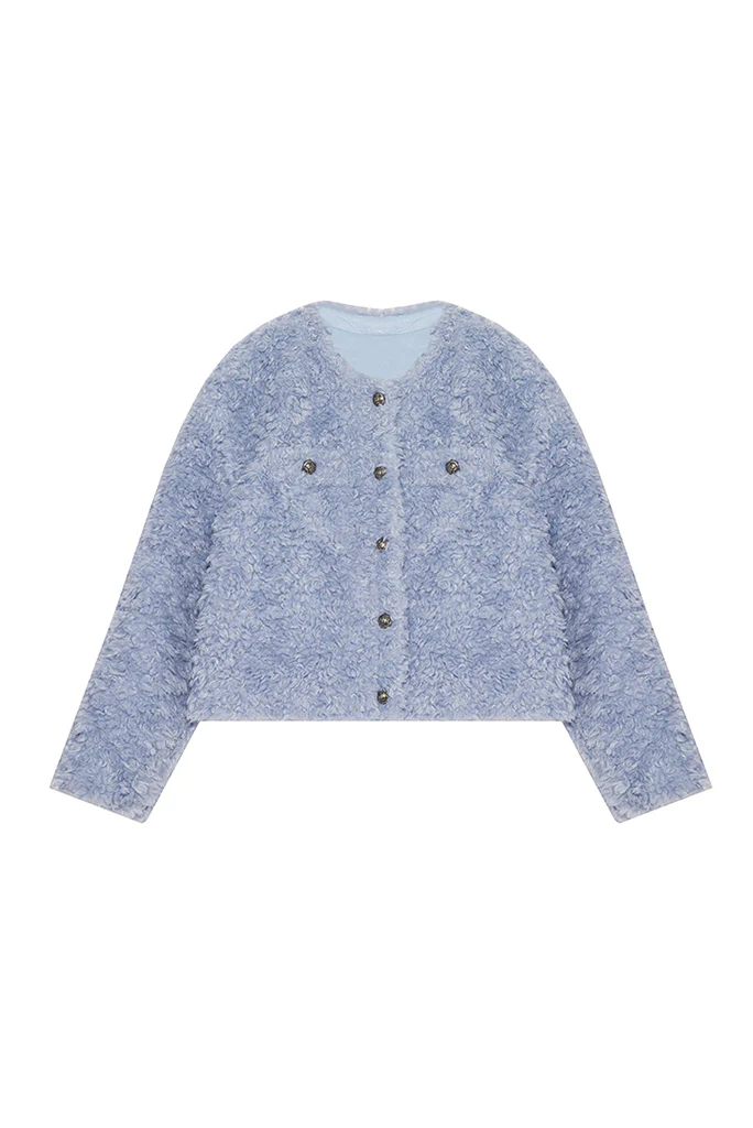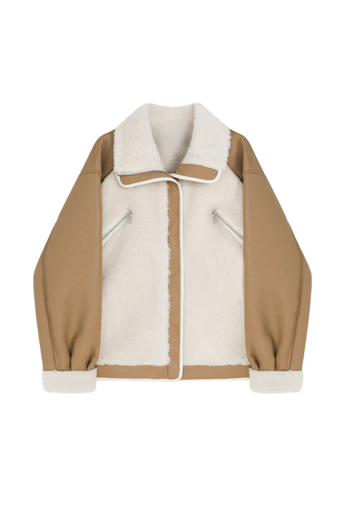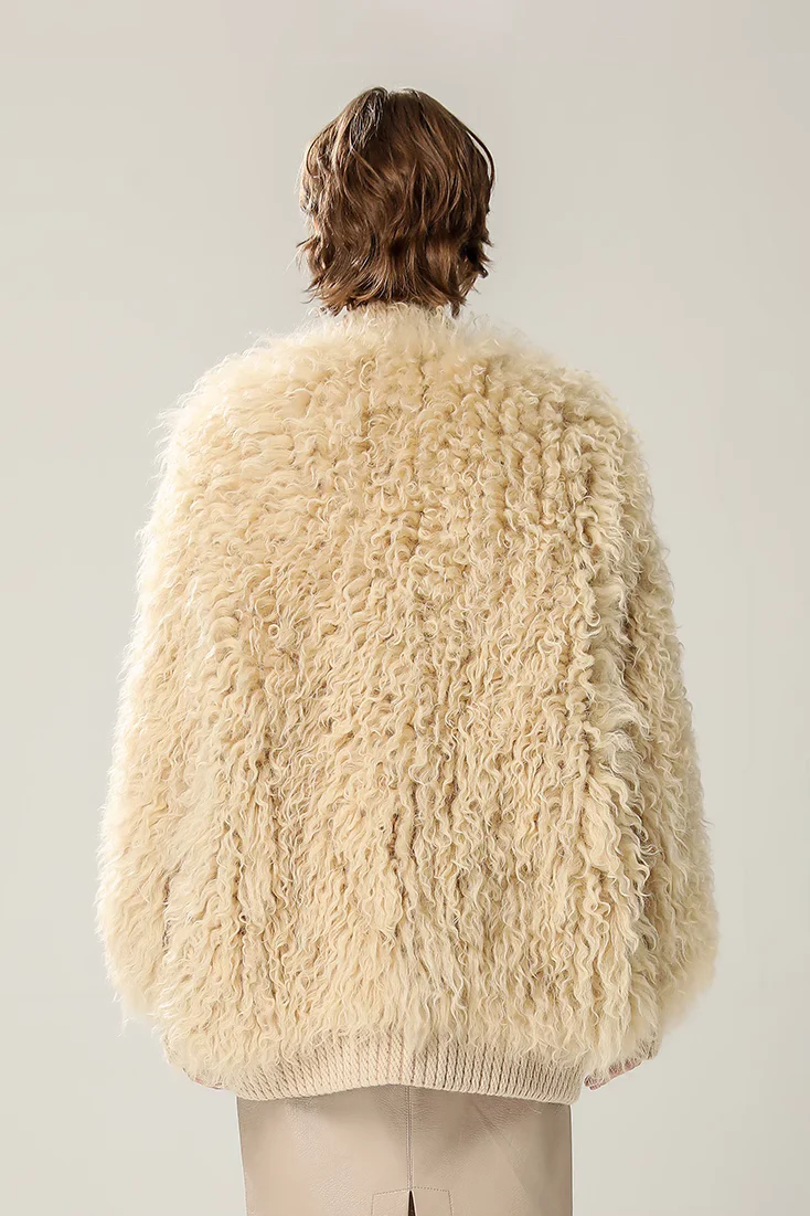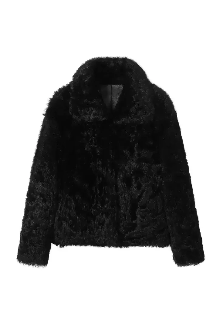Cropped Faux Toscana Shearling Jacket with Oversized Collar