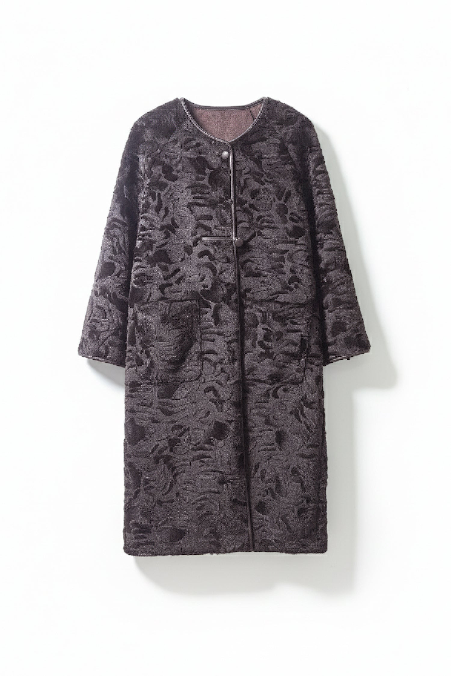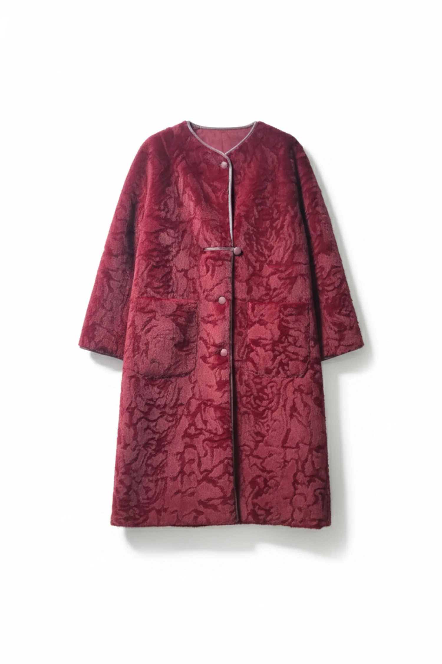 Collarless Mid-length Lambskin Lined Toscana Shearling Coat