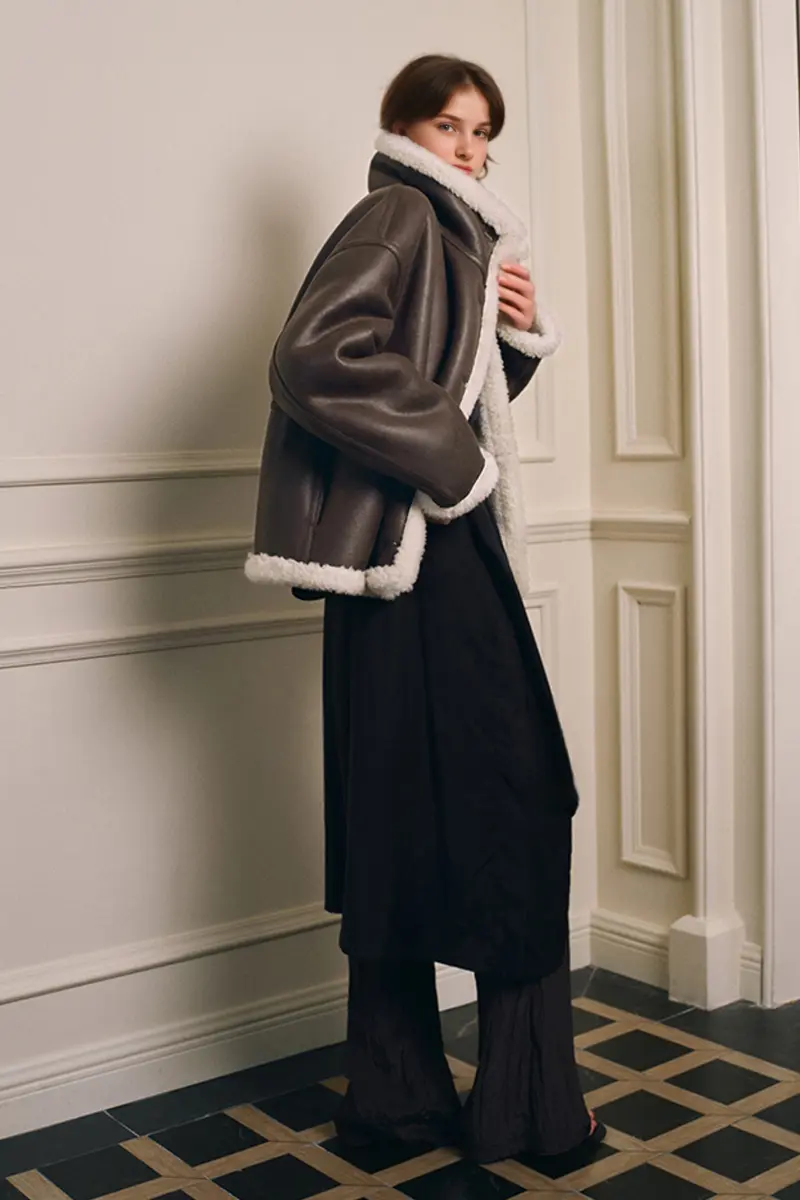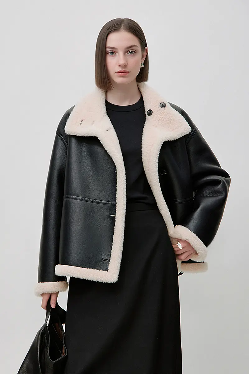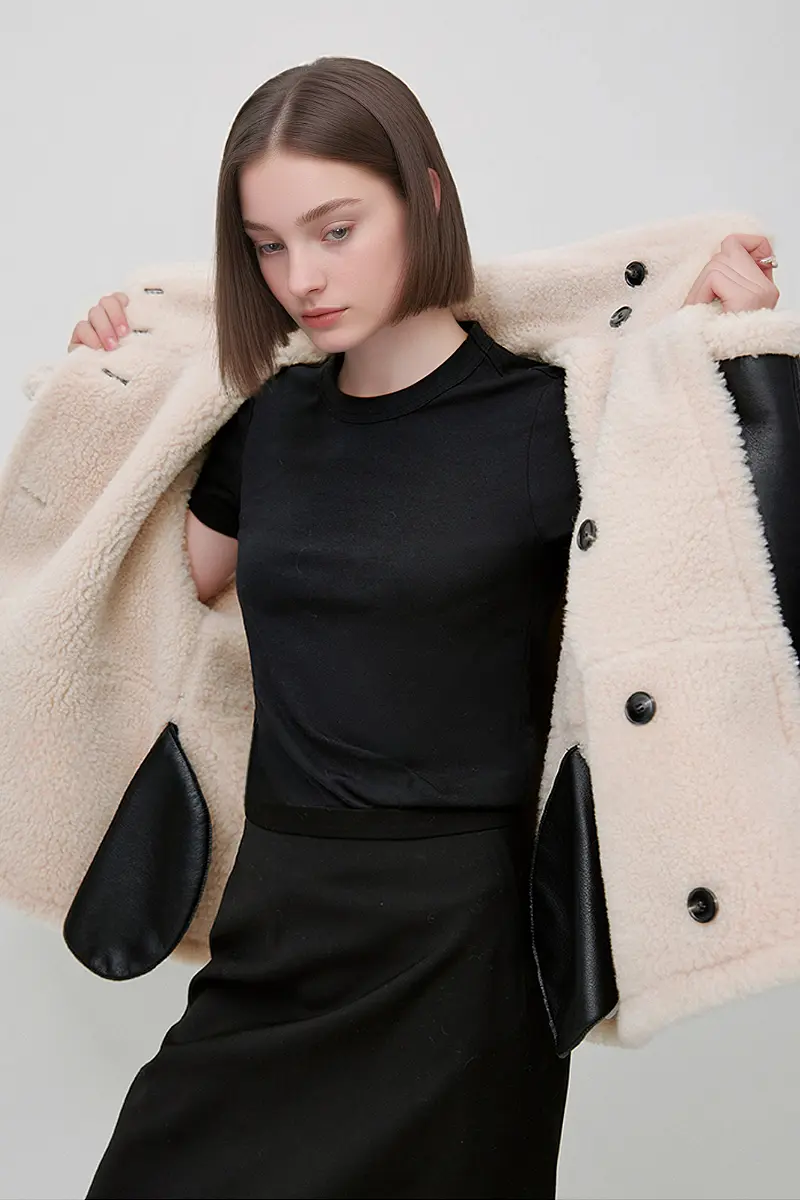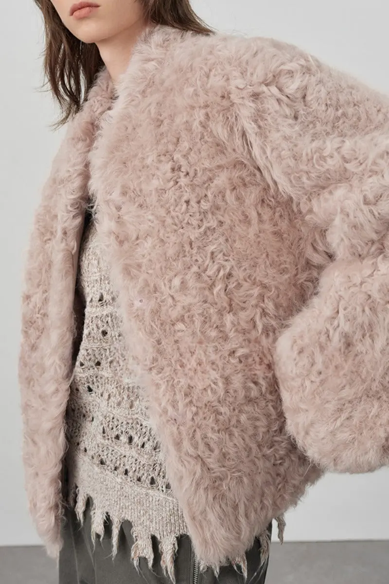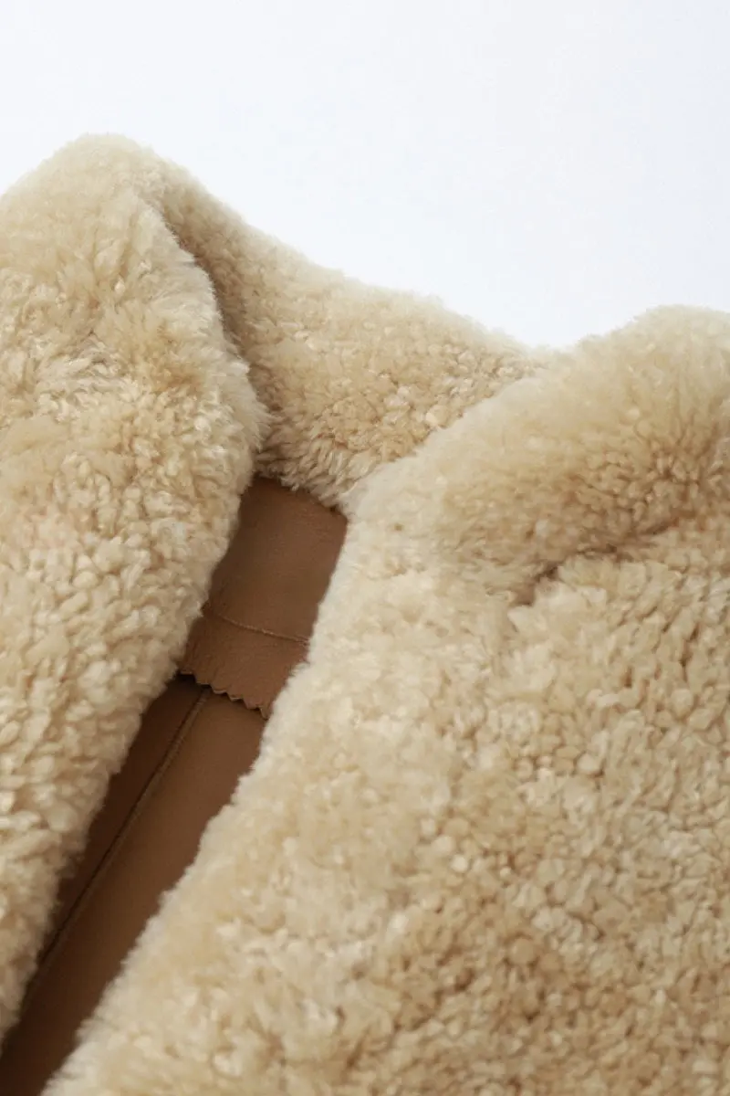 Minimalist Cropped Spain Sheepskin Shearling Jacket