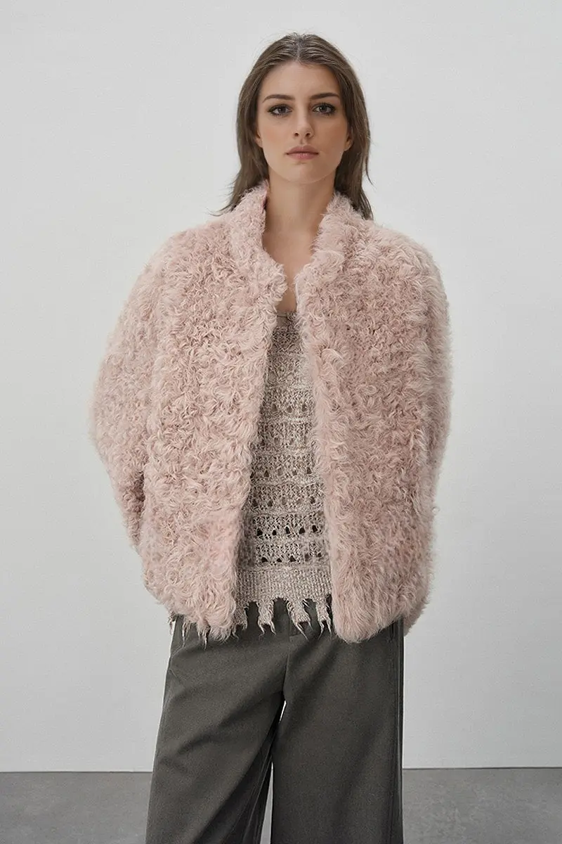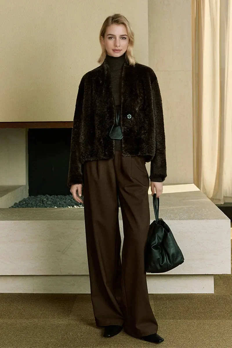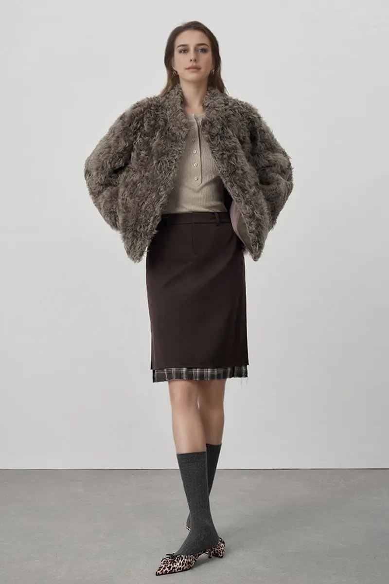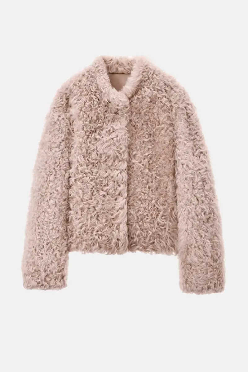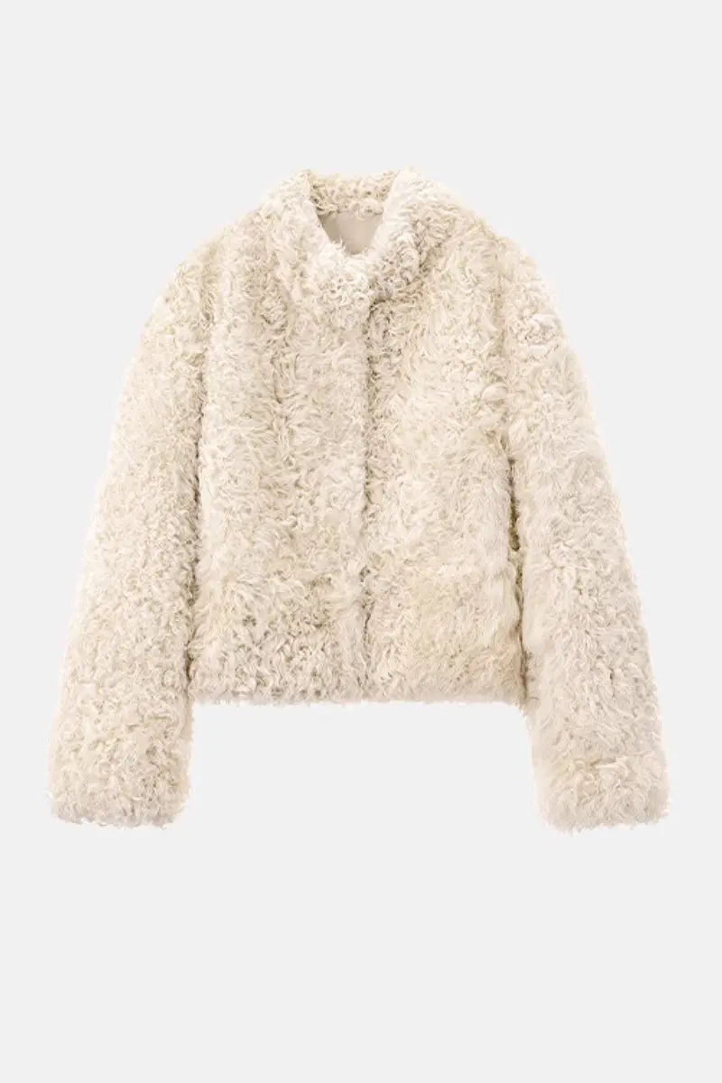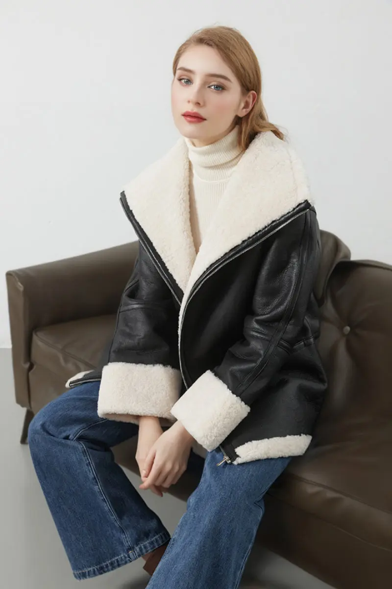 Minimalist Cropped Spain Sheepskin Shearling Jacket