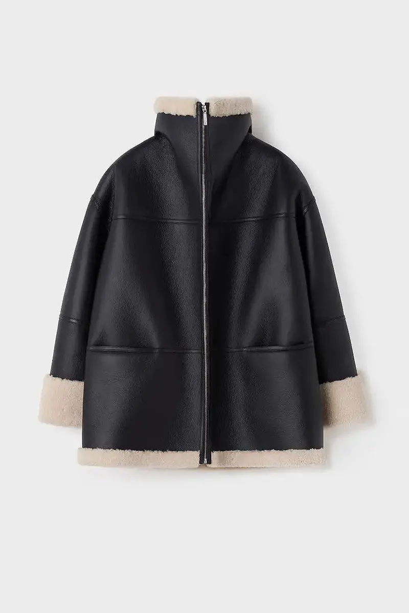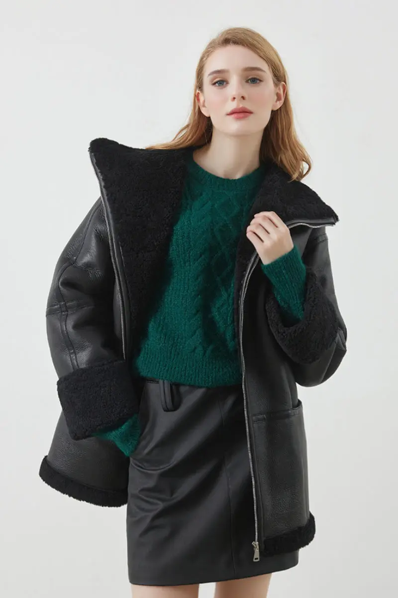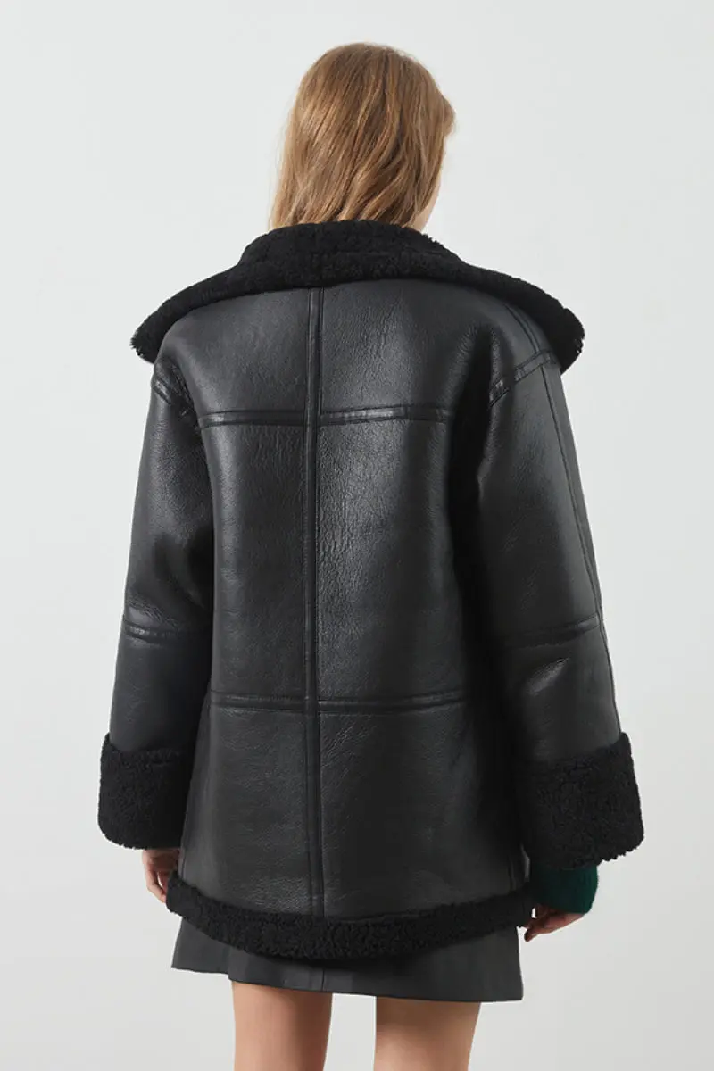 Classic French Merino Sheepskin Shearling Jacket with Stand Collar