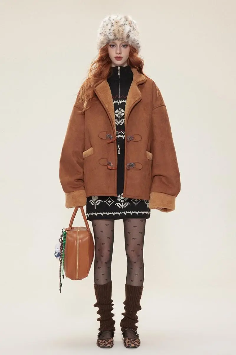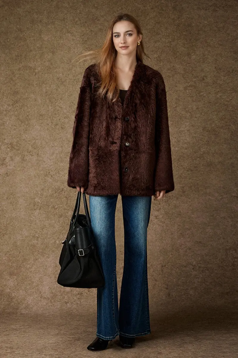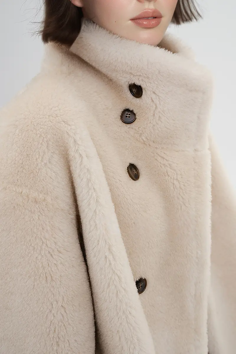 Fluffy Vintage Double Breasted Shearling Teddy Coat