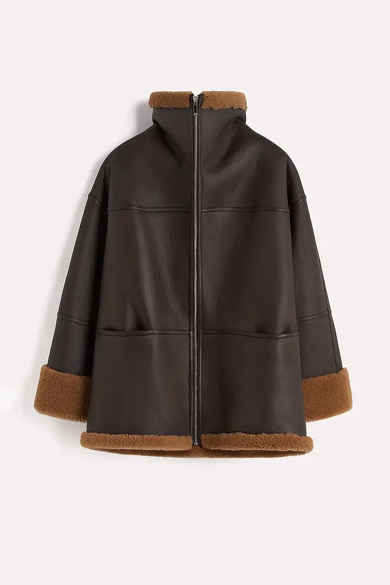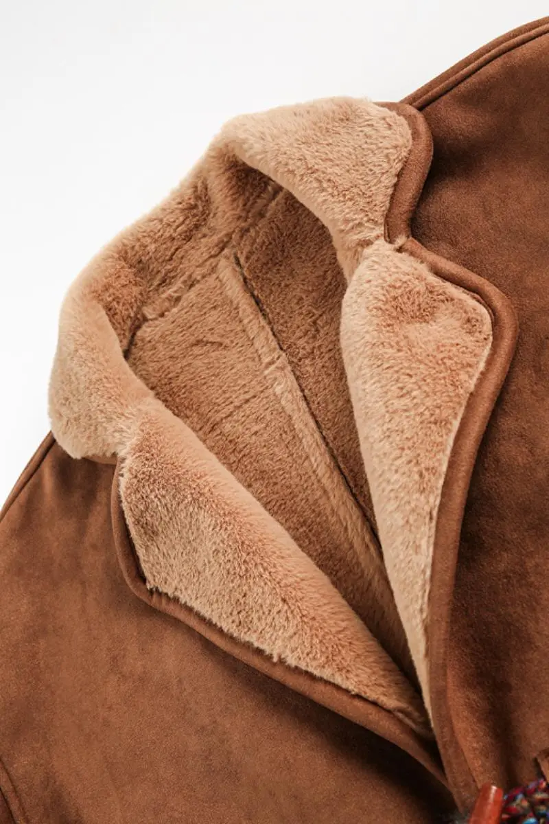 Vintage Brown Toggle Faux Shearling Aviator Jacket