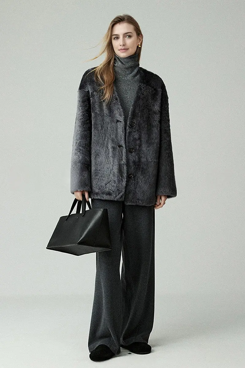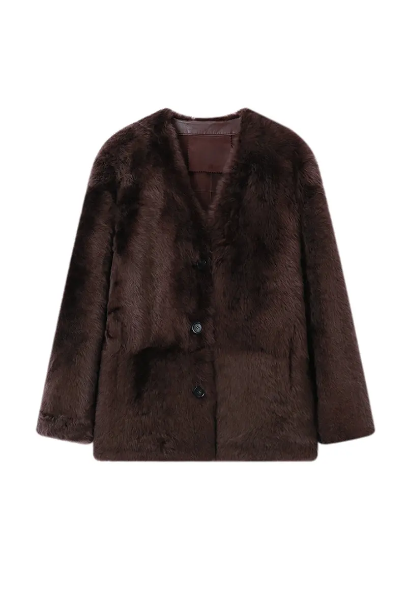 Luxe V-Neck Spain Lacon Sheepskin Shearling Coat