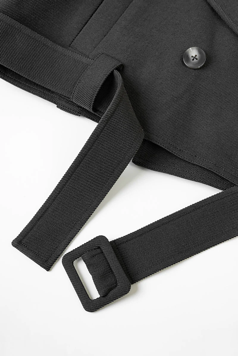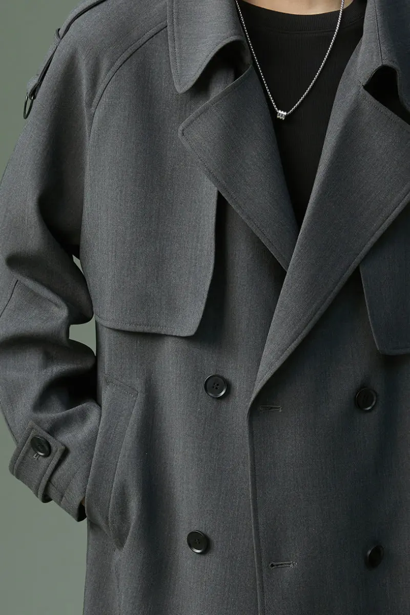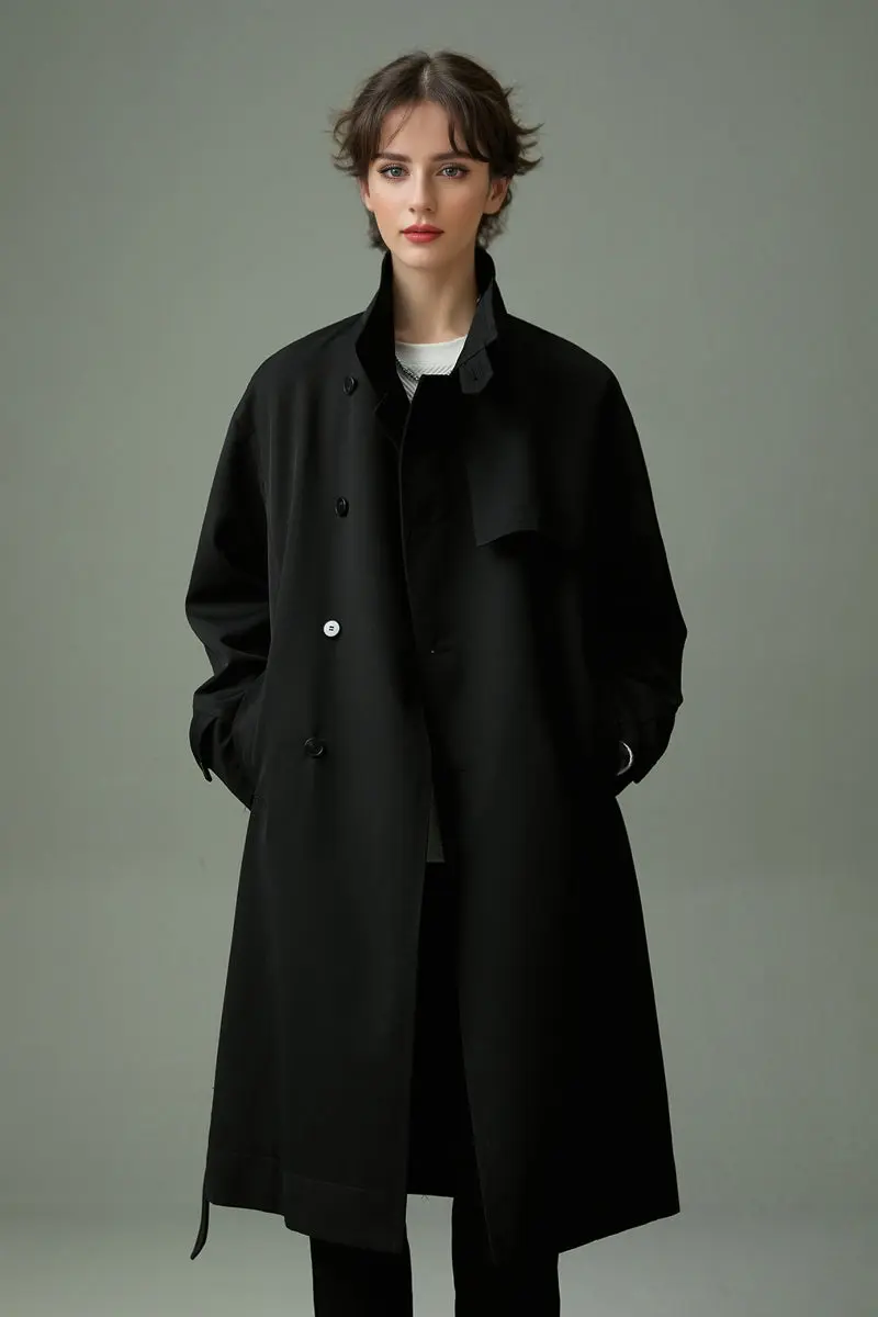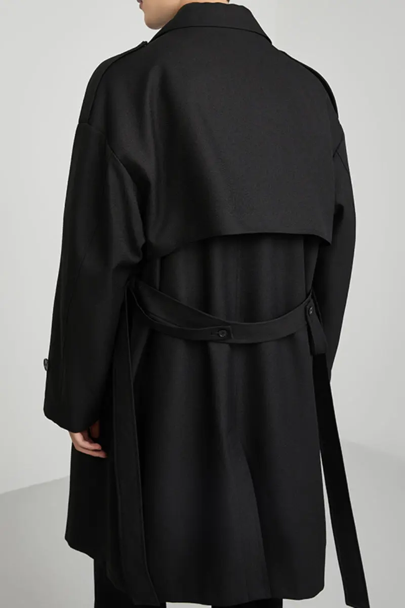 Classic London Style Mid-length Double Breasted Black Trench Coat