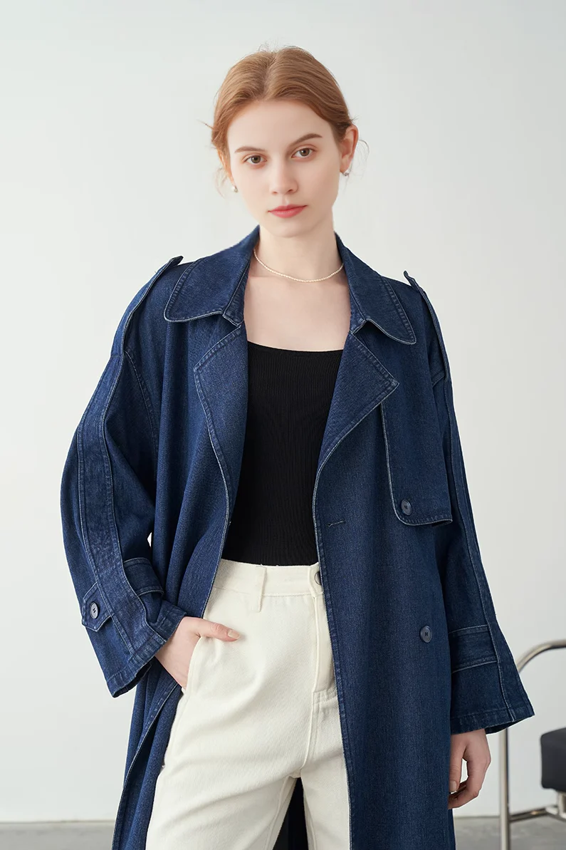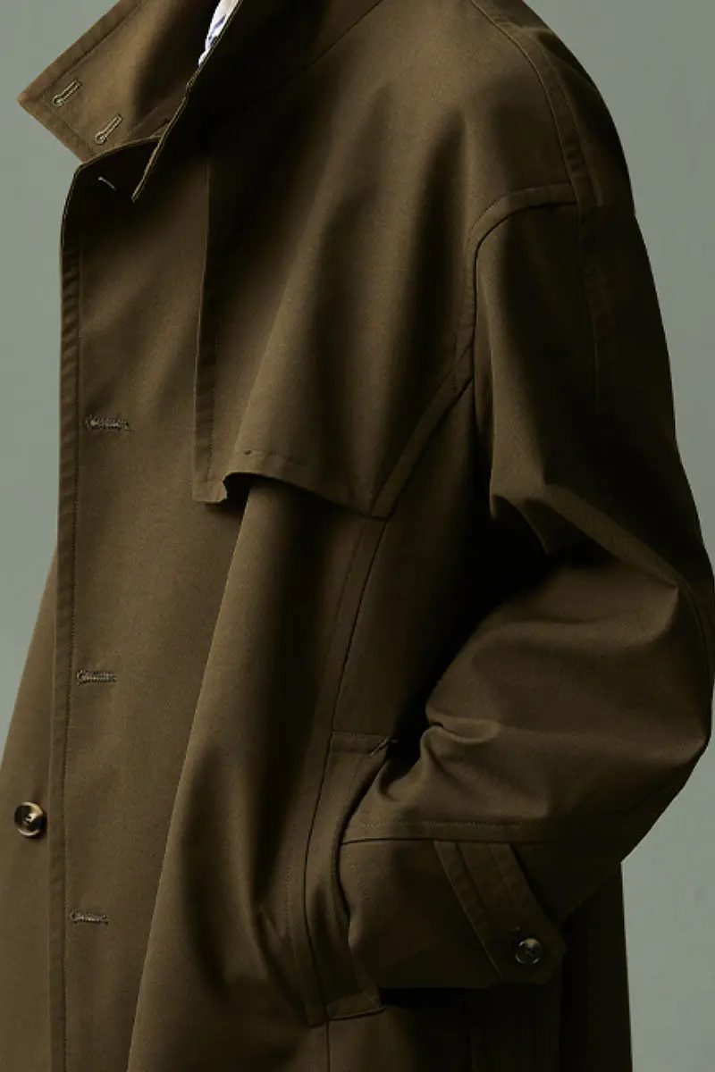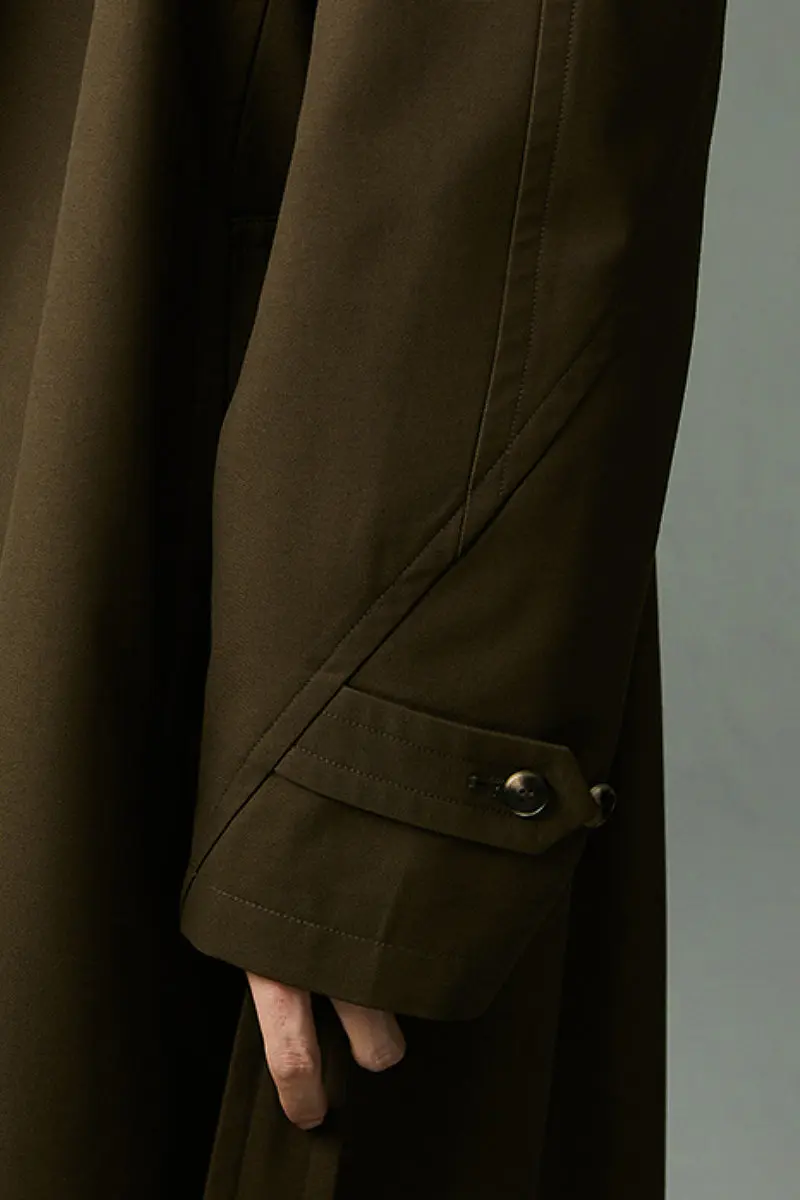 Lightweight Color-Block Long Cotton-Lyocell Barn Trench Coat