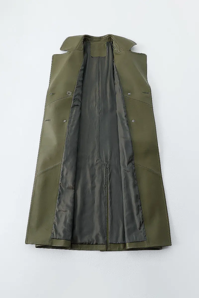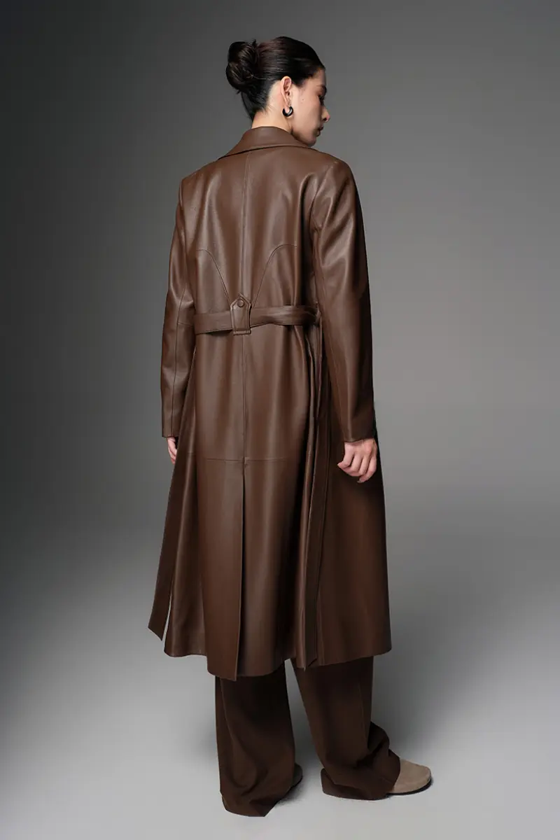 New Zealand Lambskin Leather Double Breasted Trench Coat with Belt